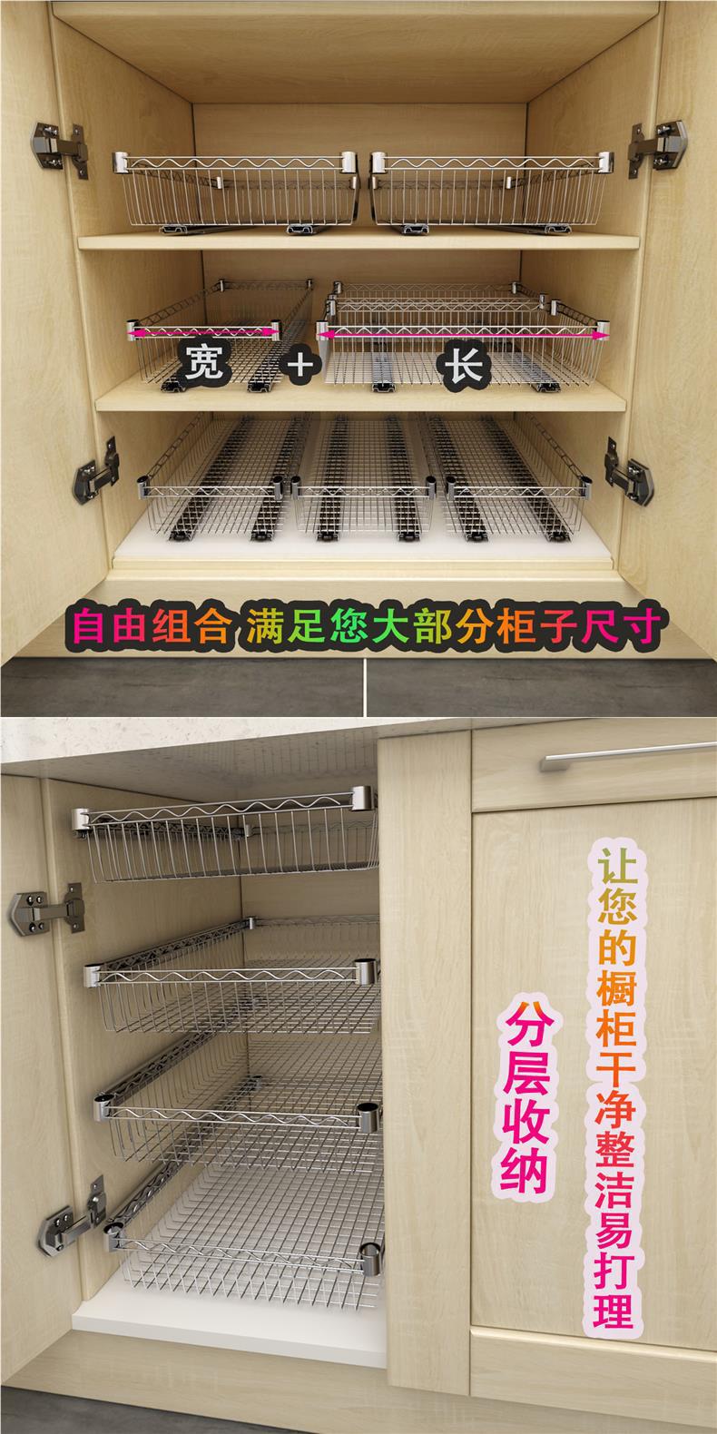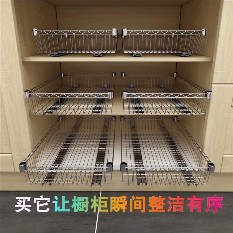 HNZM390 주방 보관 랙 DIY 캐비닛 당김 바구니 야채 랙 저장 선반 보관 바구니 옷장 금속 서랍스토어 가기
