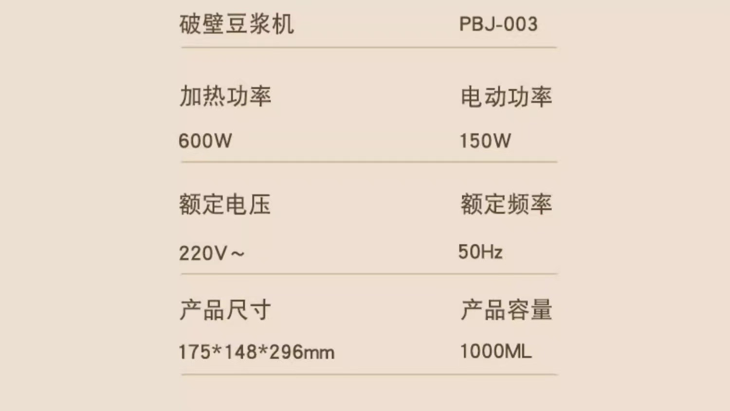 外壳+玻璃:PP+高硼玻璃(加热600W/电动150W)