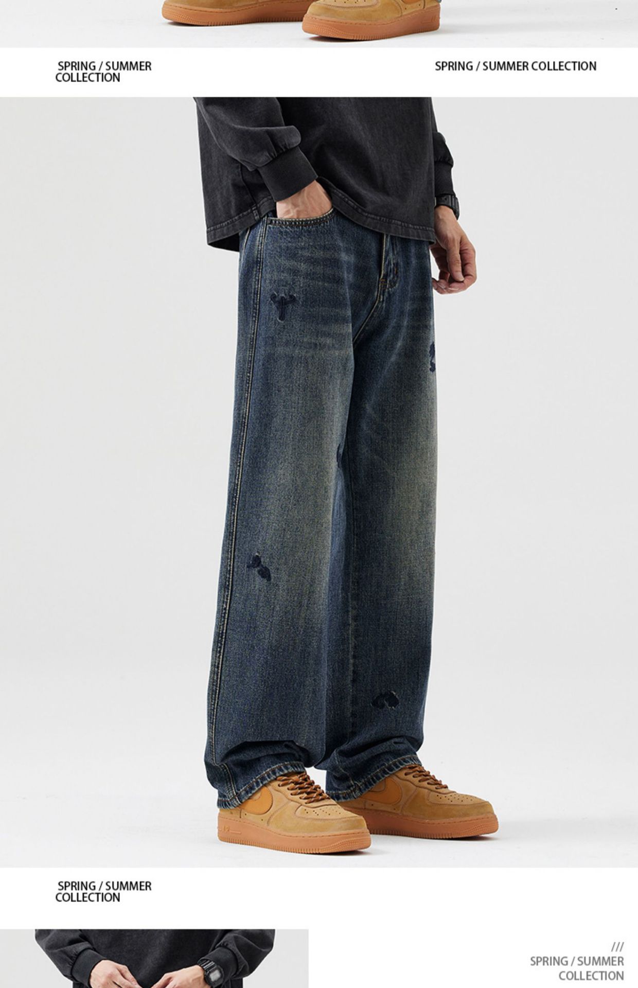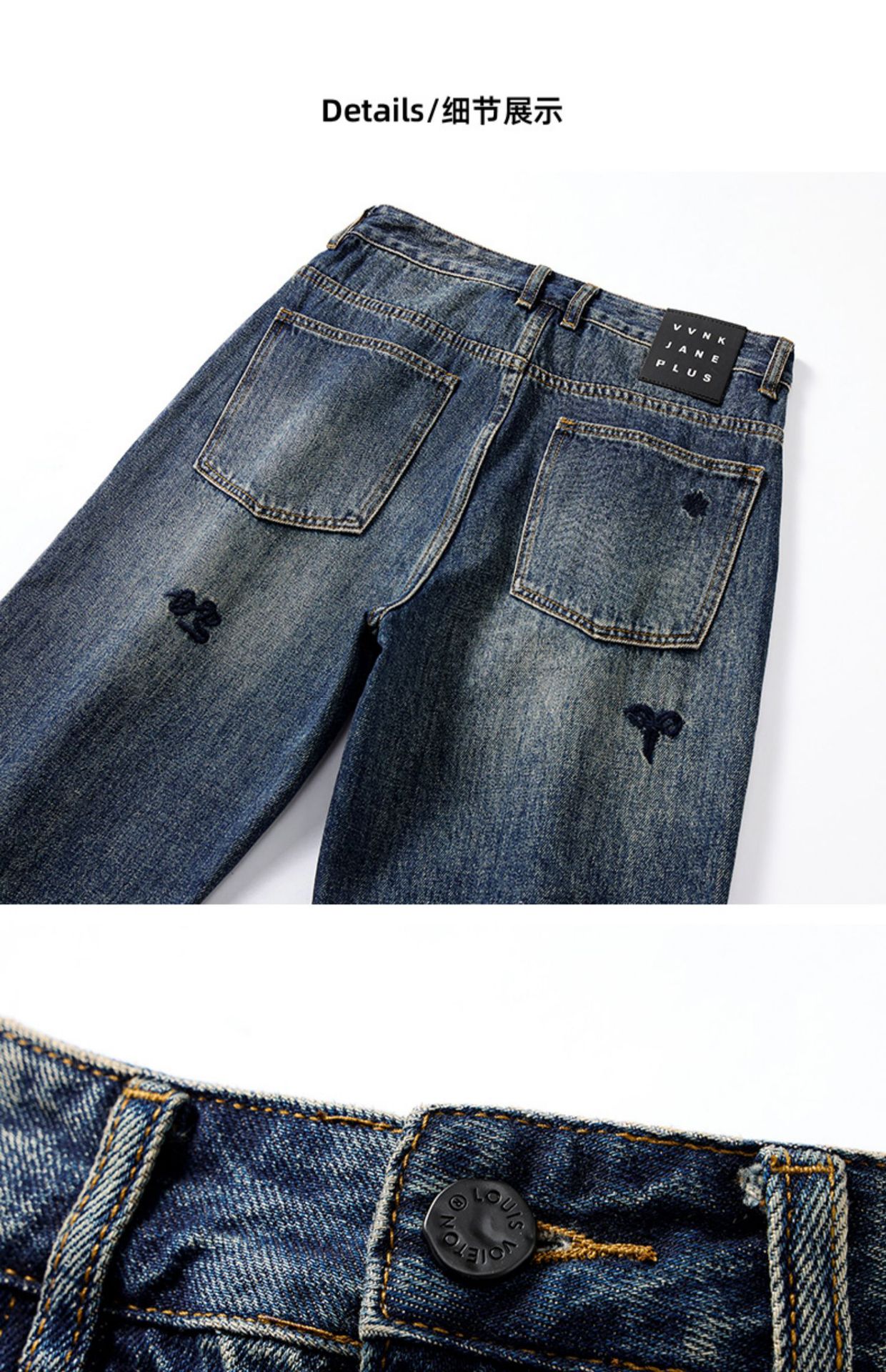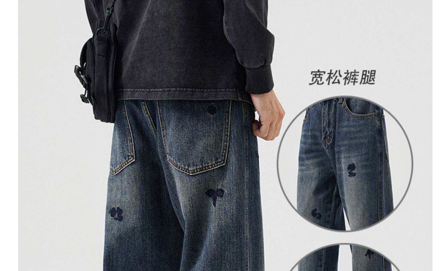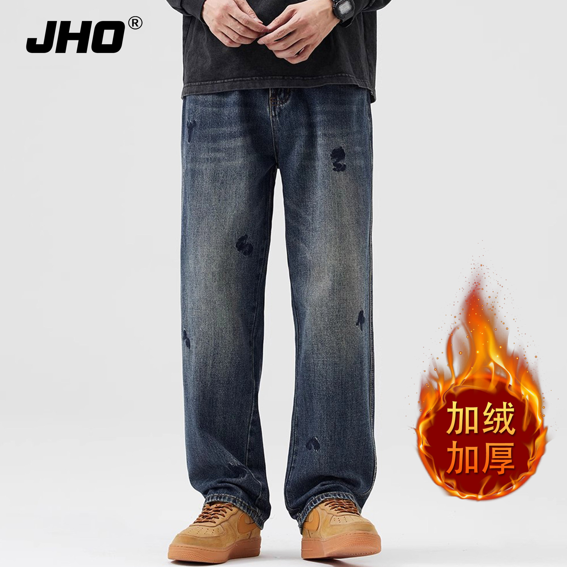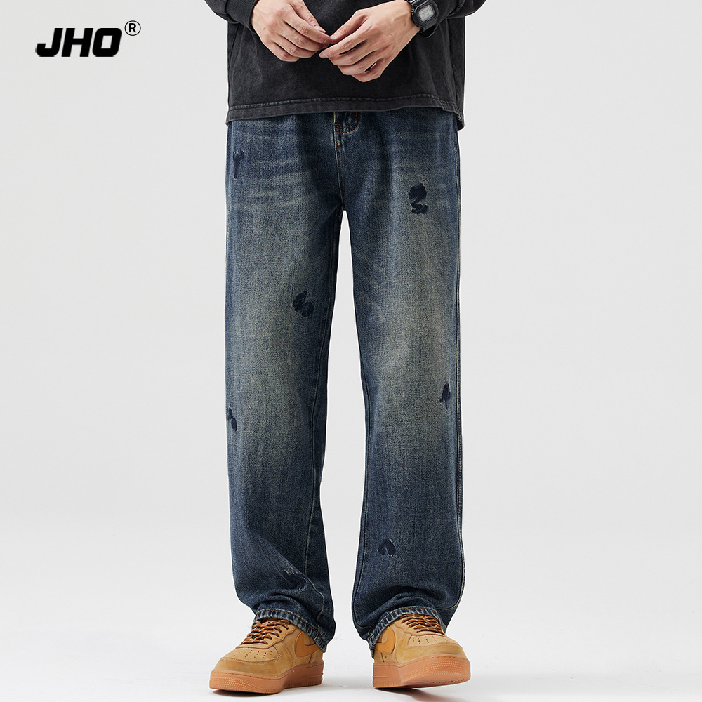유행 청바지 남자의 가을과 겨울 기모 2024 새로운 하이 스트리트 독특한 자수 바지 느슨한 스트레이트 바지스토어 가기