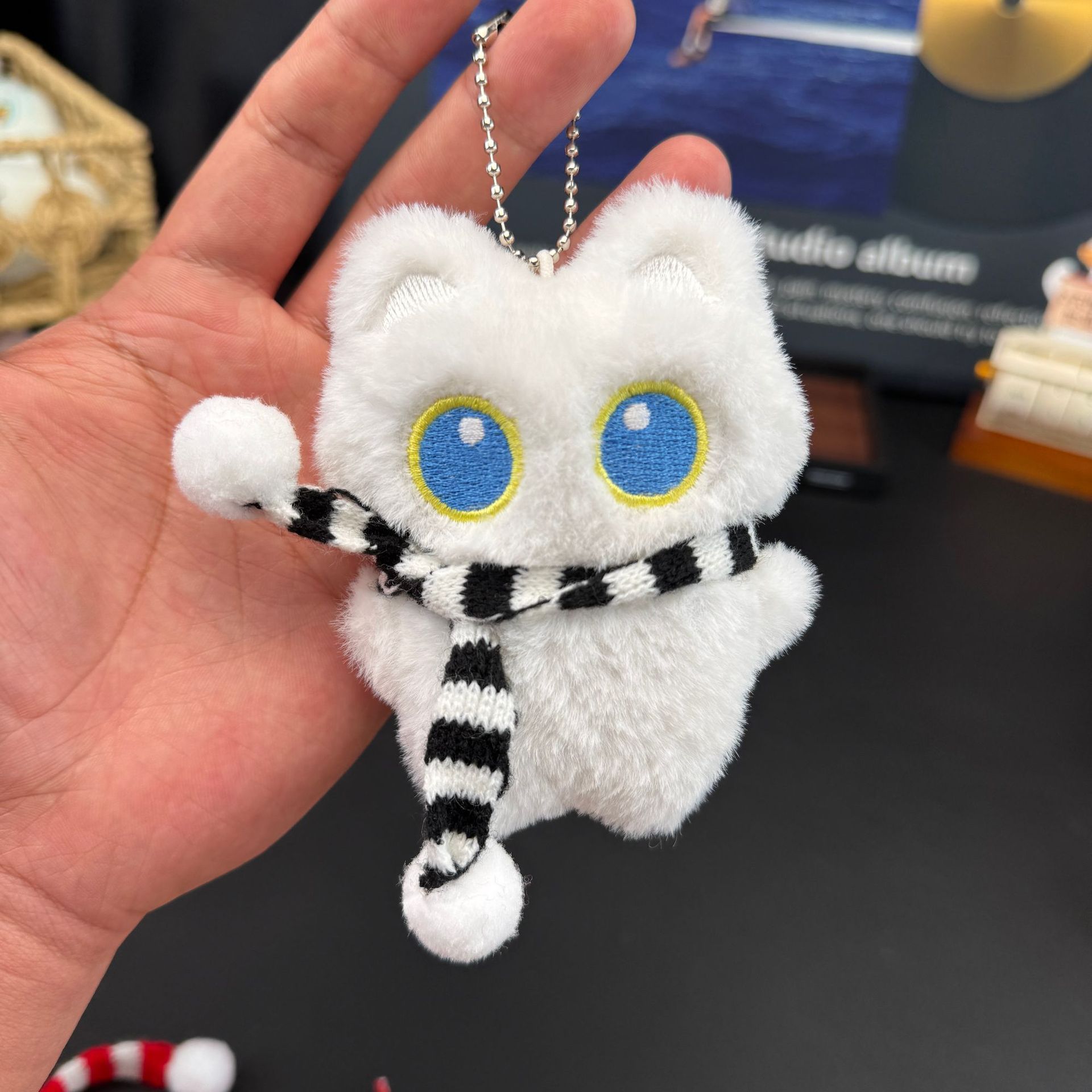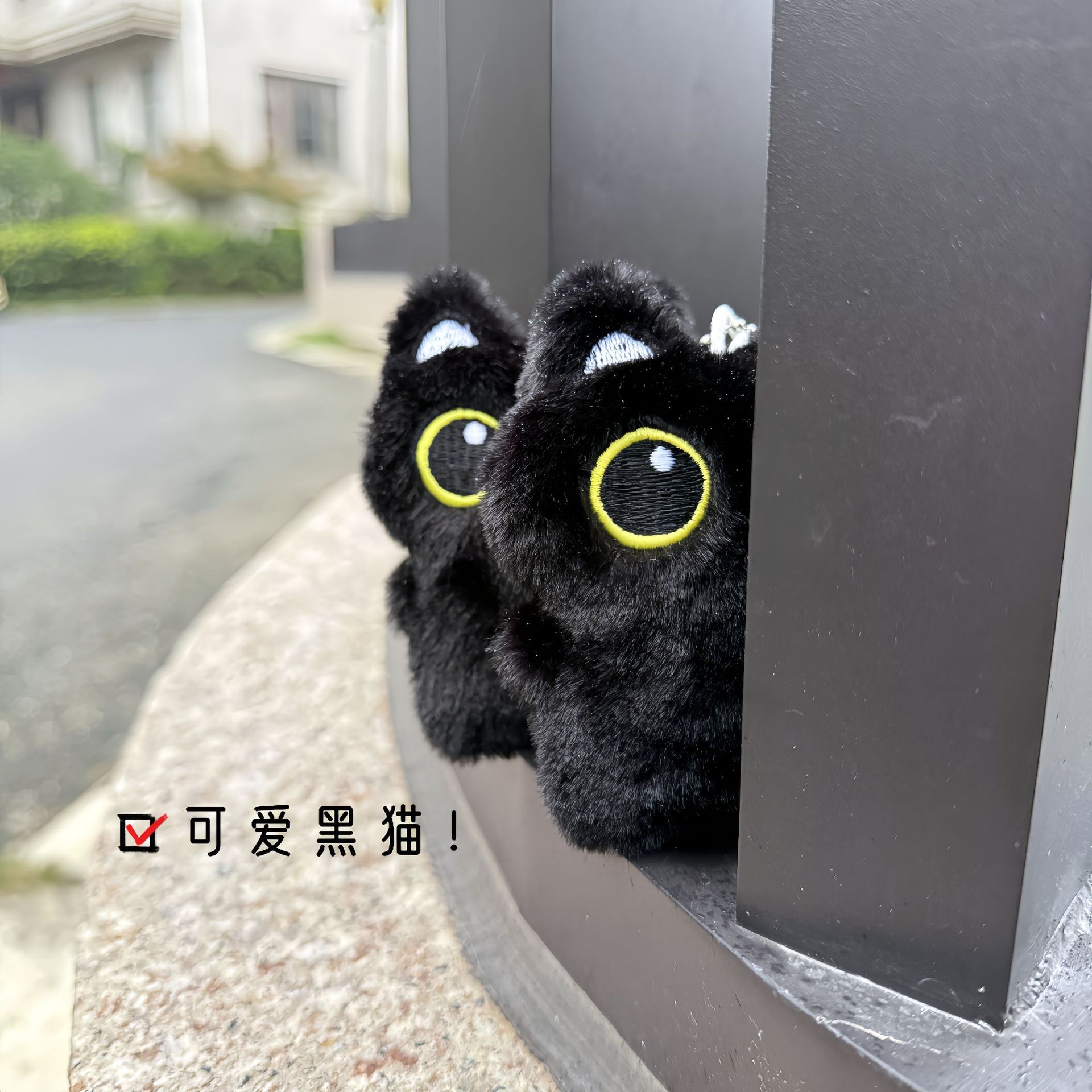 폭발성 큰 눈 검은 고양이 봉제 인형 펜던트 귀여운 삐걱 거리는 검은 새끼 고양이 가방 키 체인 펜던트