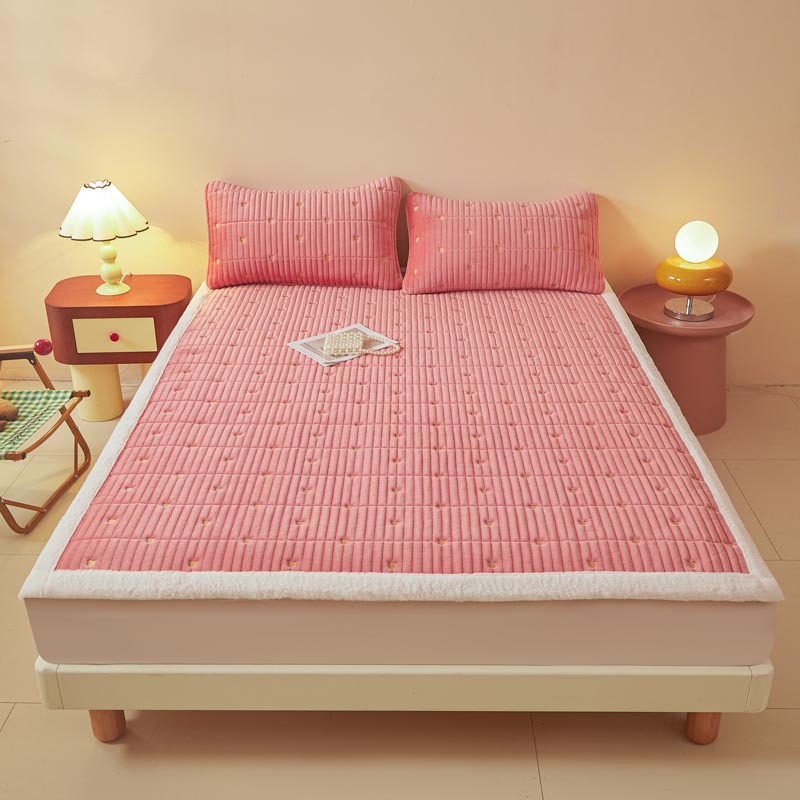 가을 겨울 따뜻한 아기 벨벳 침대 보호 패드 밀크 벨벳 누빔 학생용 싱글 기숙사 매트리스 두꺼운 침대 매트