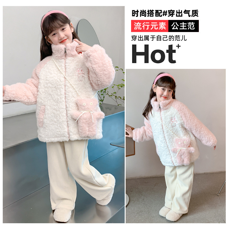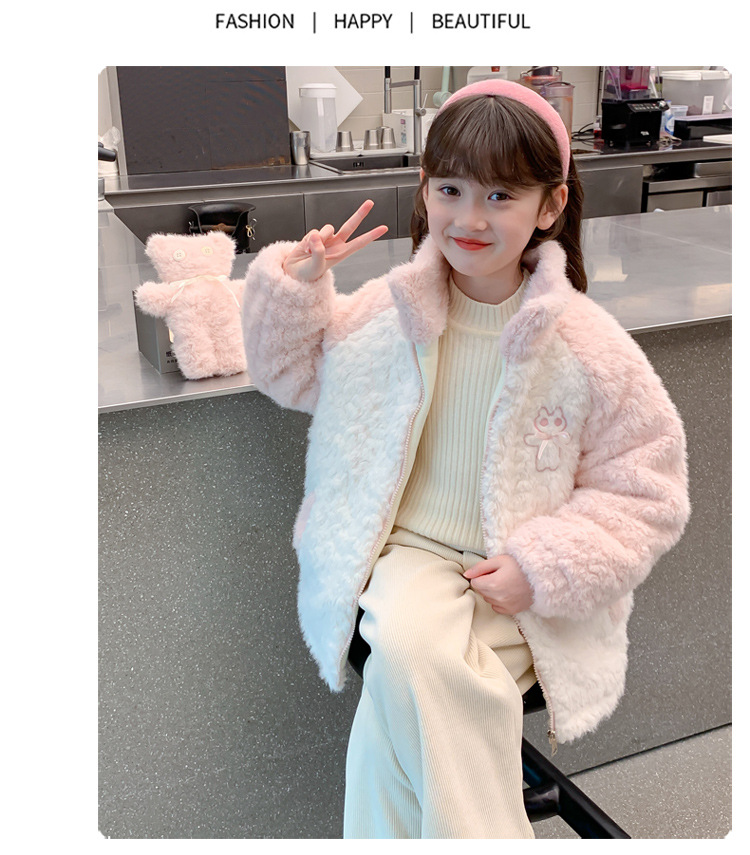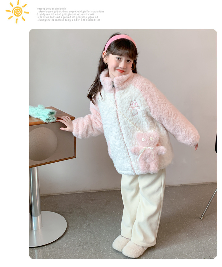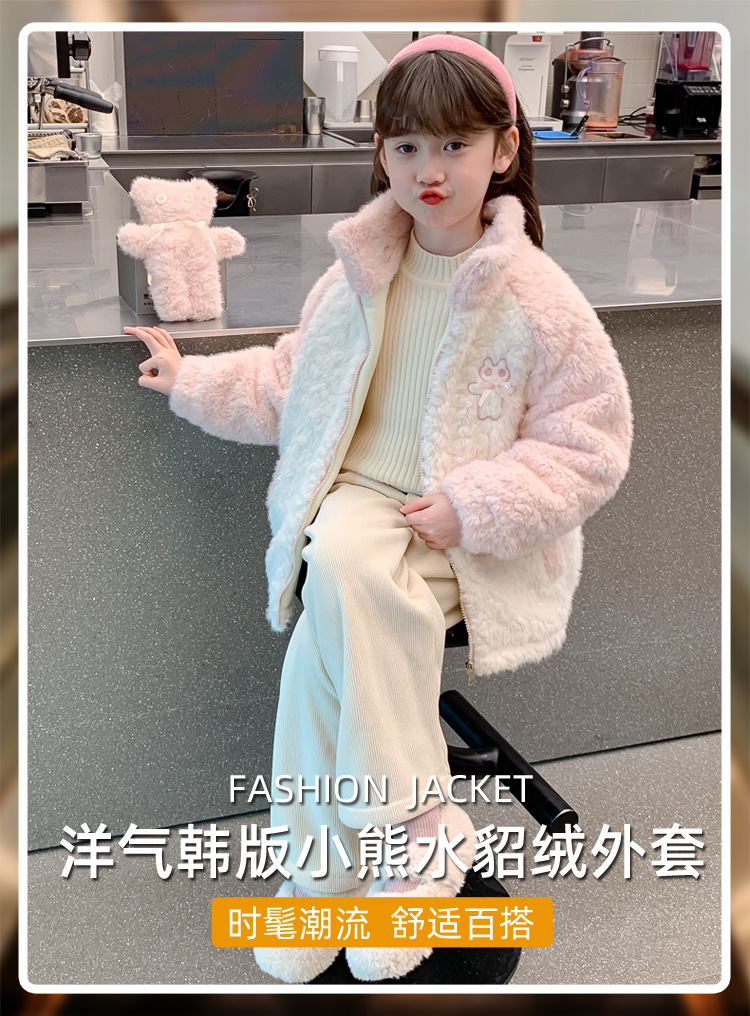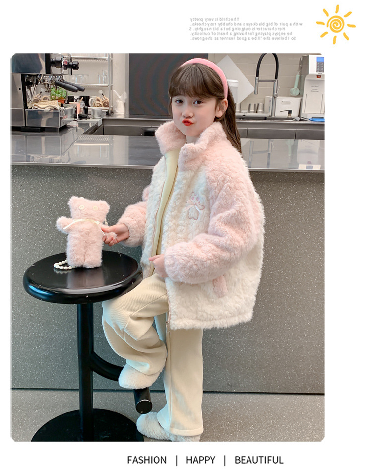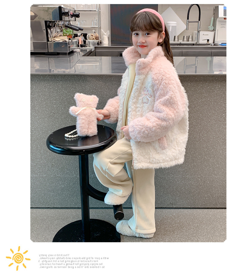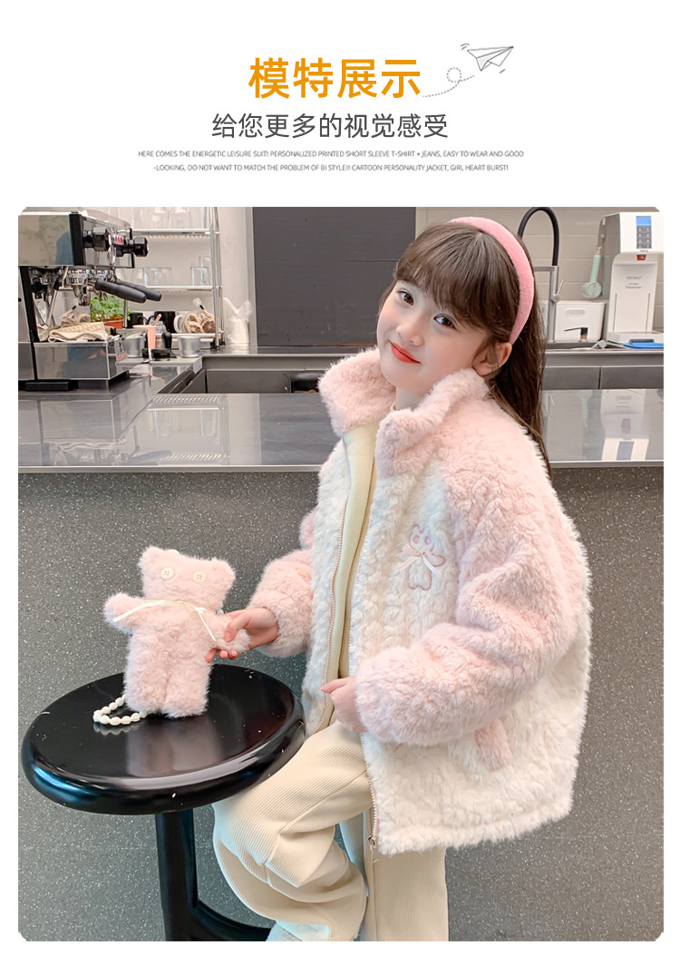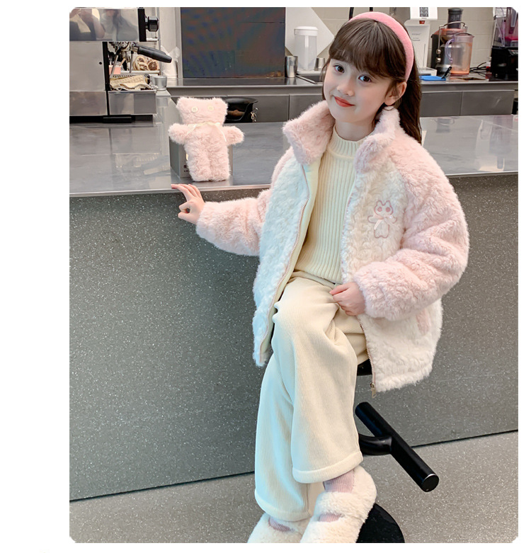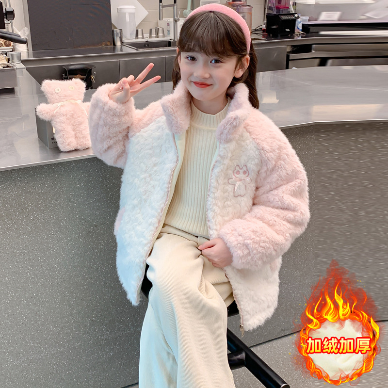 소녀 코트 겨울 2024 새로운 스타일 큰 어린이 가을 겨울 기모 두꺼운 울 스웨터 어린이 밍크 양털 탑스토어 가기