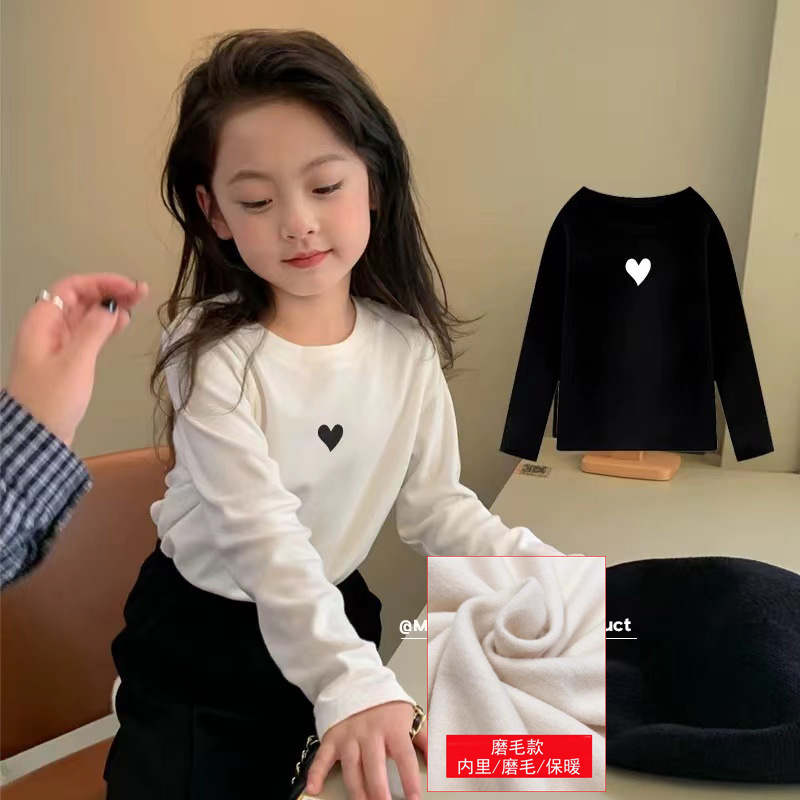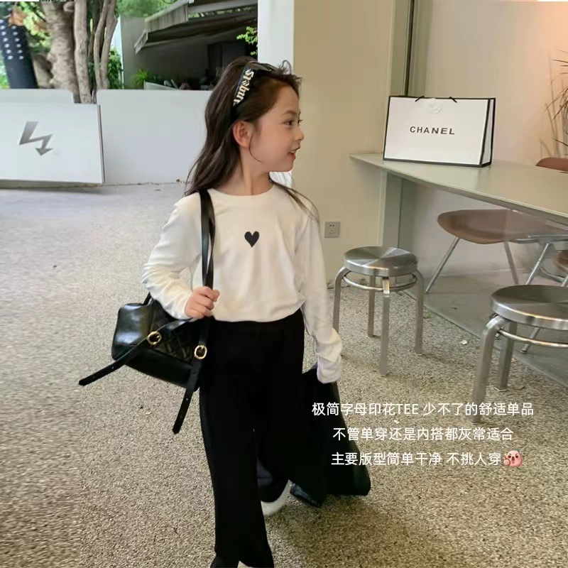 사랑하는 올 매치베이스 톱 2024 봄과 가을 새 스타일 내통 긴팔 티셔츠 중 큰 어린이와 소녀를위한 순수한 면베이스 셔츠