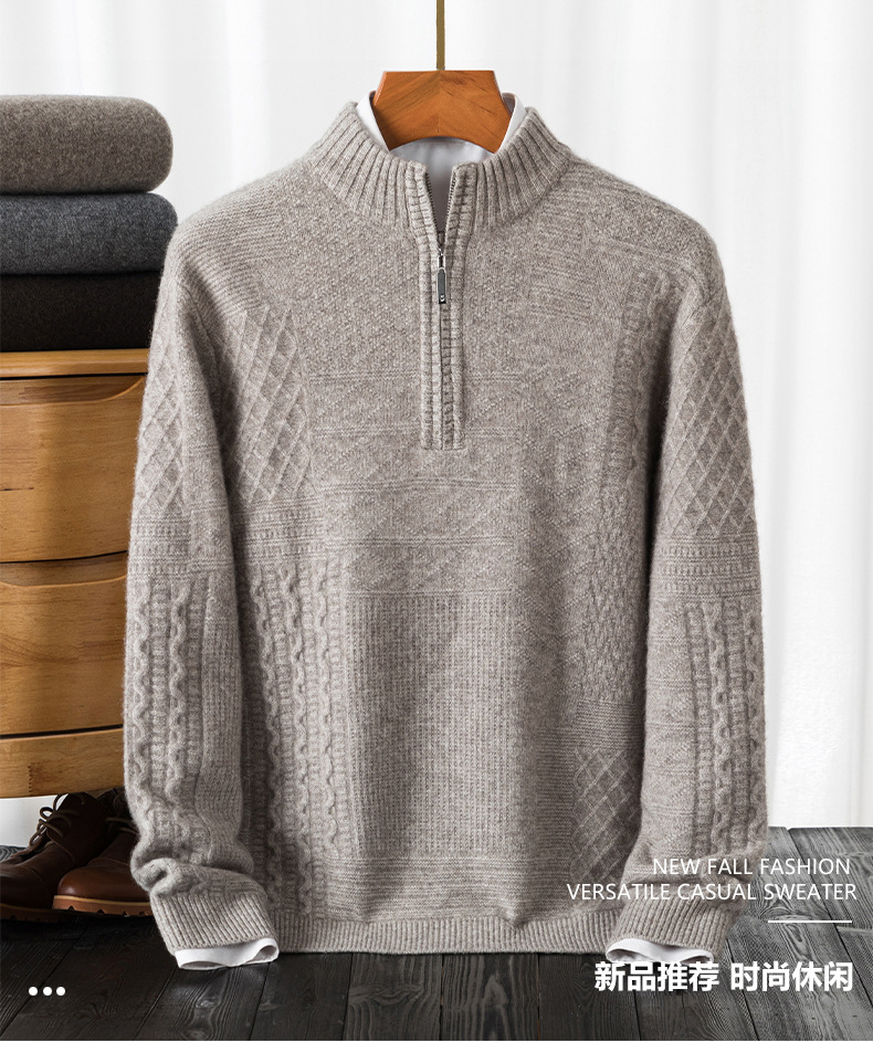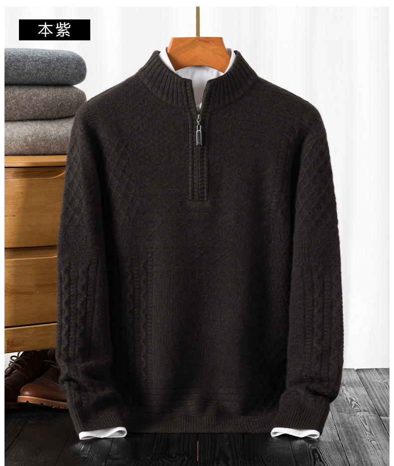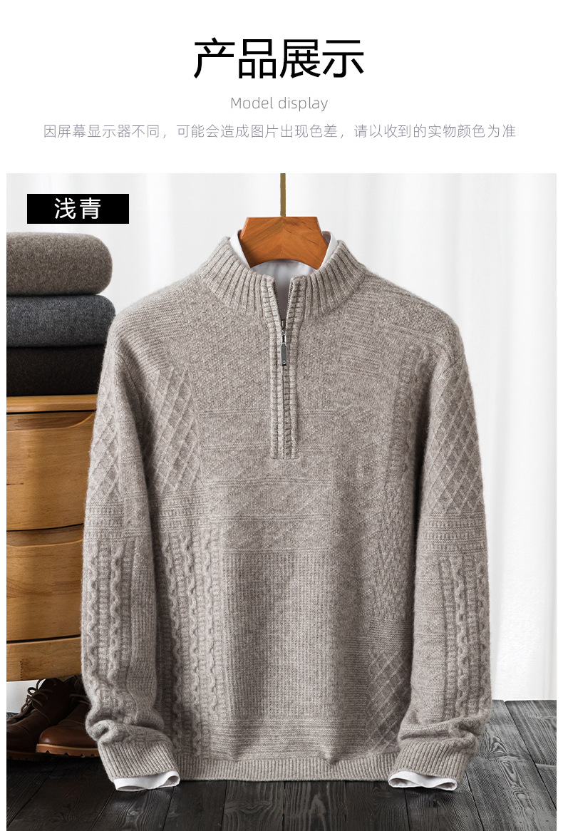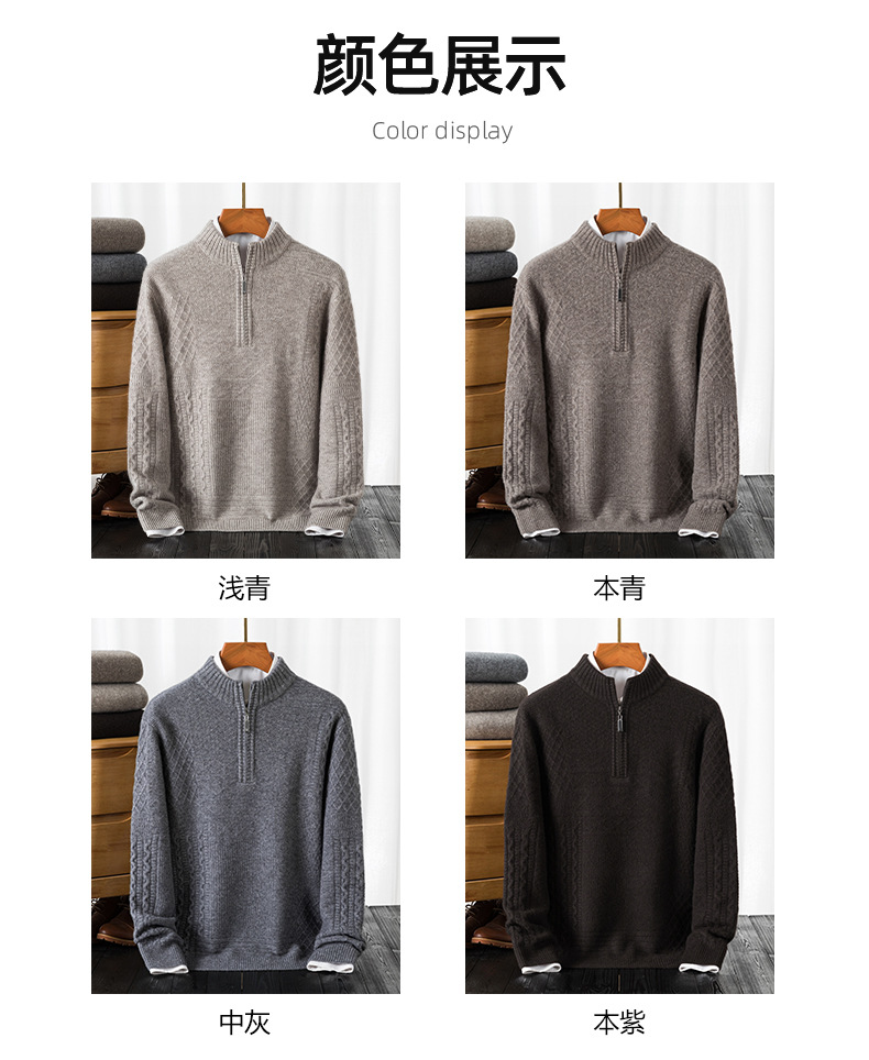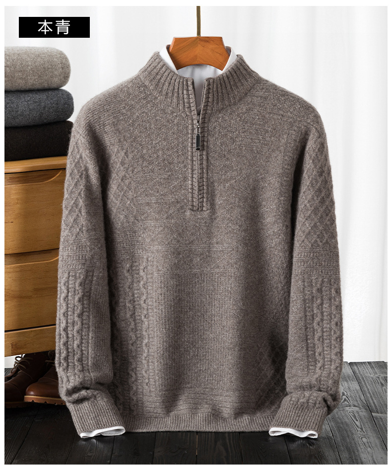 야크 벨벳 남자 울 스웨터 가을과 겨울 새로운 하프 터틀넥 지퍼 칼라 두꺼운 따뜻한 캐시미어베이스 스웨터 남자 스웨터스토어 가기