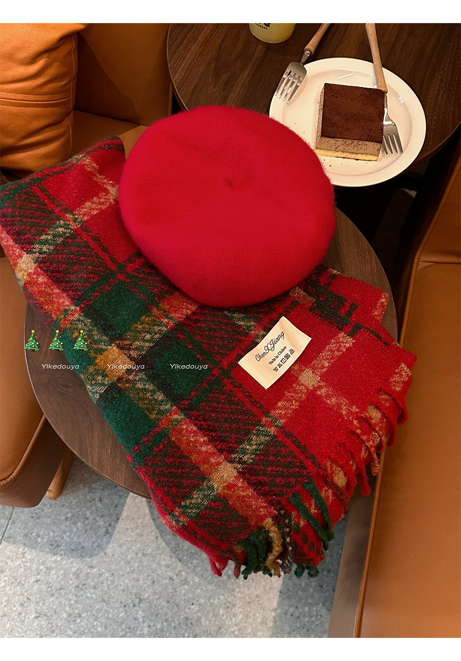 도매 새해 분위기 중국 빨간 술 여성 가을과 겨울 새로운 니트 따뜻한 한국 스타일 크리스마스 격자 무늬 스카프
