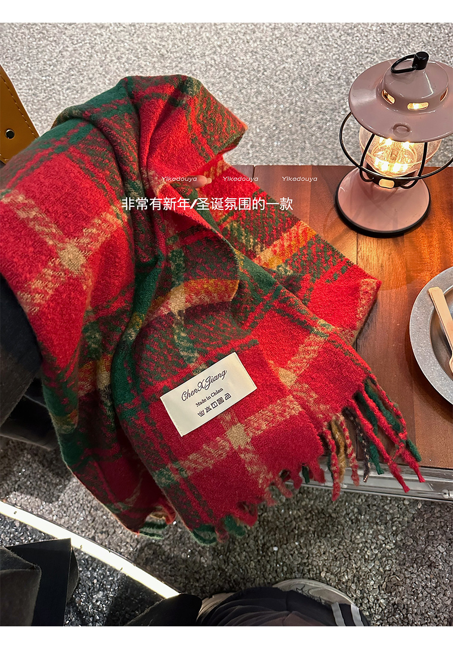 도매 새해 분위기 중국 빨간 술 여성 가을과 겨울 새로운 니트 따뜻한 한국 스타일 크리스마스 격자 무늬 스카프스토어 가기