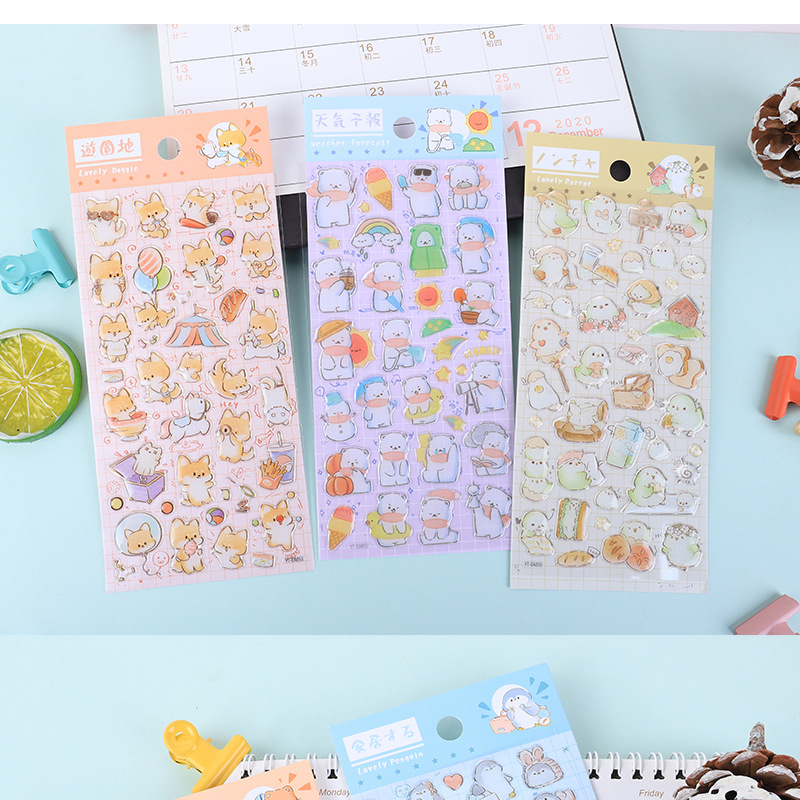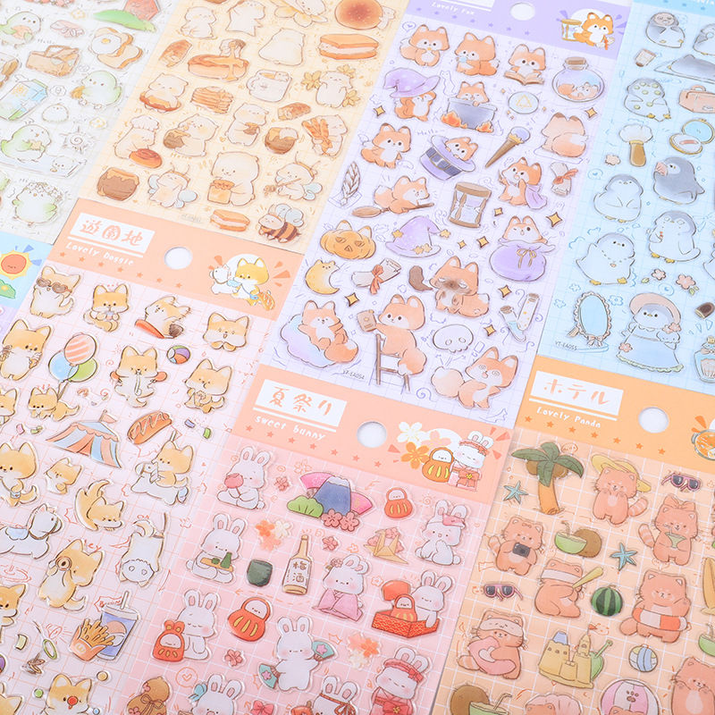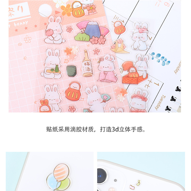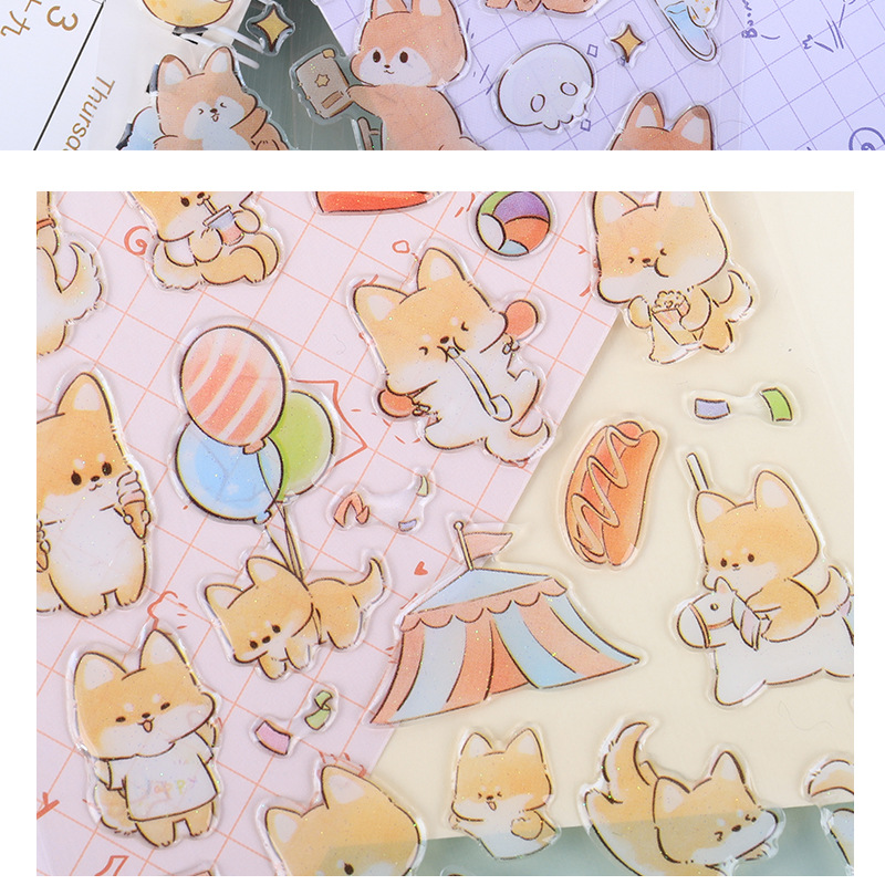 일본식 만화 동물 시바견 토끼 크리스탈 입체 어린이 스티커 소녀용 휴대폰 카메라 수제 장식 스티커스토어 가기