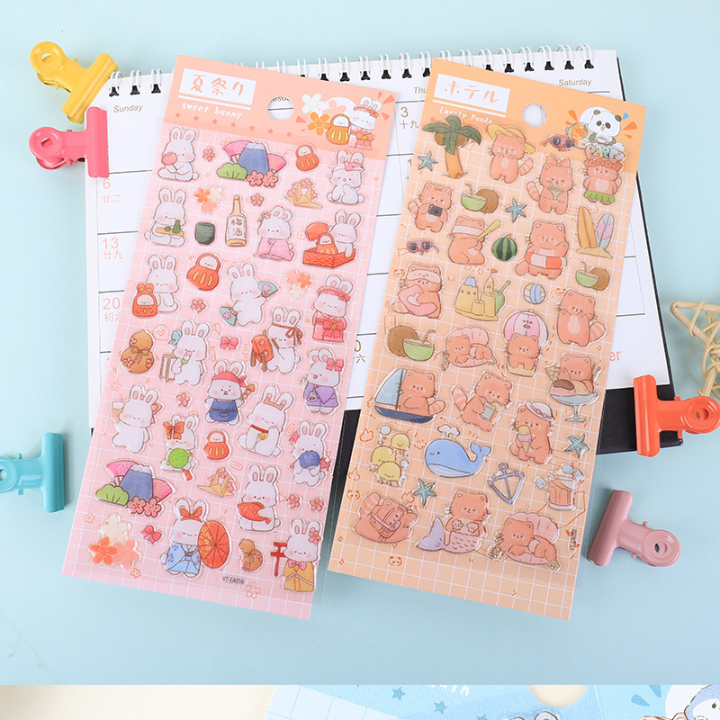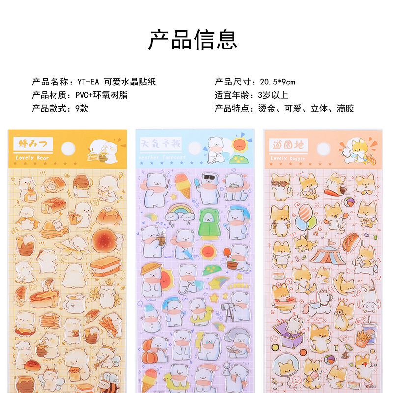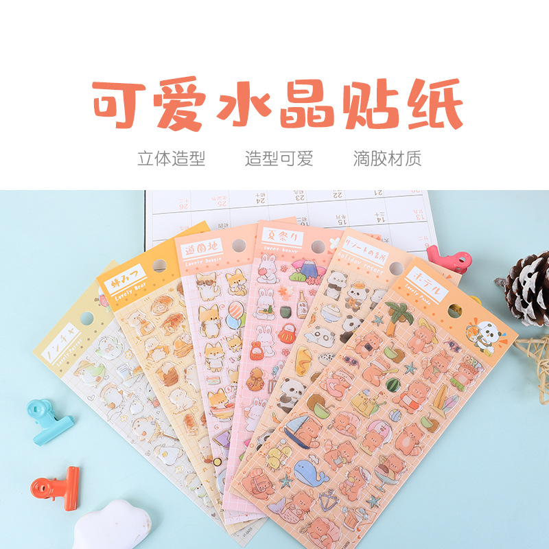 일본식 만화 동물 시바견 토끼 크리스탈 입체 어린이 스티커 소녀용 휴대폰 카메라 수제 장식 스티커