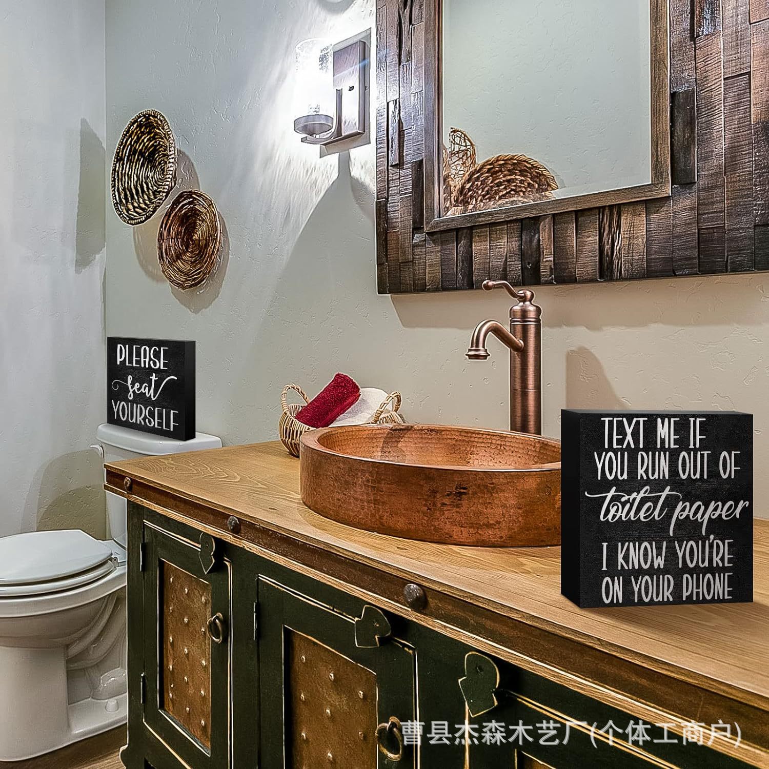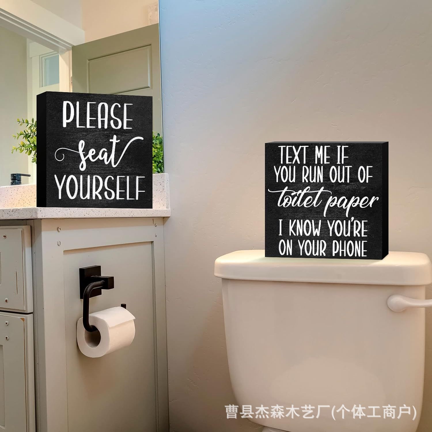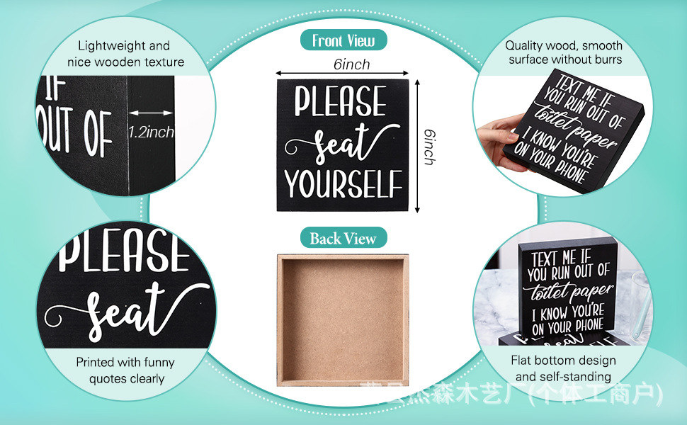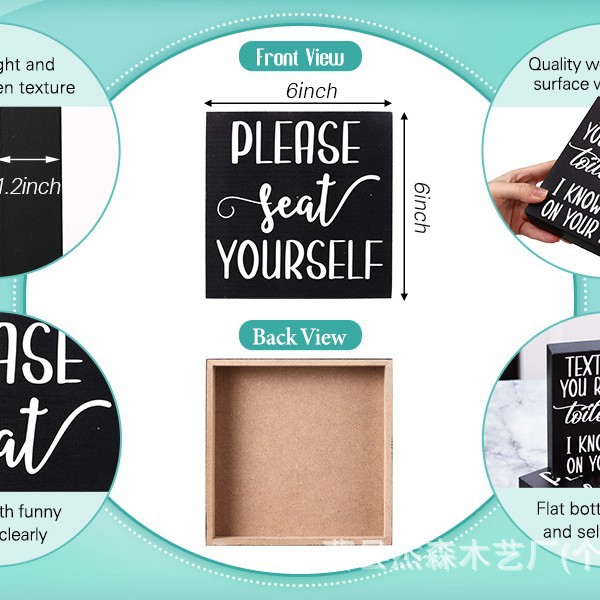 나무 장식품, 나무 상자, 인쇄된 장식대, 사무실 및 욕실 장식, 아마존 제조업체 사각 상자 슬로건 보드스토어 가기