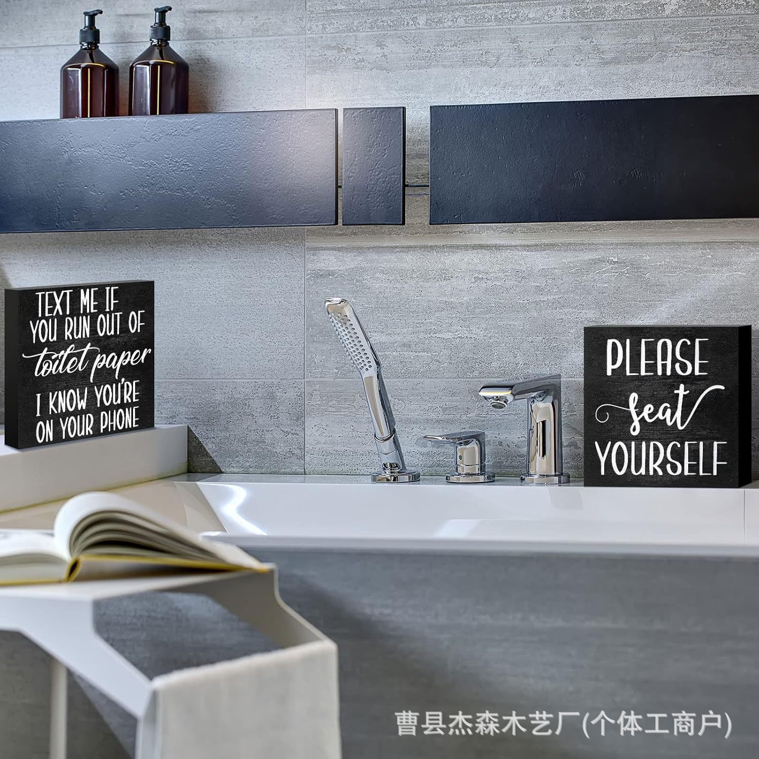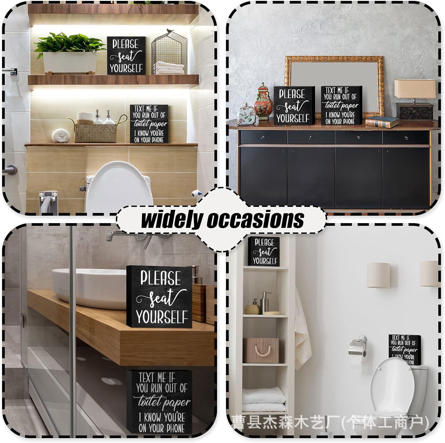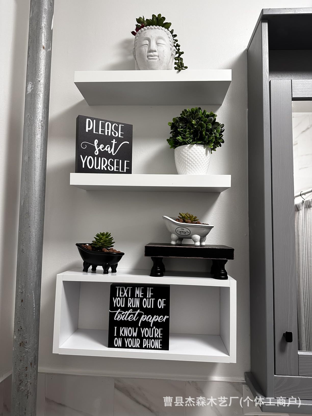 나무 장식품, 나무 상자, 인쇄된 장식대, 사무실 및 욕실 장식, 아마존 제조업체 사각 상자 슬로건 보드스토어 가기