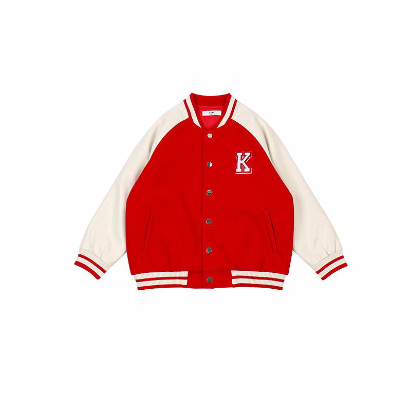 DK 아동복 남학생과 여학생을위한 24 가을과 겨울 의류 복고풍 대학 PU 야구 재킷 어린이 다목적 캐주얼 코튼 코트