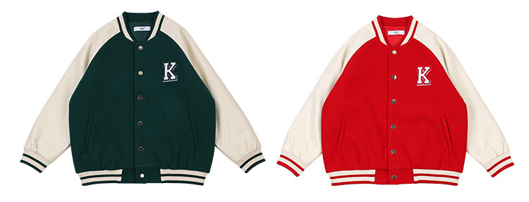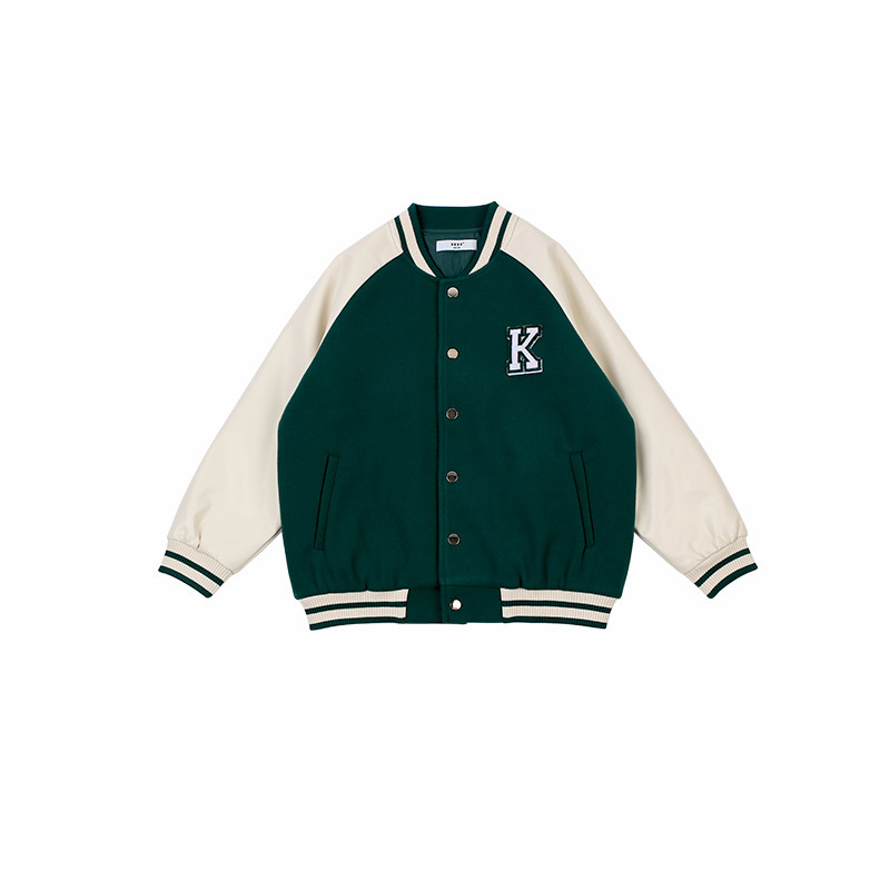 DK 아동복 남학생과 여학생을위한 24 가을과 겨울 의류 복고풍 대학 PU 야구 재킷 어린이 다목적 캐주얼 코튼 코트스토어 가기