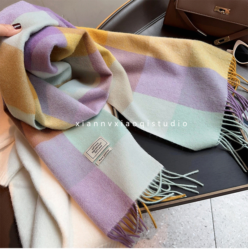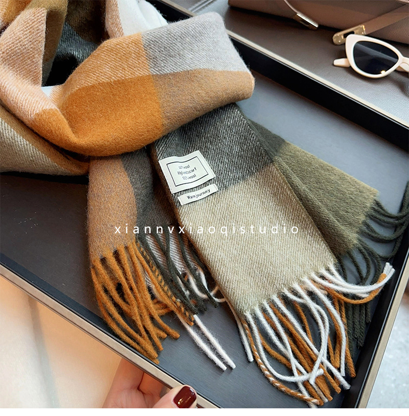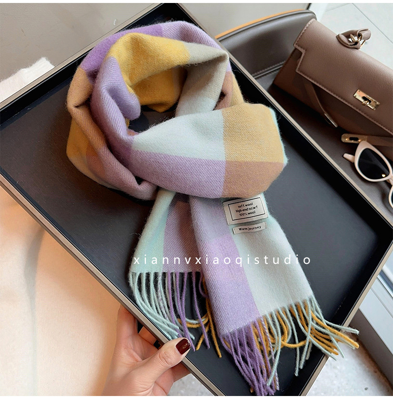 클래식 패션 페어 블루 100% 울 스카프 여성의 새로운 가을과 겨울 긴 술 목도리 이중 목적 스카프스토어 가기