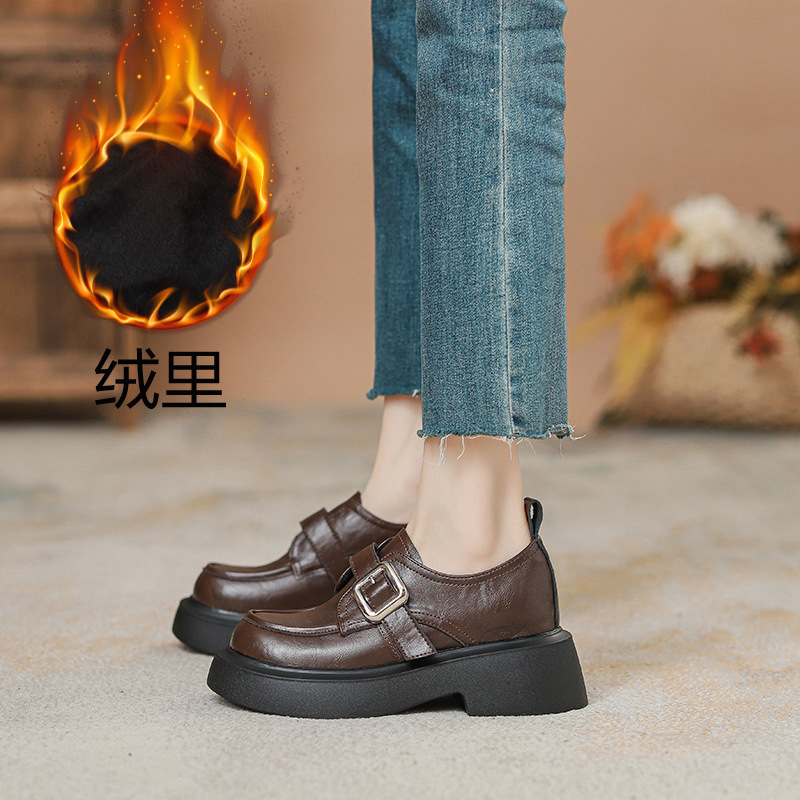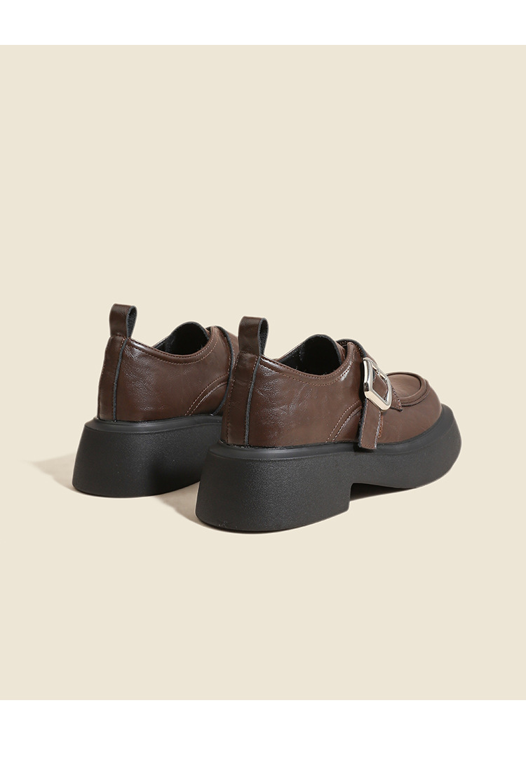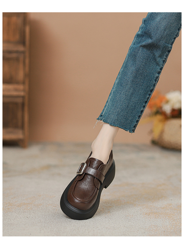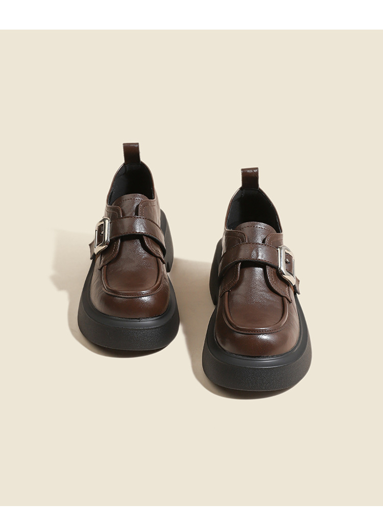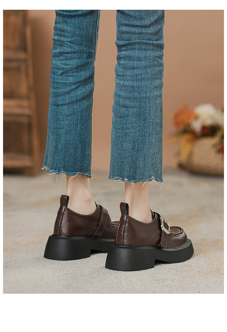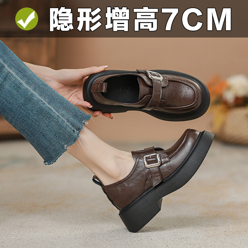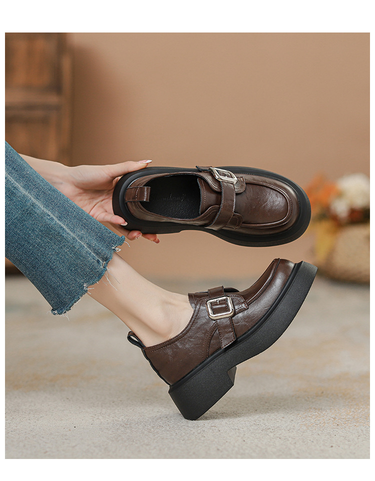 5369 세척 말 가죽 둥근 발가락 영국 스타일 슬립 온 로퍼 여성 핸드 인 고층 소형 가죽 신발 여성용 재고스토어 가기