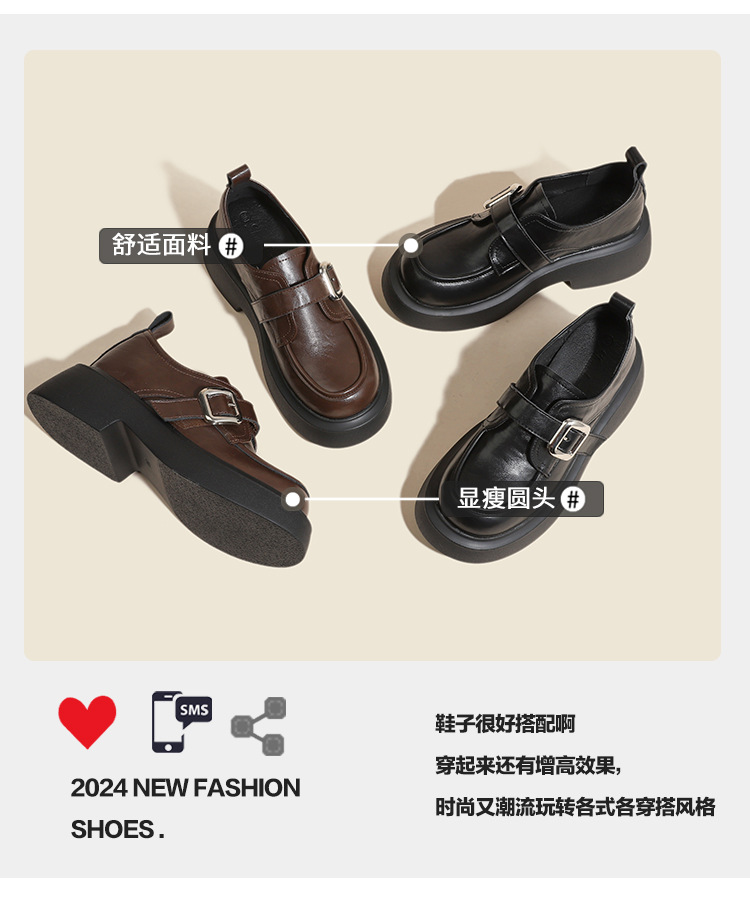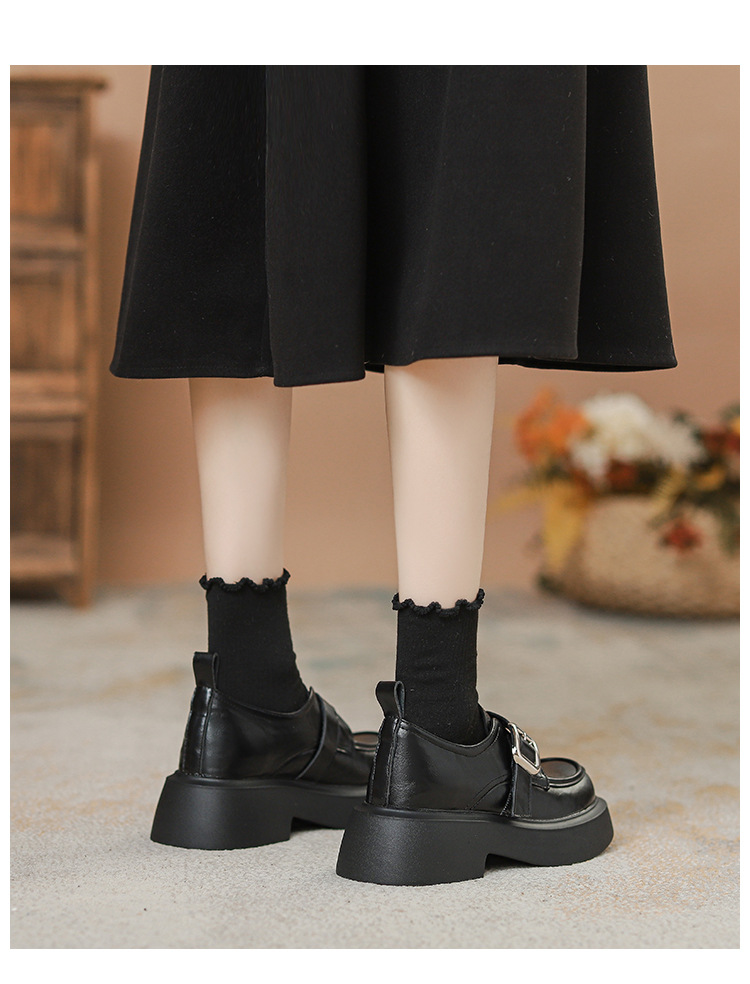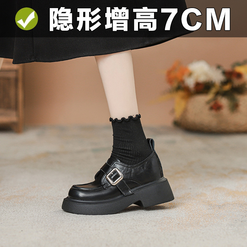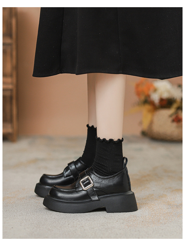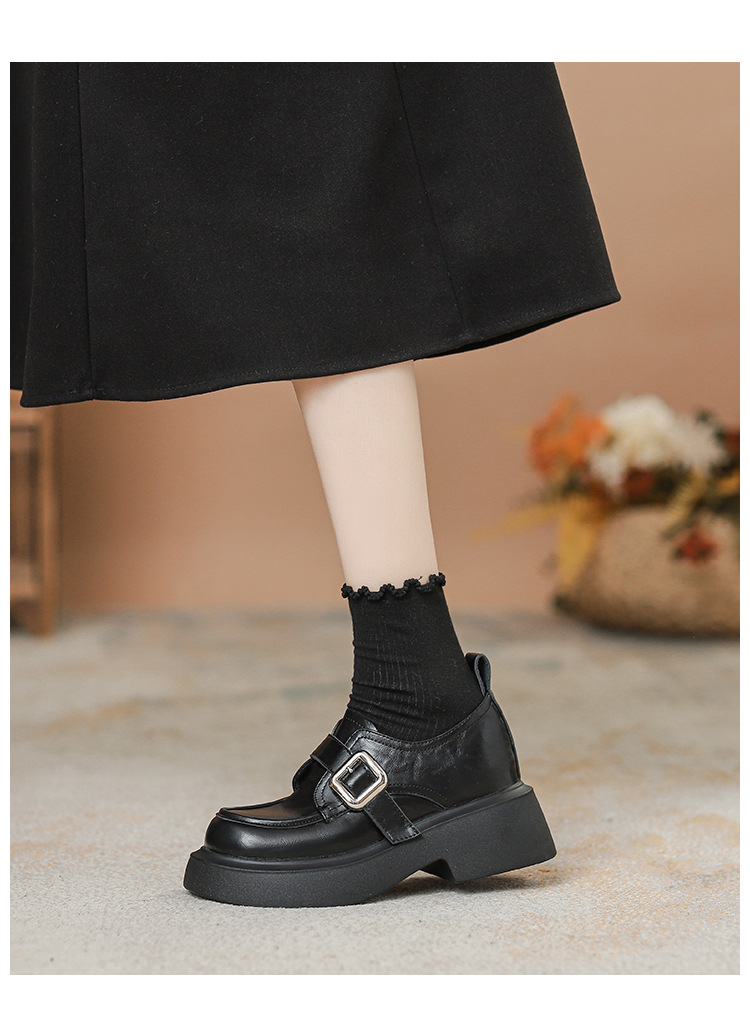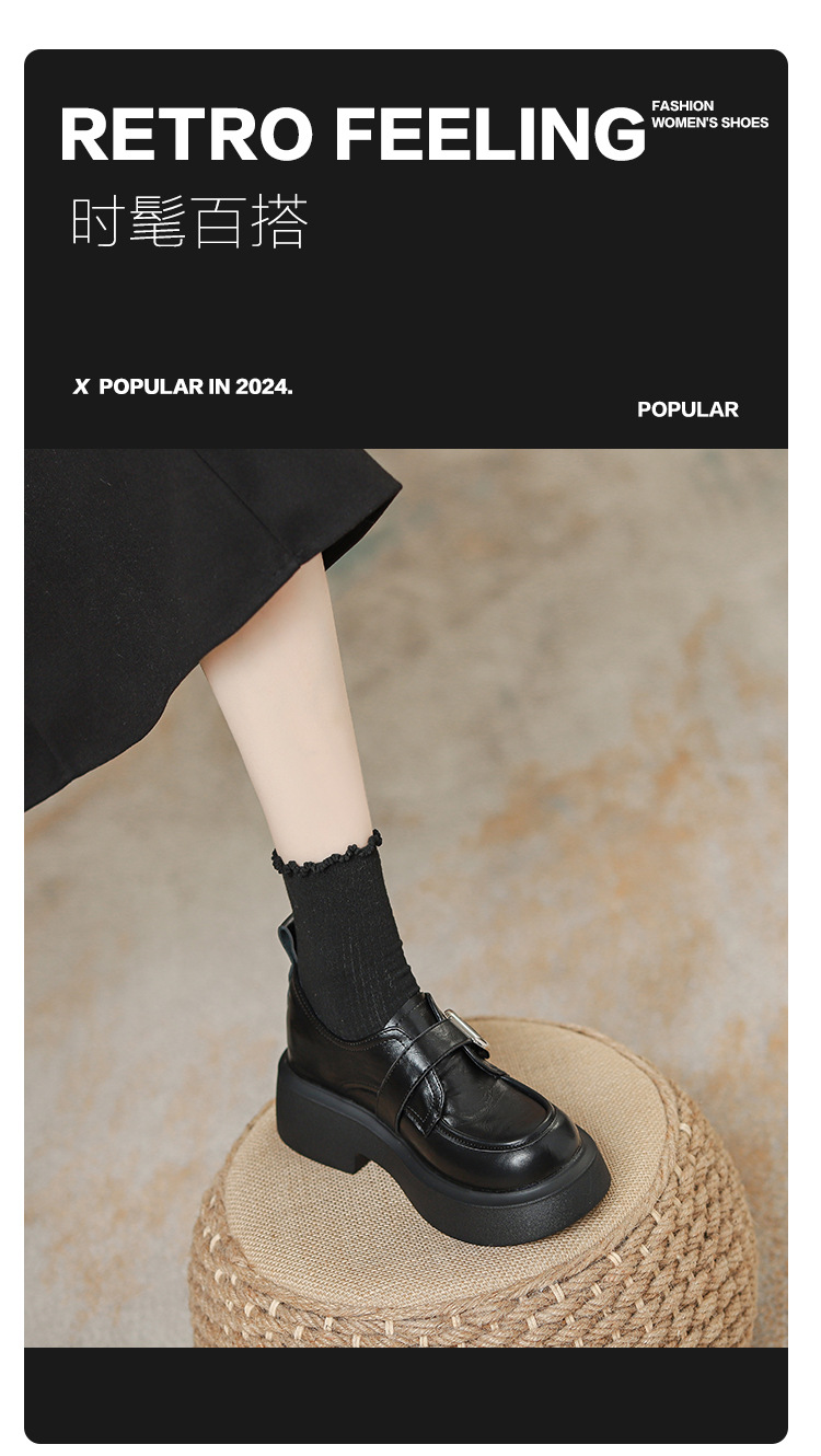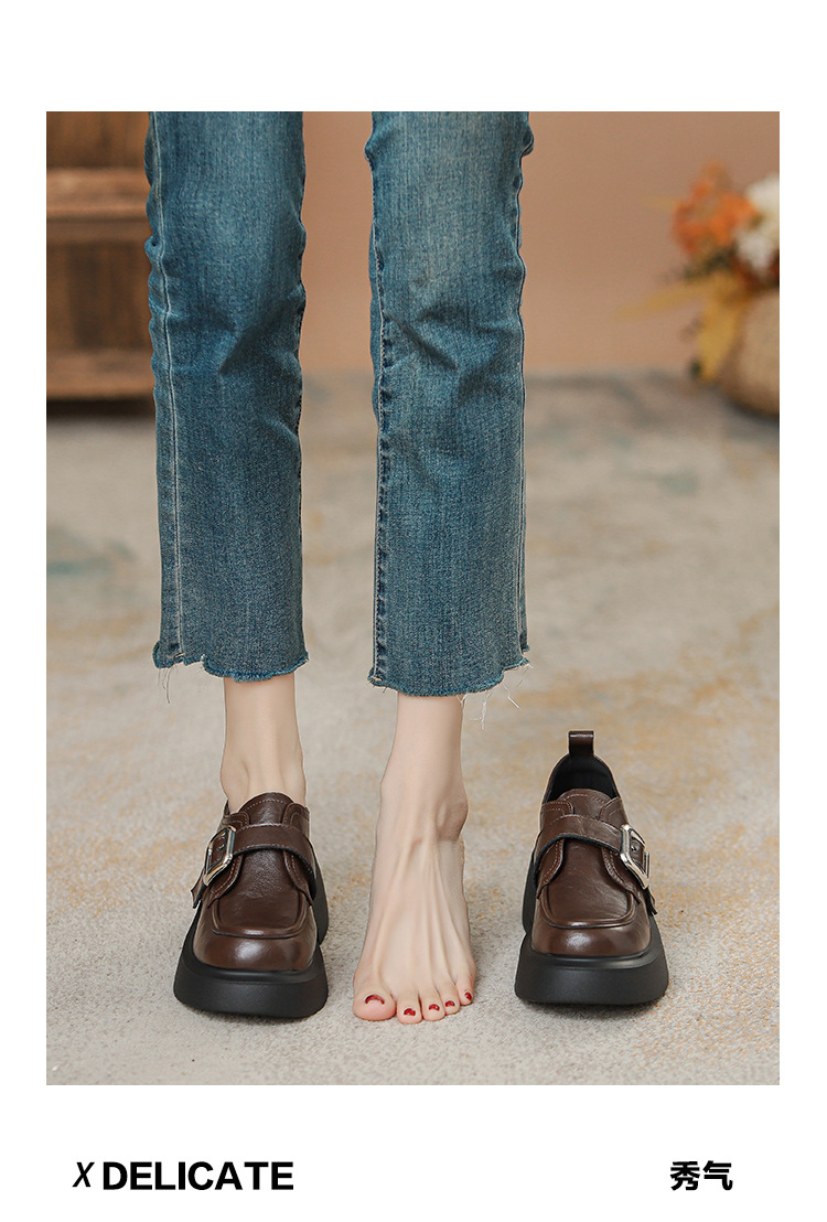 5369 세척 말 가죽 둥근 발가락 영국 스타일 슬립 온 로퍼 여성 핸드 인 고층 소형 가죽 신발 여성용 재고스토어 가기