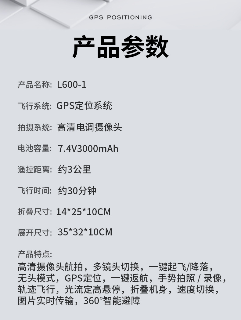 L600-1 Pro 국경 간 신제품 화면 제어 원격 제어 GPS 브러시리스 고화질 항공 사진 접이식 쿼드콥터스토어 가기