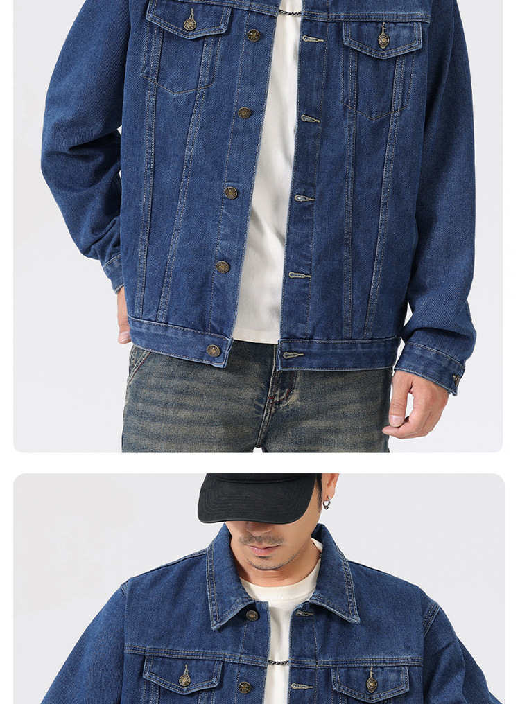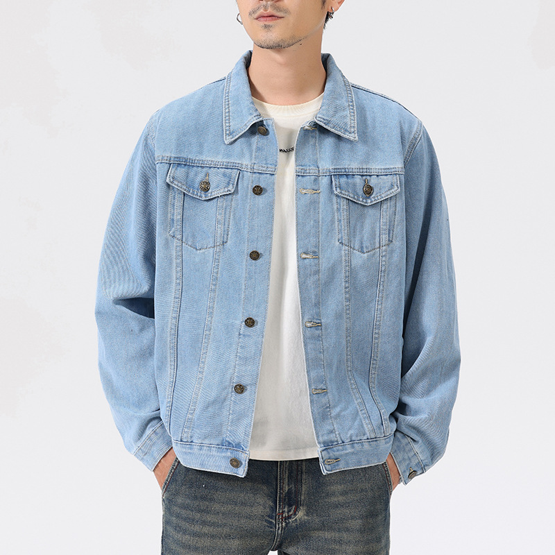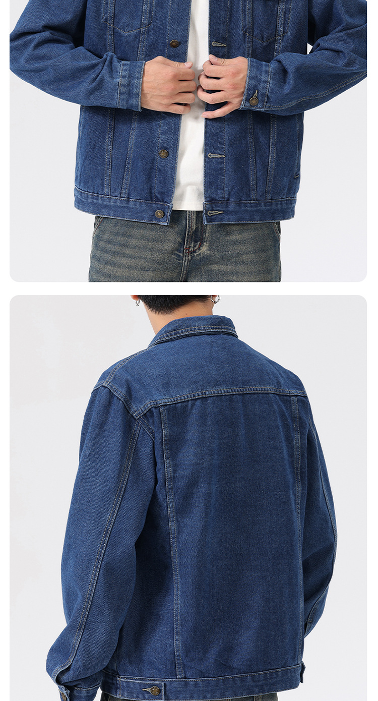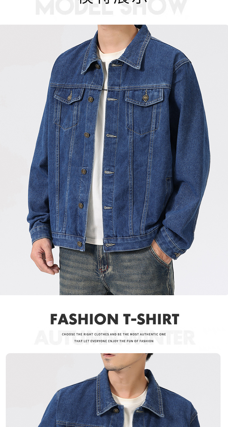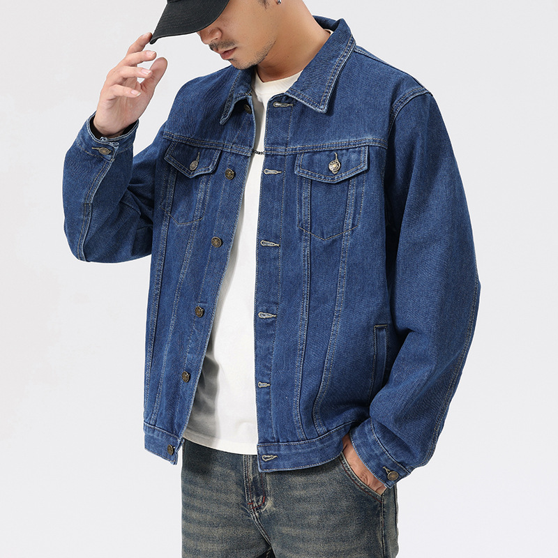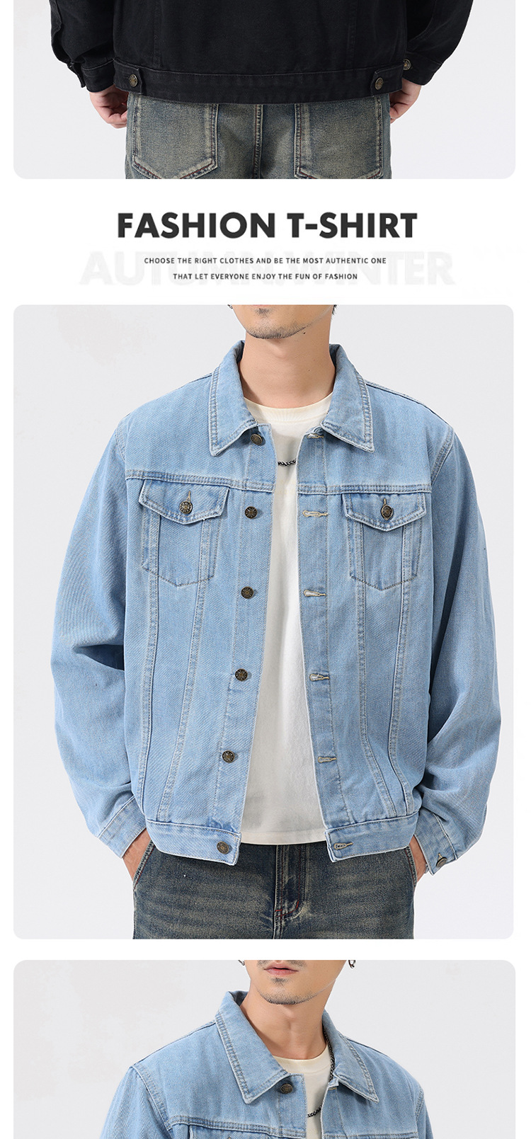 일본 유행 세탁 무거운 데님 재킷 남자 느슨한 플러스 사이즈 가을 새로운 캐주얼 올 매치 옷깃 재킷스토어 가기