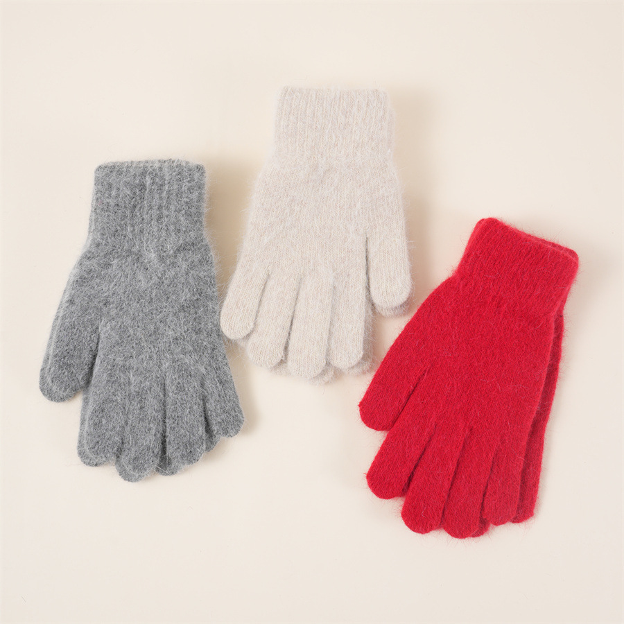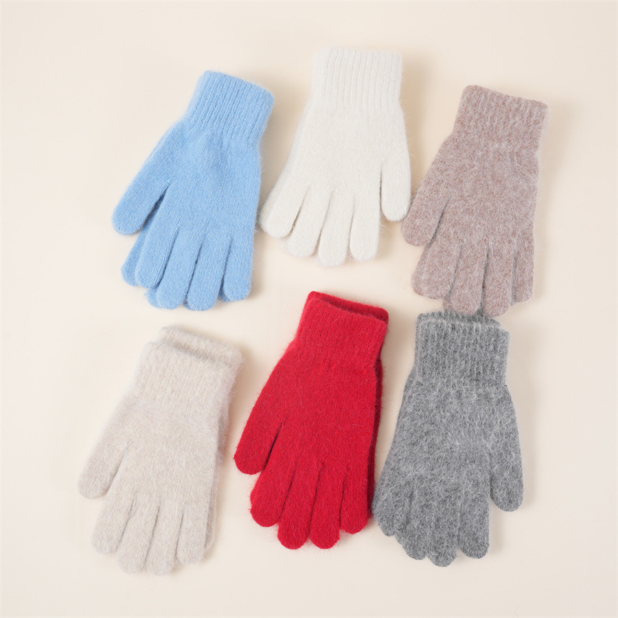 가을과 겨울 어린이 단색 크리스탈 장갑 기모 따뜻한 소년과 소녀 장갑 산호 양털 니트 장갑 도매