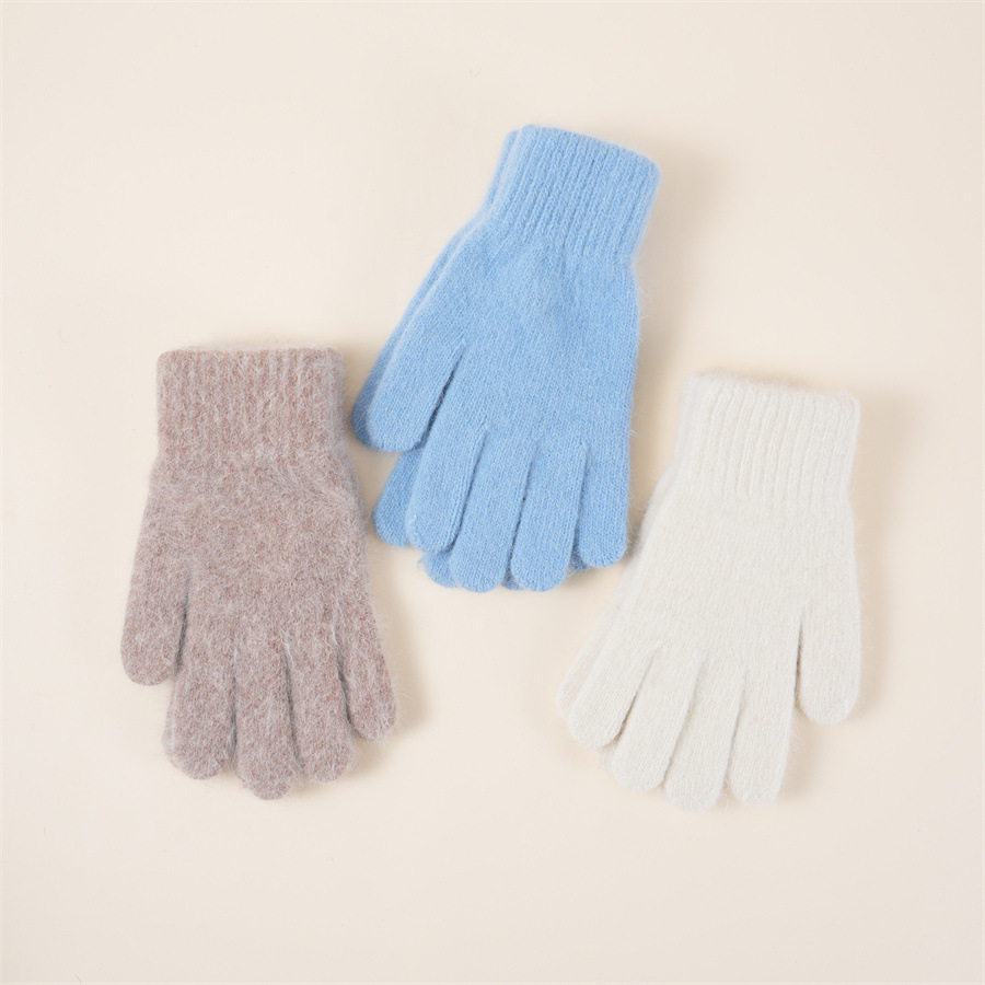 가을과 겨울 어린이 단색 크리스탈 장갑 기모 따뜻한 소년과 소녀 장갑 산호 양털 니트 장갑 도매스토어 가기