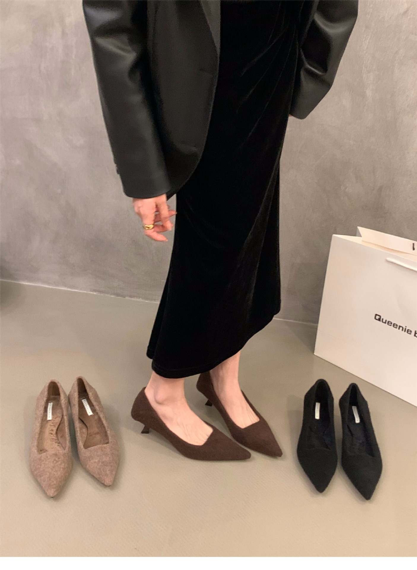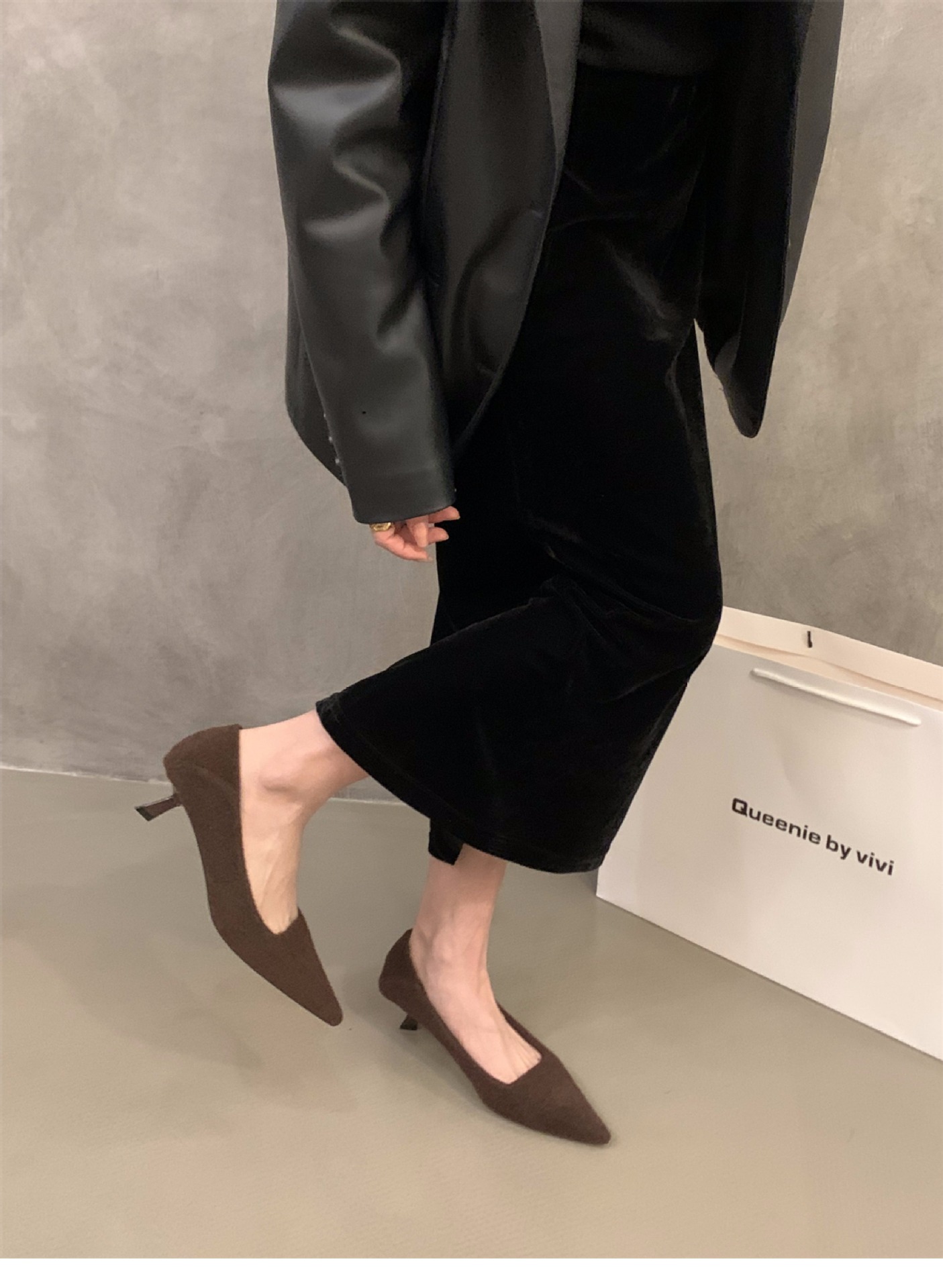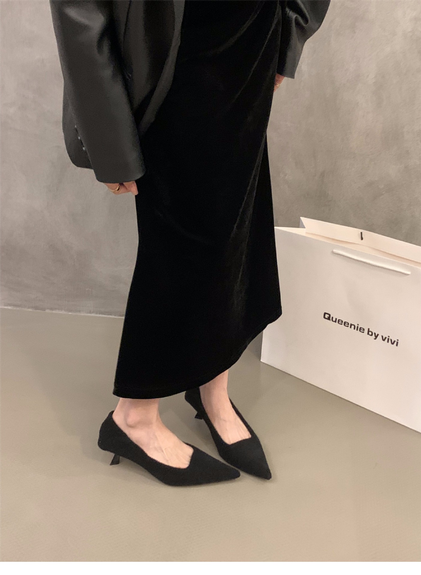 틈새 프랑스 기모 마오 마오 신발 싱글 신발 여성 신발 2024 새로운 가을과 겨울 우아한 뾰족한 검은 하이힐