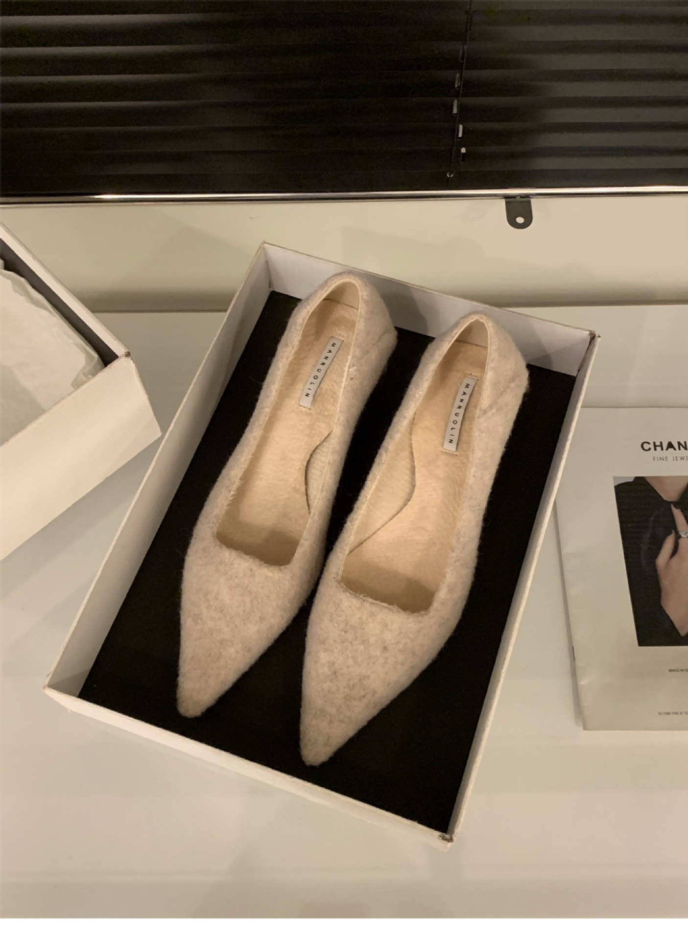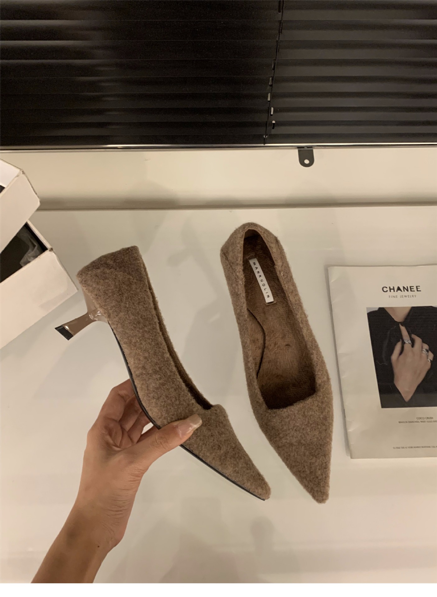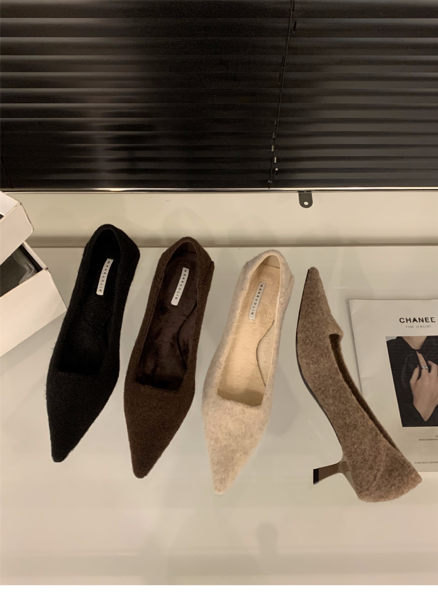 틈새 프랑스 기모 마오 마오 신발 싱글 신발 여성 신발 2024 새로운 가을과 겨울 우아한 뾰족한 검은 하이힐