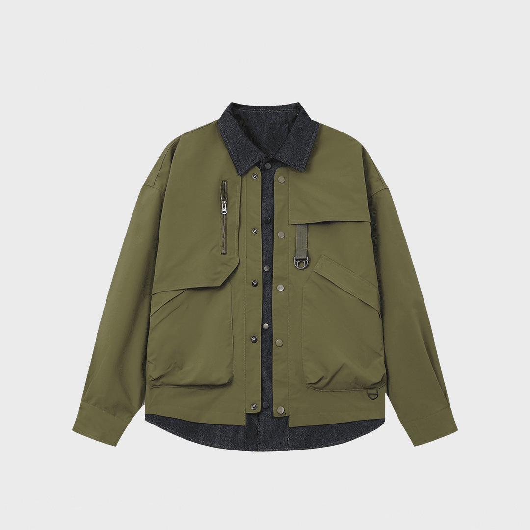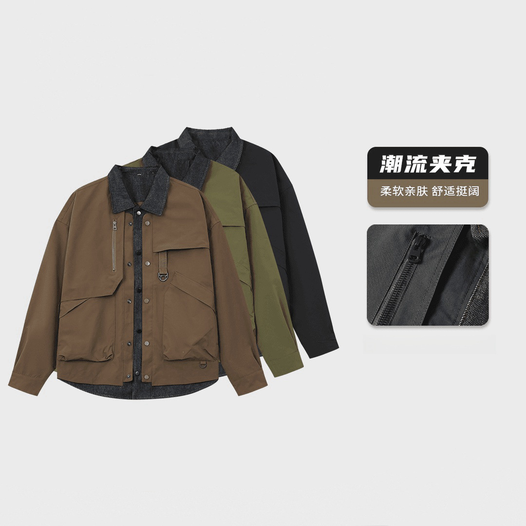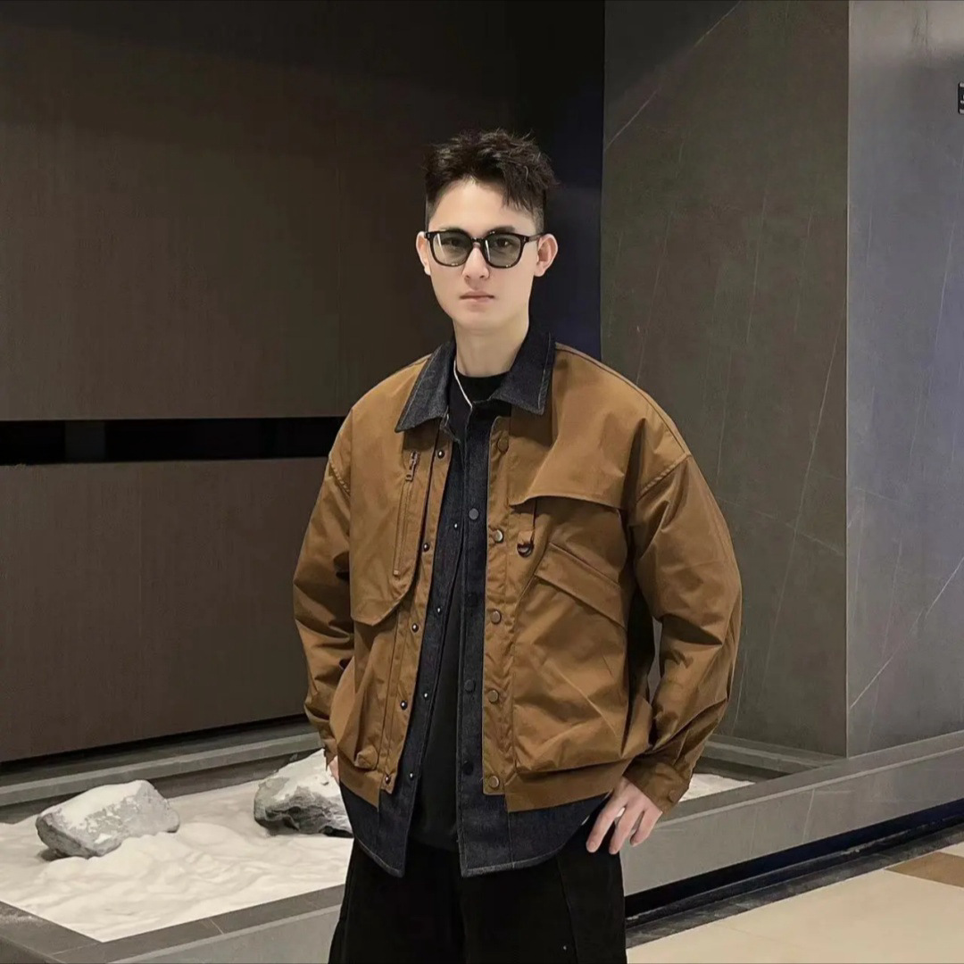 새로운 봄과 가을 남성 바느질 데님 가짜 투피스 재킷 패션 트렌디 느슨한 랩 커플의 작업 재킷스토어 가기
