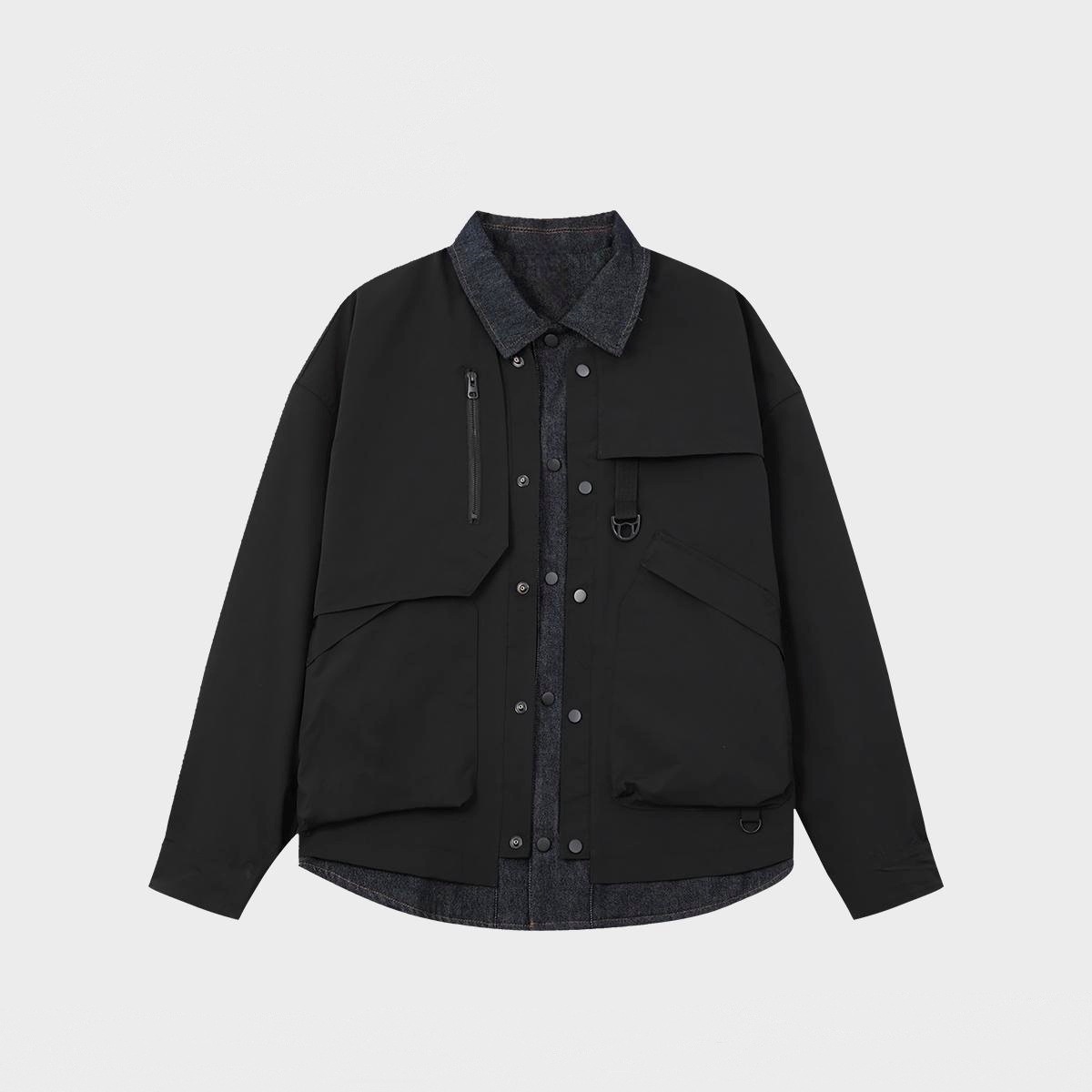 새로운 봄과 가을 남성 바느질 데님 가짜 투피스 재킷 패션 트렌디 느슨한 랩 커플의 작업 재킷