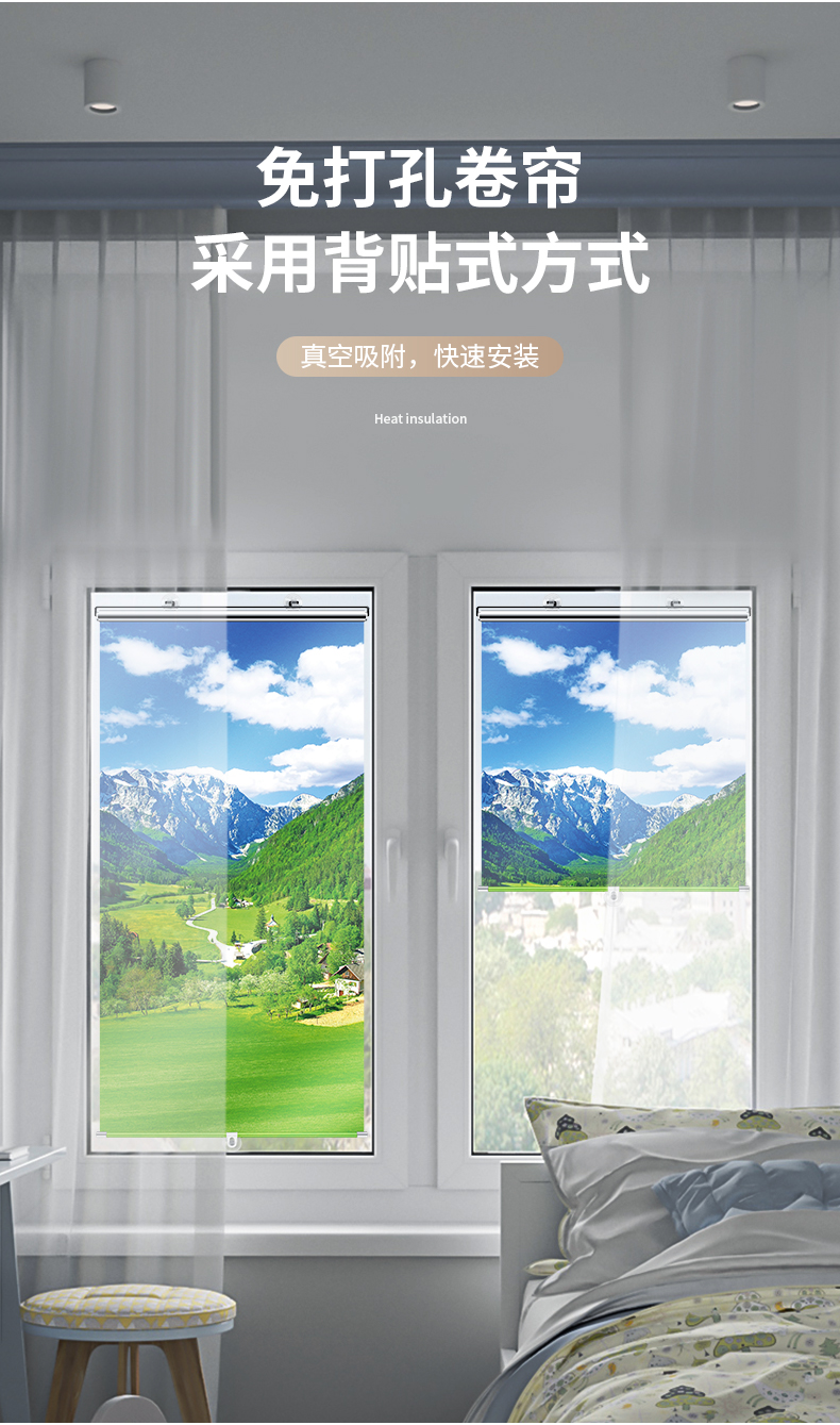 발코니 양산 석션 컵 침실 단열 정전 커튼 욕실 유리 필름 홈 오피스 망원경 장완