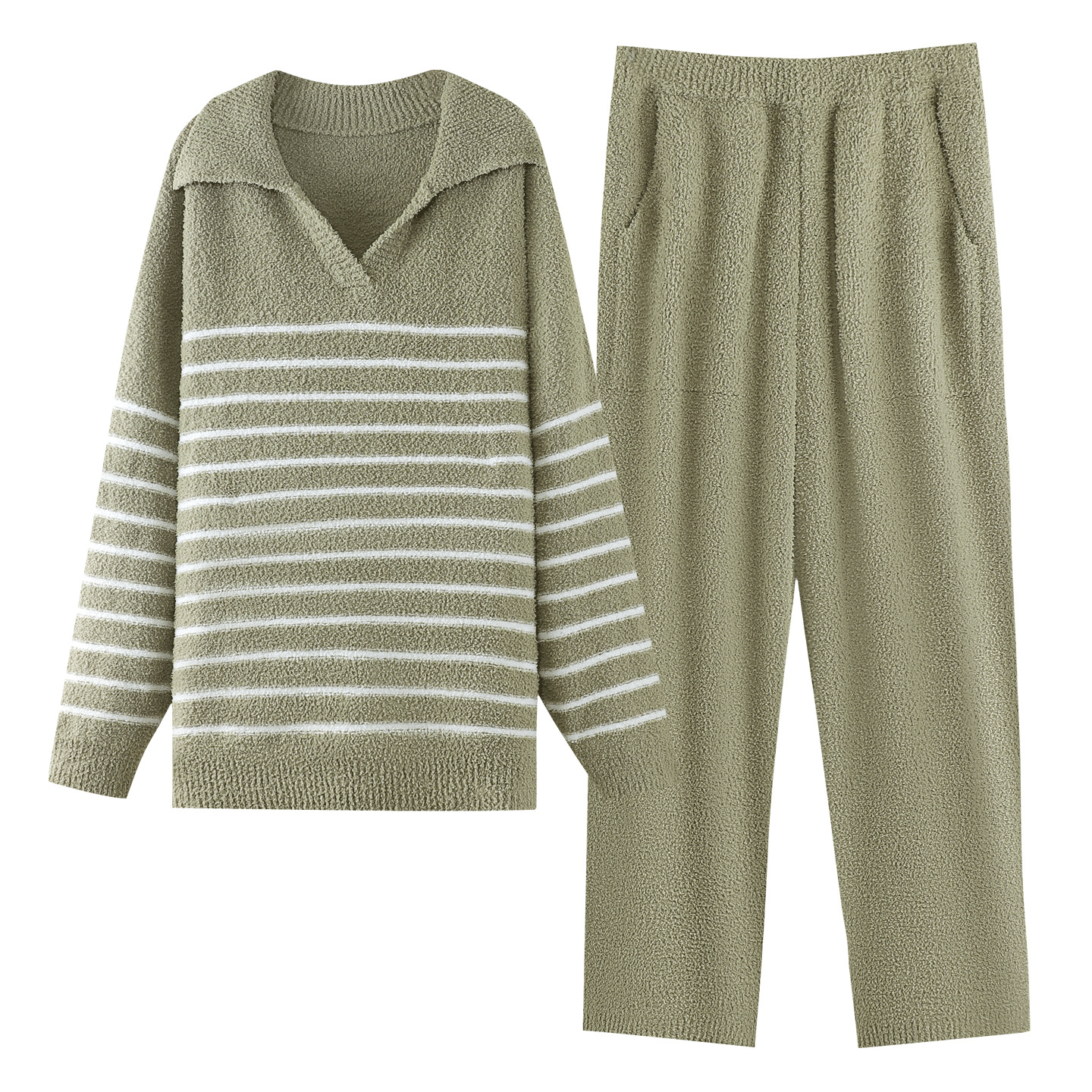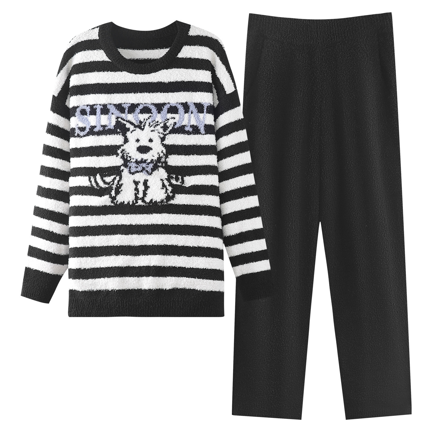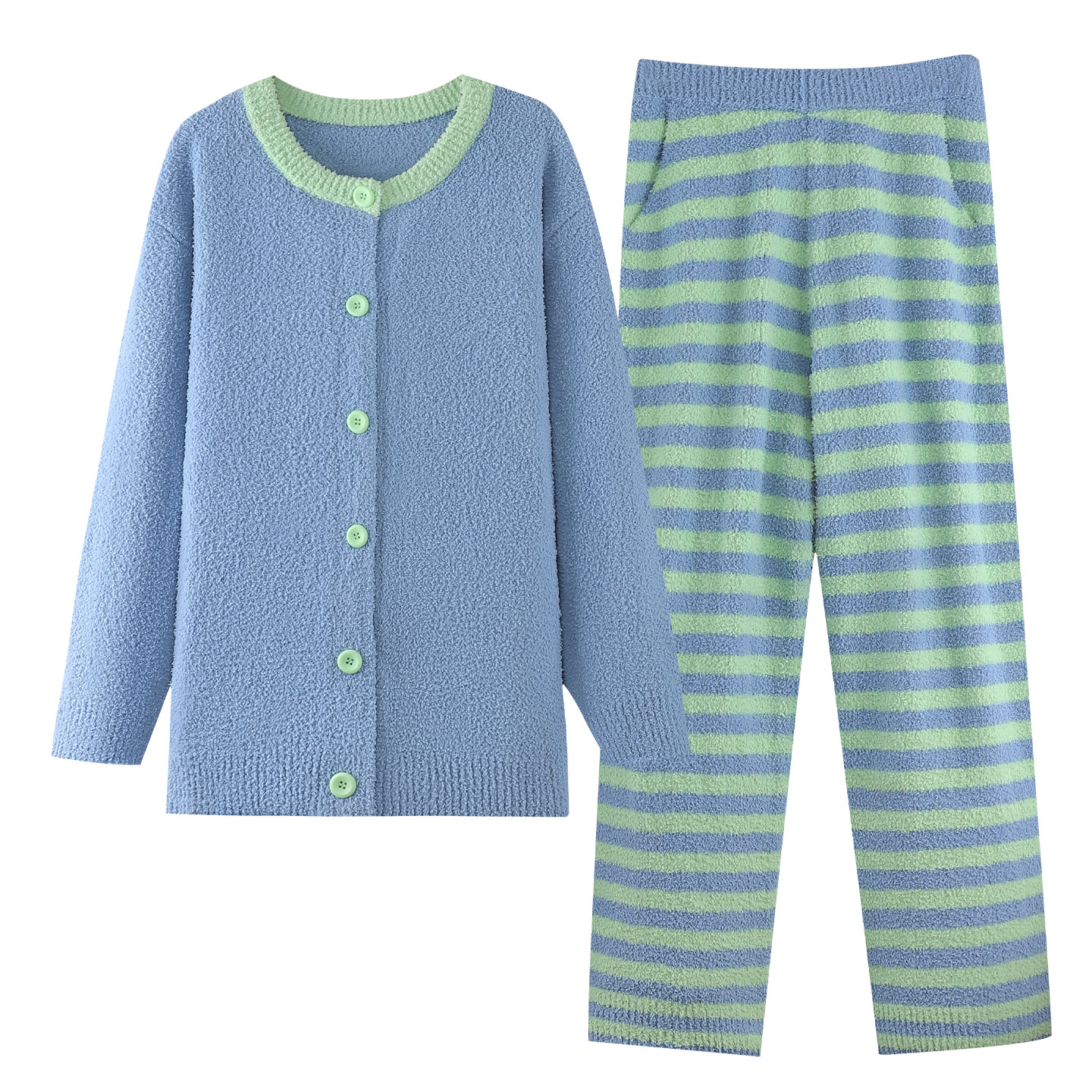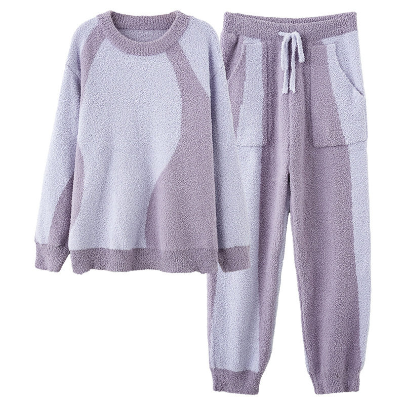 [깨진 사이즈 복지] 연약한 반쪽 벨벳 커플 잠옷 가을과 겨울 두꺼운 따뜻한 둥근 목 남녀 홈 옷