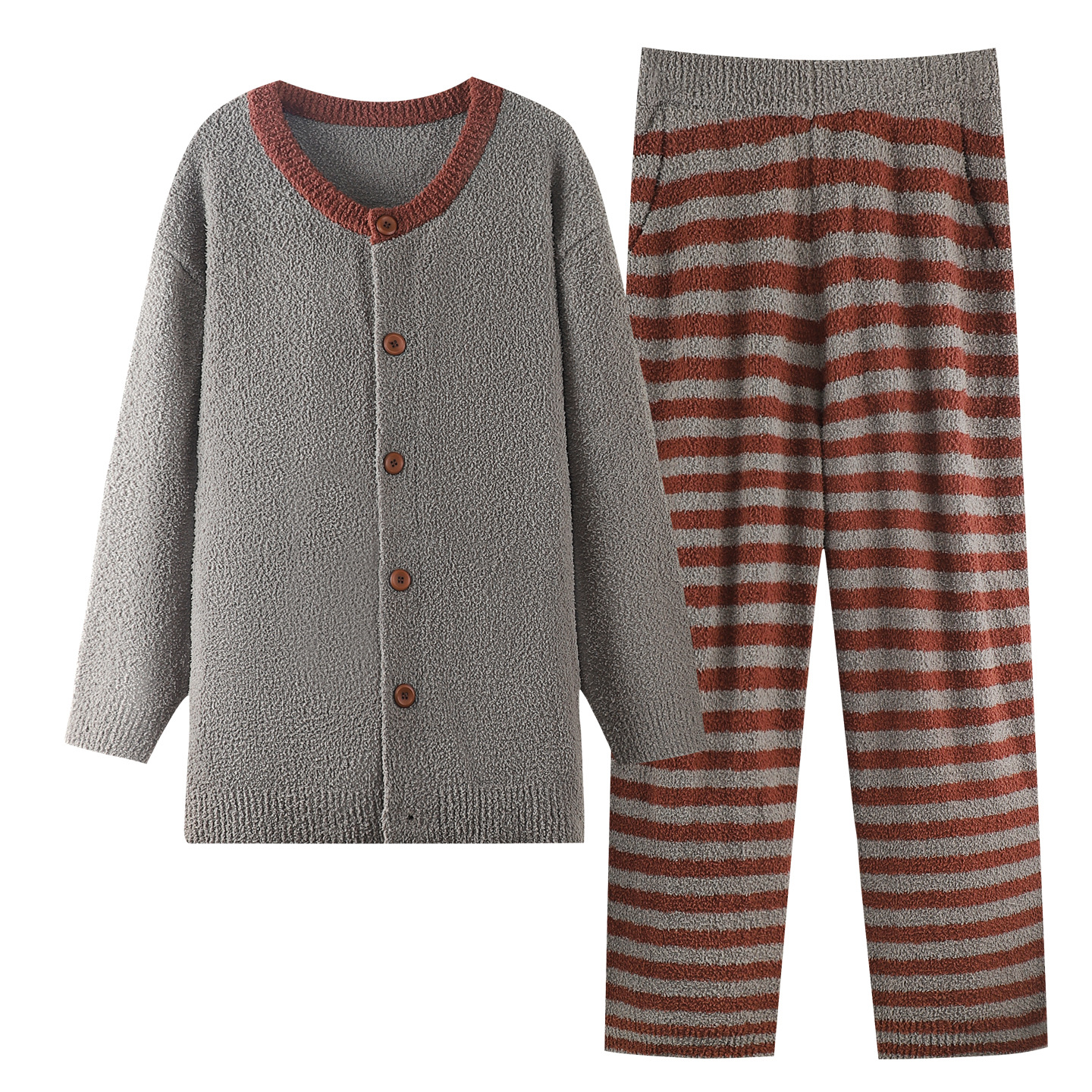[깨진 사이즈 복지] 연약한 반쪽 벨벳 커플 잠옷 가을과 겨울 두꺼운 따뜻한 둥근 목 남녀 홈 옷스토어 가기