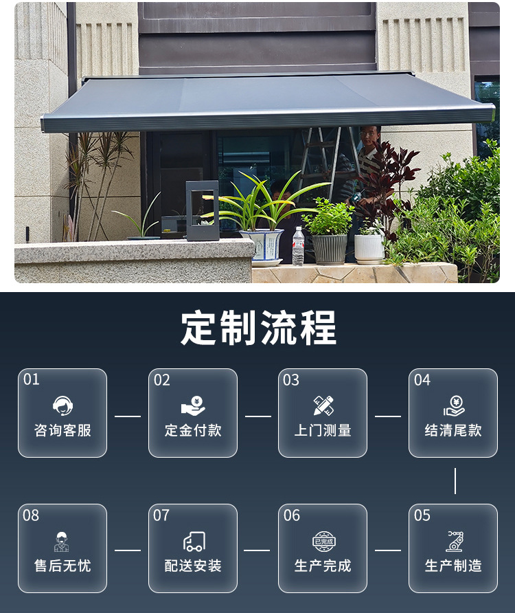 국경 도매 전기 원격 제어 개폐식 차양 야외 발코니 안뜰 홈 빌라 자동 개폐식 차양 캐노피스토어 가기