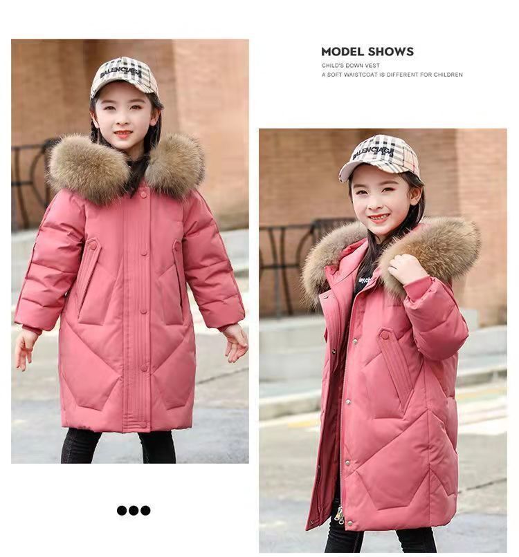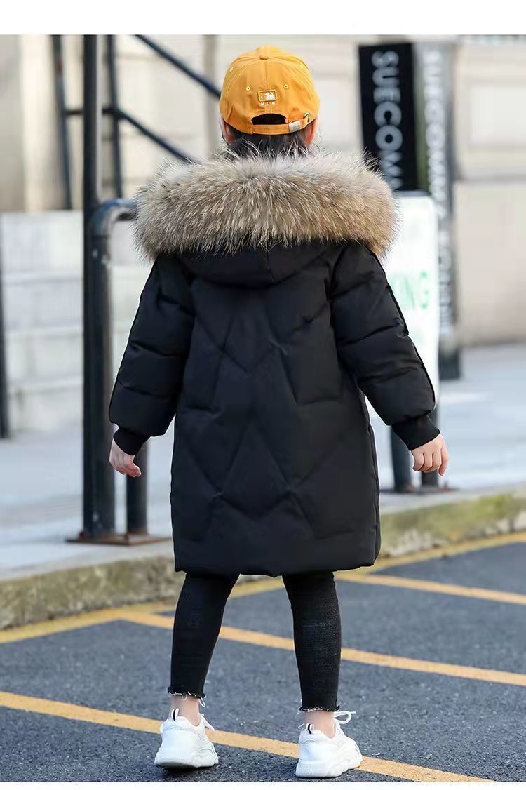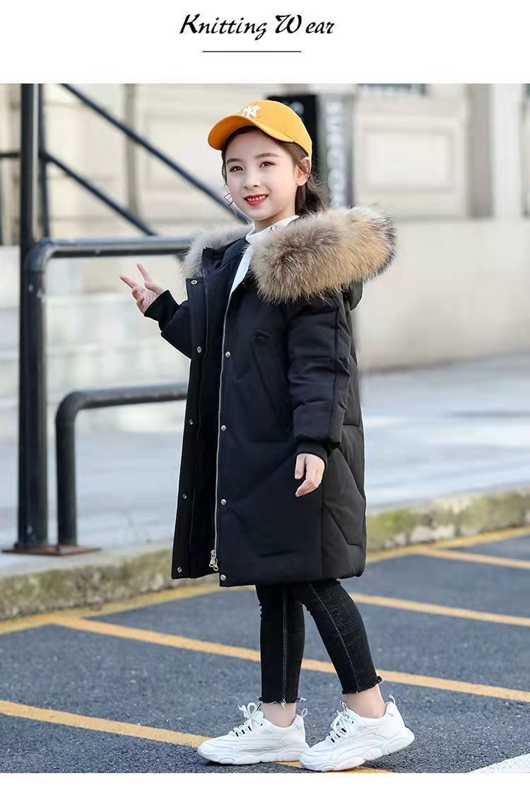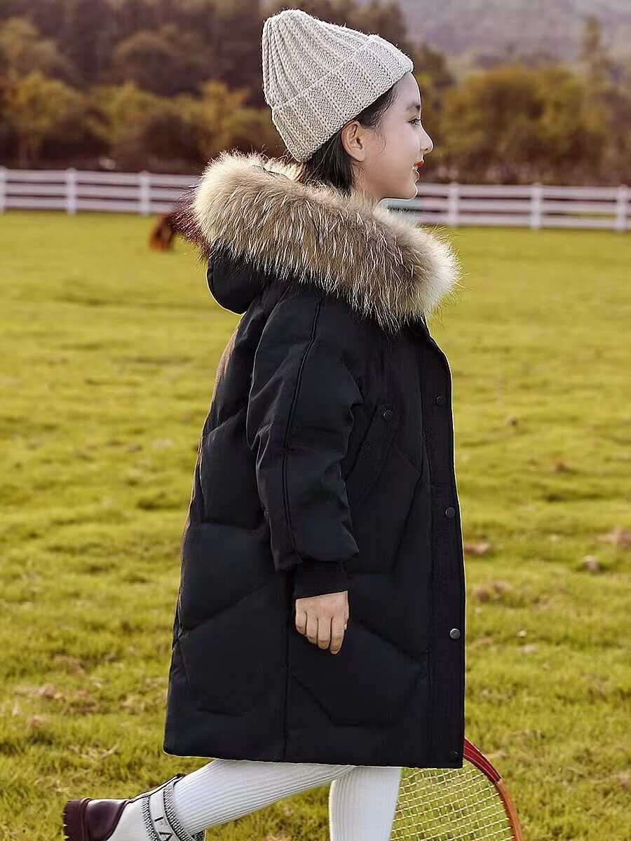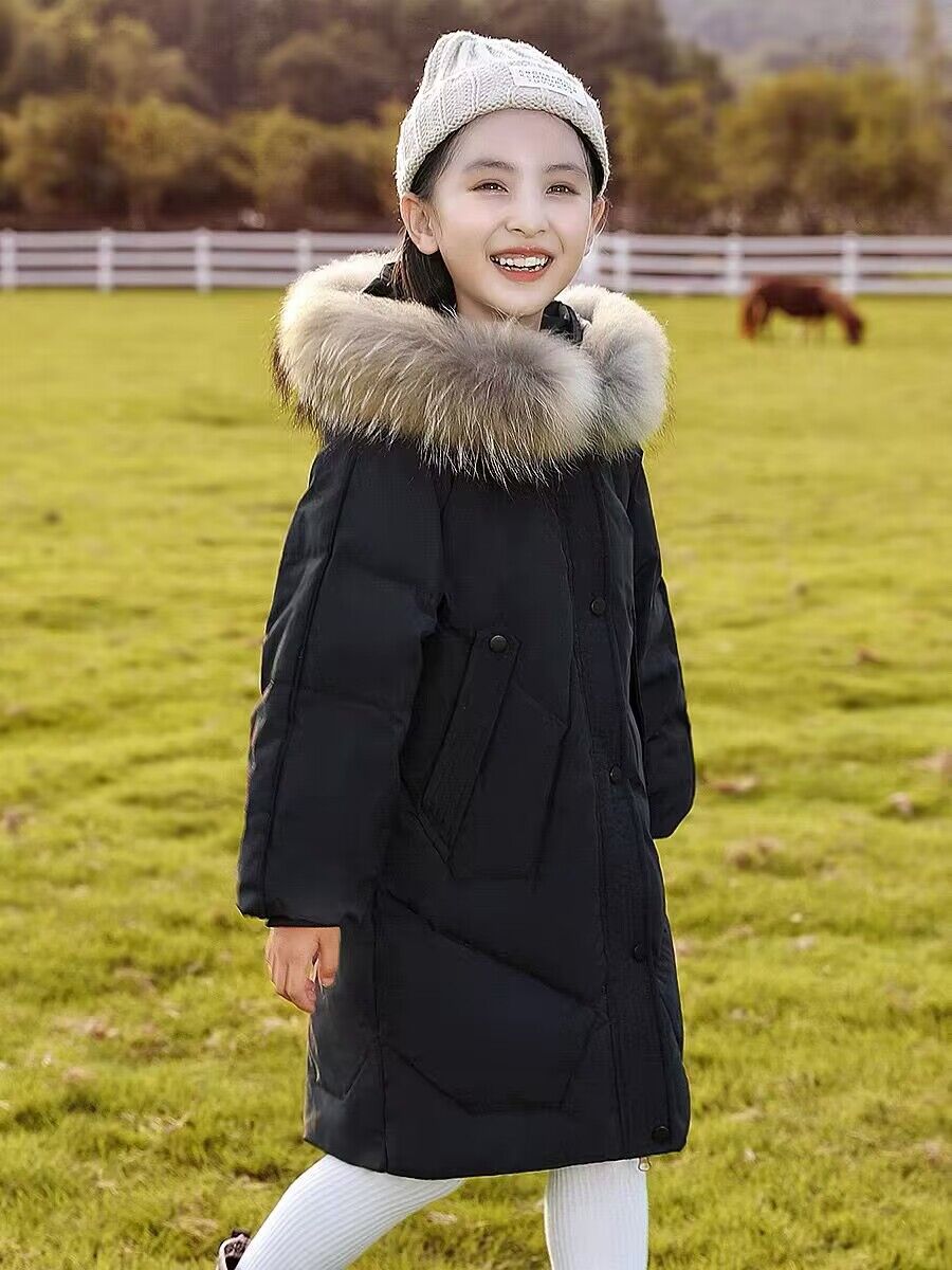 여아용 긴 코튼 코트, 큰 모피 칼라 코트, 2024 겨울 코트, 어린이용 후드 방한 두꺼운 코튼 의류스토어 가기