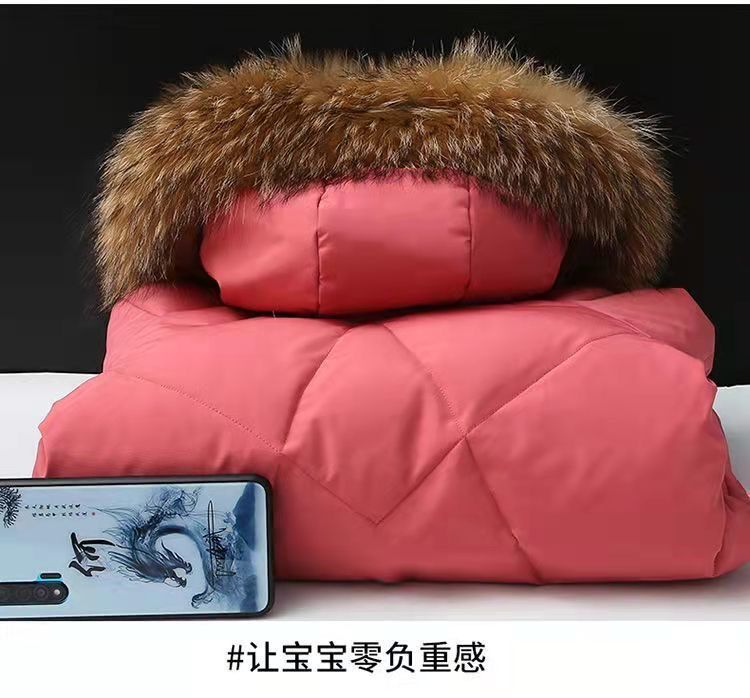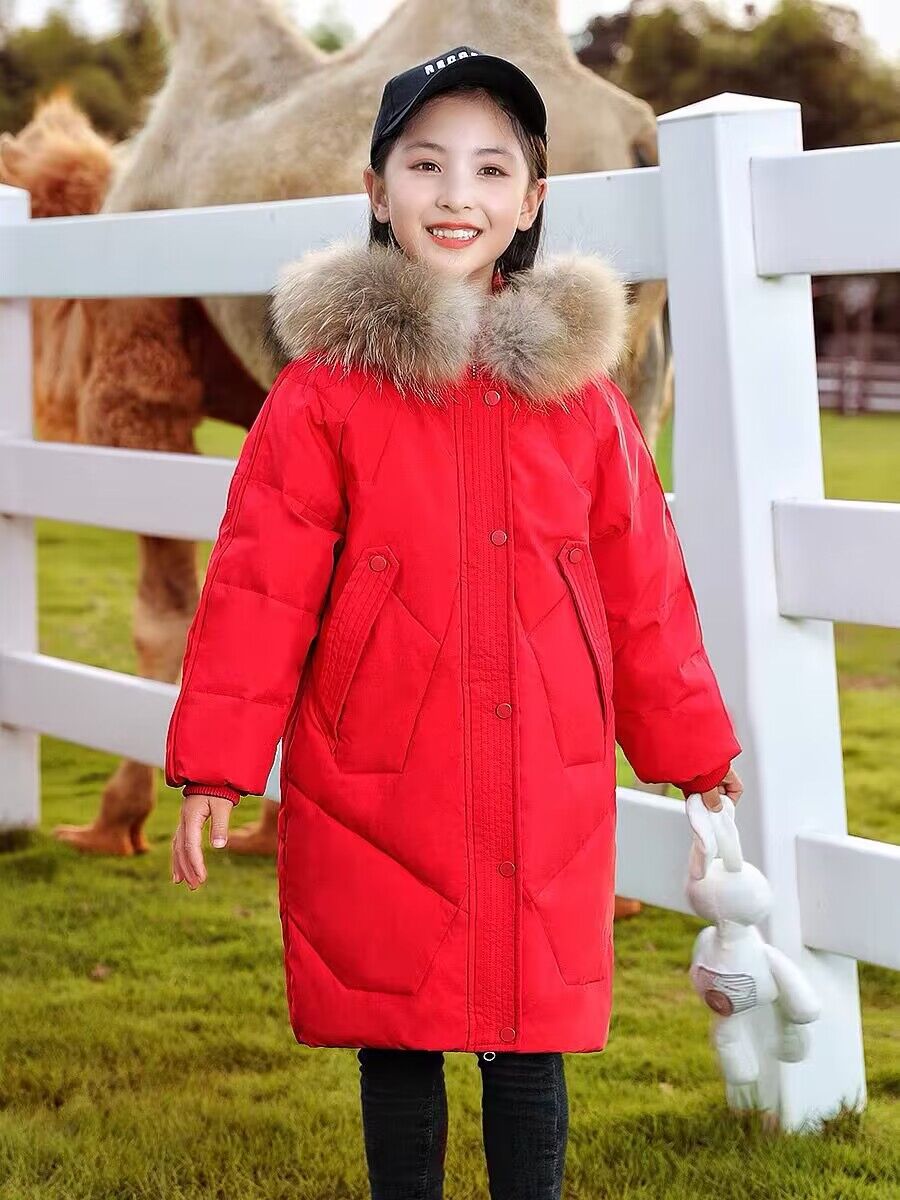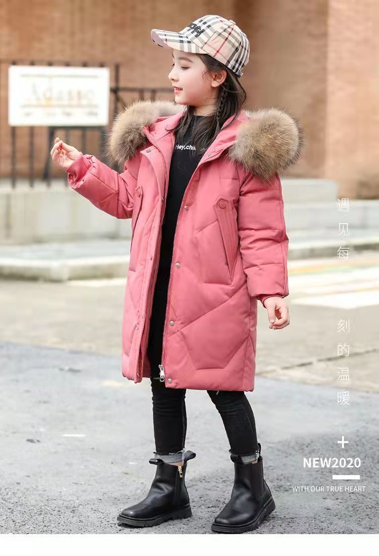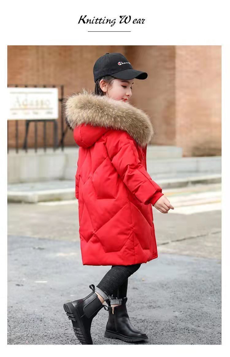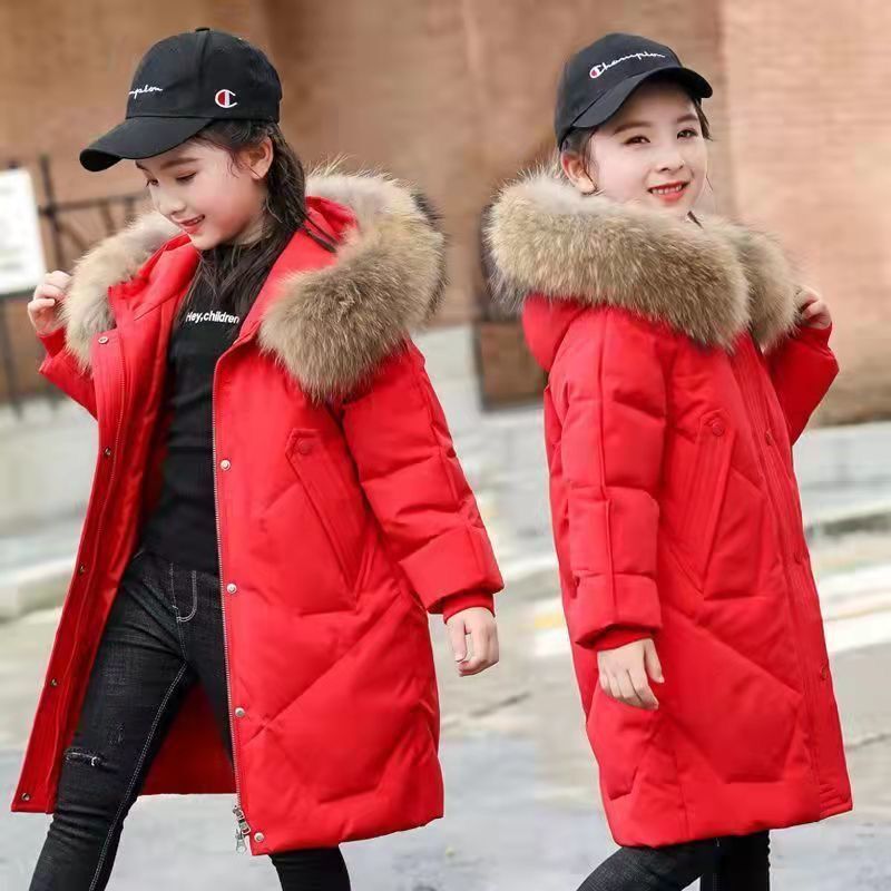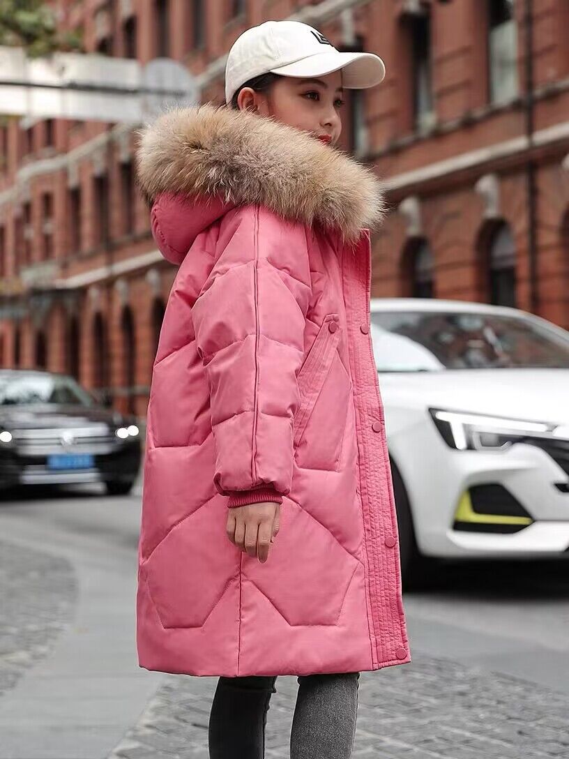 여아용 긴 코튼 코트, 큰 모피 칼라 코트, 2024 겨울 코트, 어린이용 후드 방한 두꺼운 코튼 의류스토어 가기