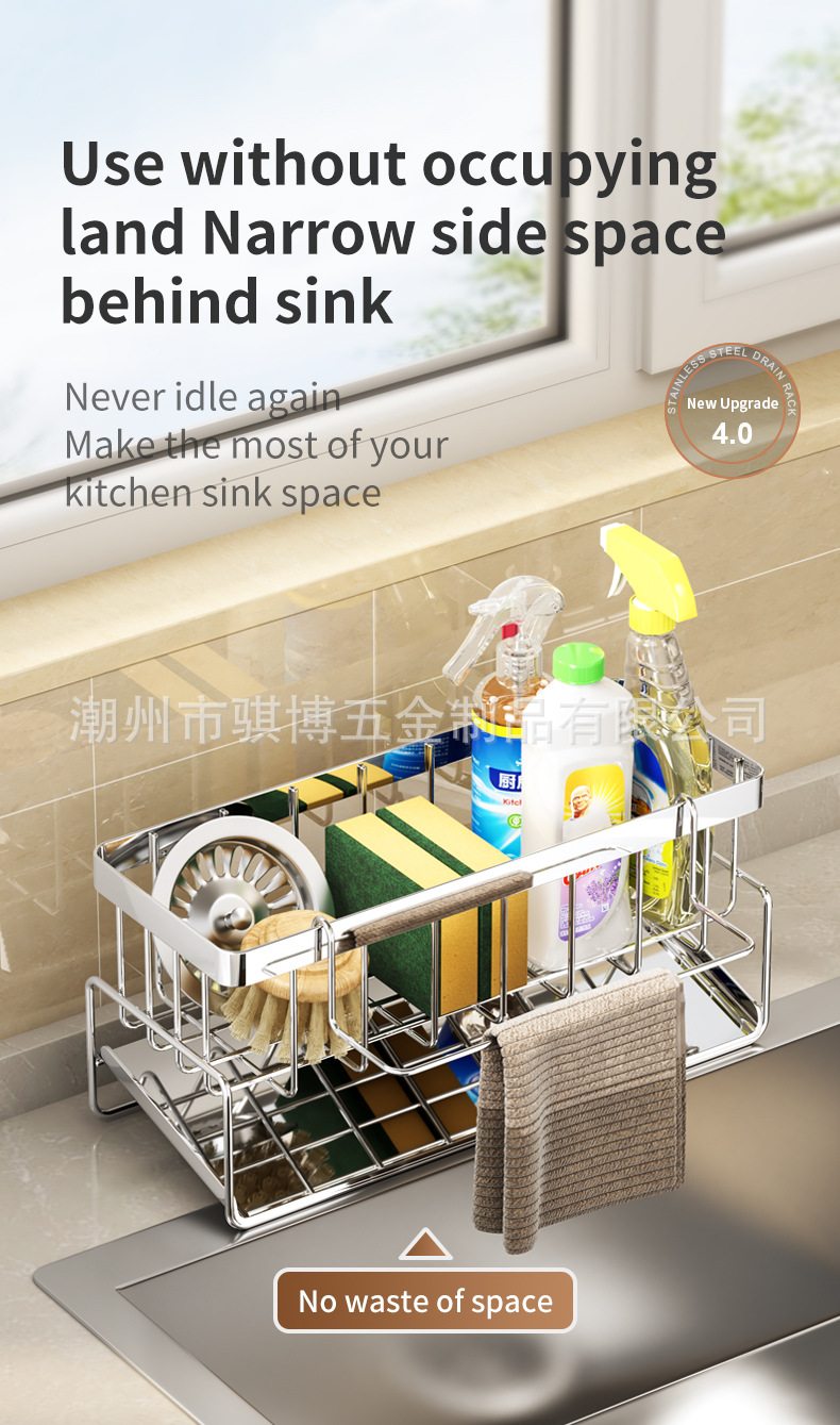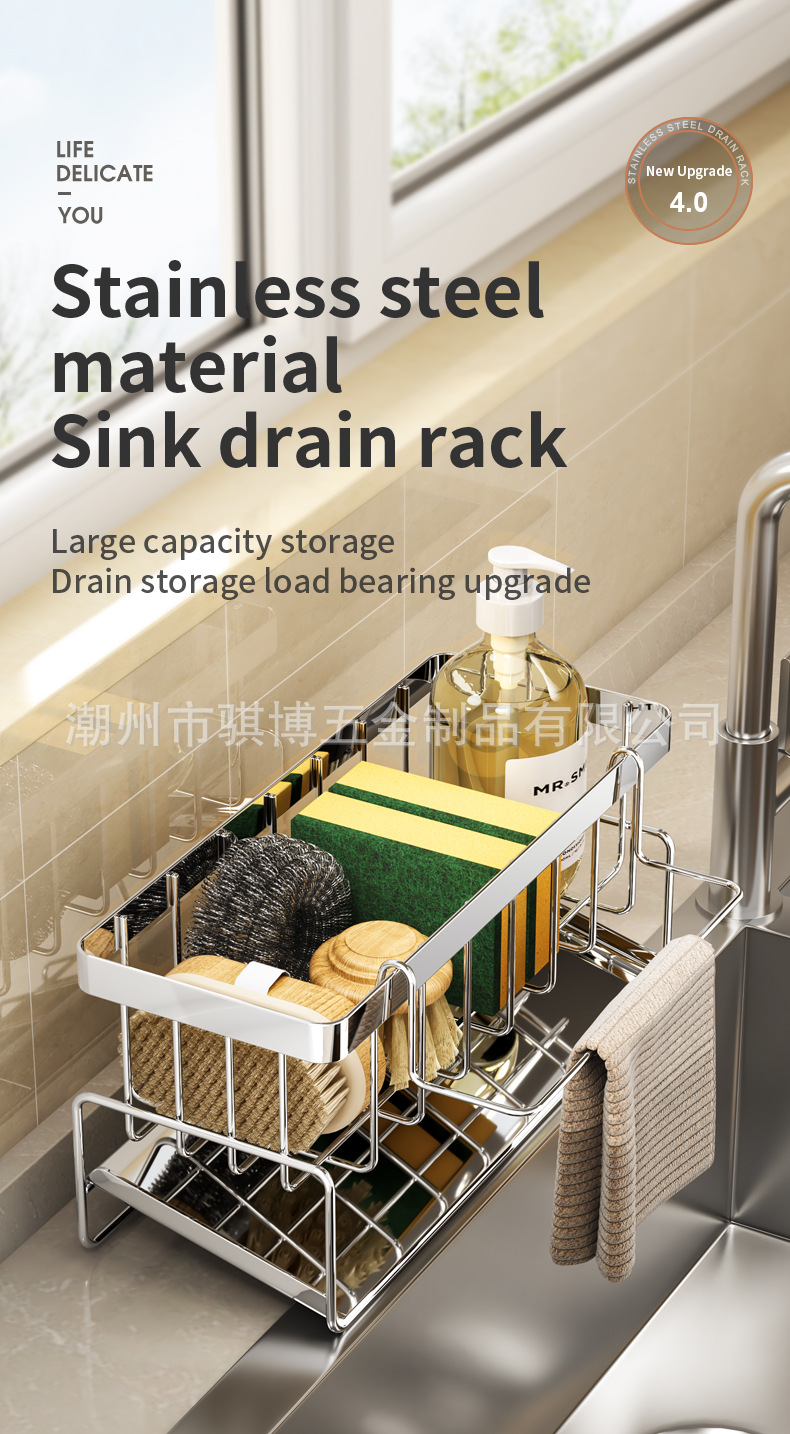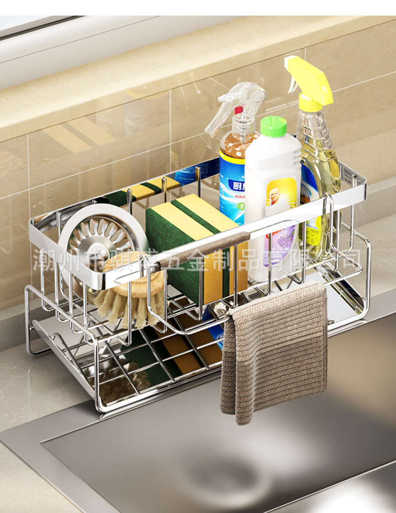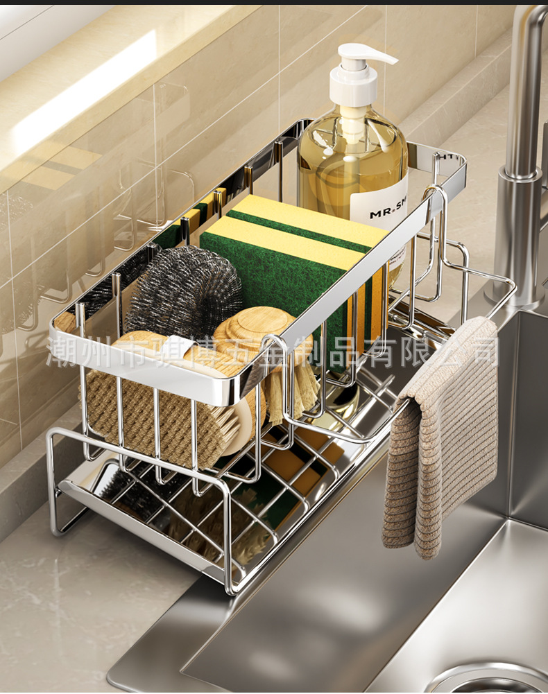 국경 간 스테인레스 스틸 주방 랙 카운터 탑 기구 싱크 드레인 랙 스폰지 저장 청소 용품 랙