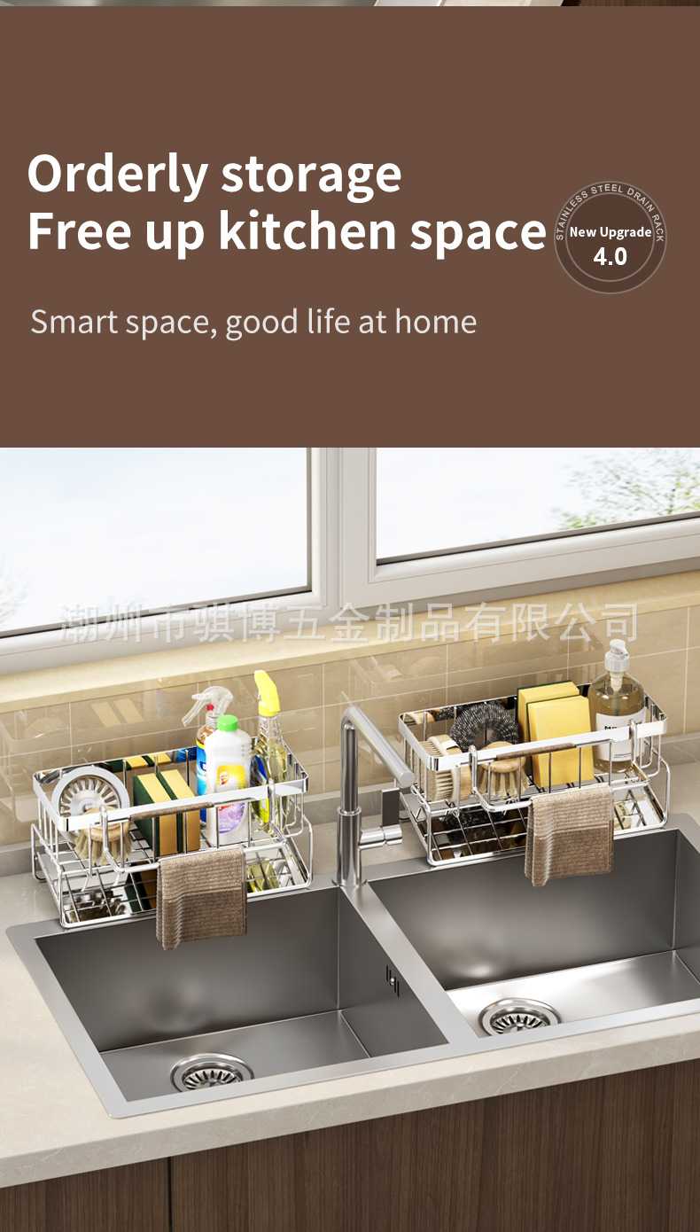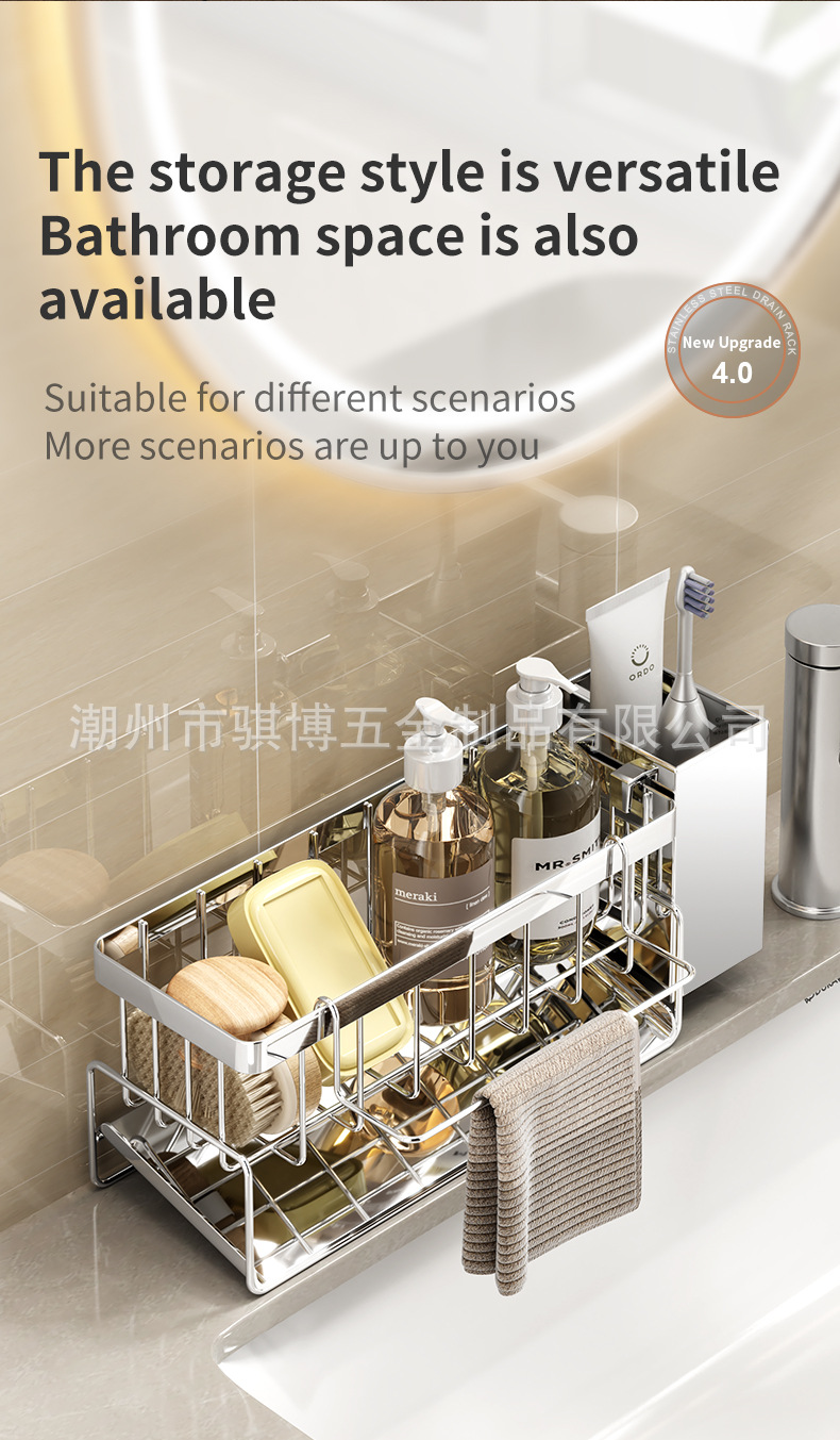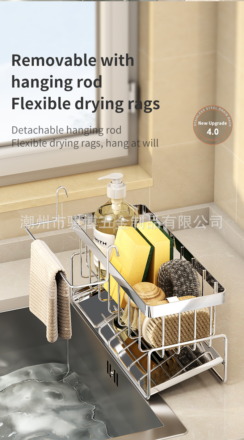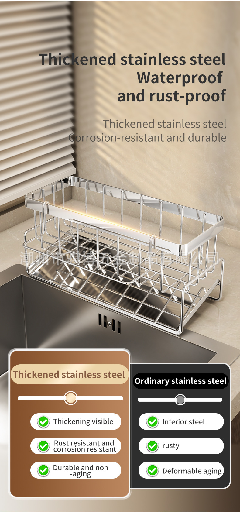 국경 간 스테인레스 스틸 주방 랙 카운터 탑 기구 싱크 드레인 랙 스폰지 저장 청소 용품 랙