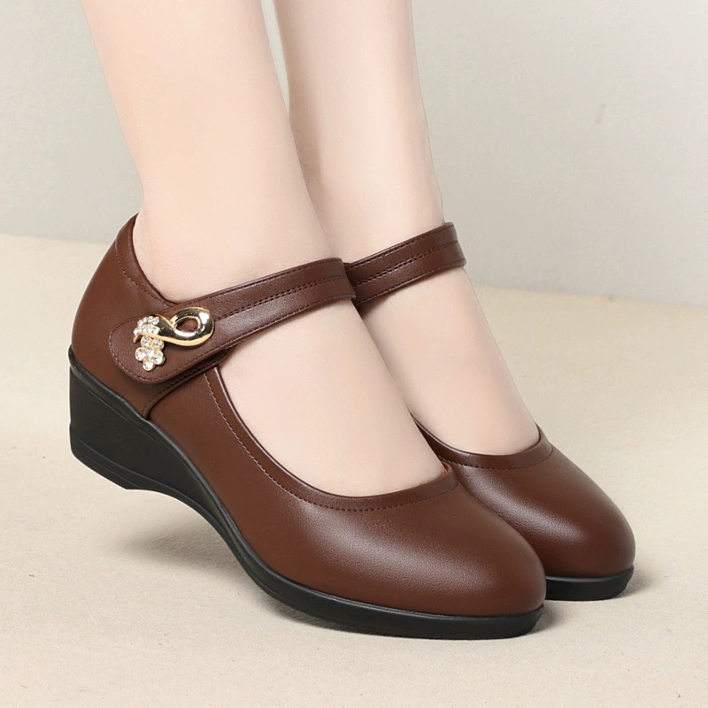 둥근 머리 미끄럼 방지 신발 부드러운 바닥 여성 신발 봄, 여름, 가을 어머니 신발 웨지 힐 중년 신발