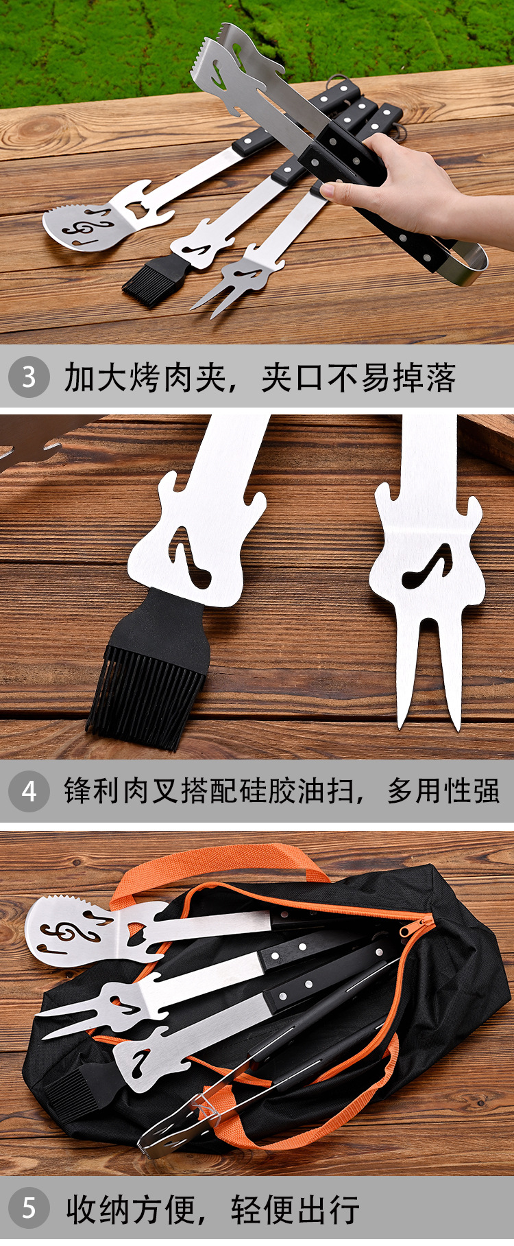 새로운 야외 캠핑 휴대용 BBQ 바베큐 도구 스테인레스 스틸 미러 크리에이티브 기타 세트 보관 가방스토어 가기
