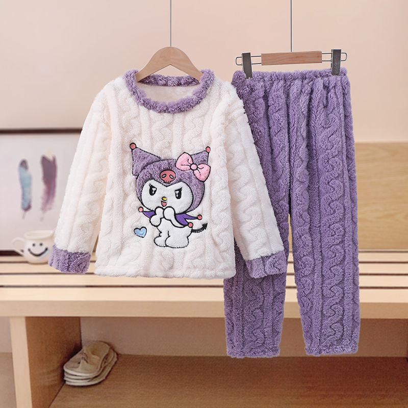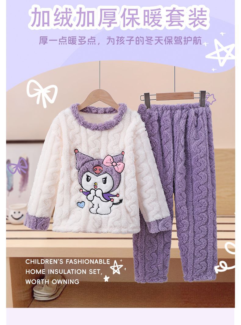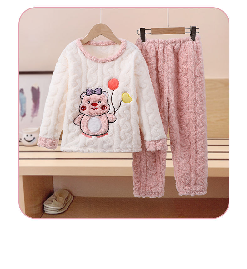 가을과 겨울 2024 새로운 여자 따뜻한 집 옷 귀여운 만화 큰 아이 소녀 플란넬 어린이 세트스토어 가기