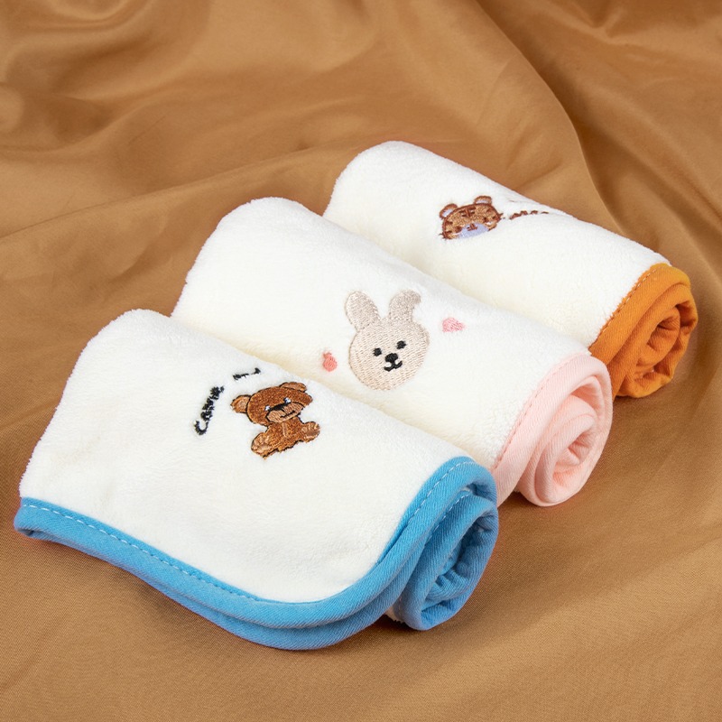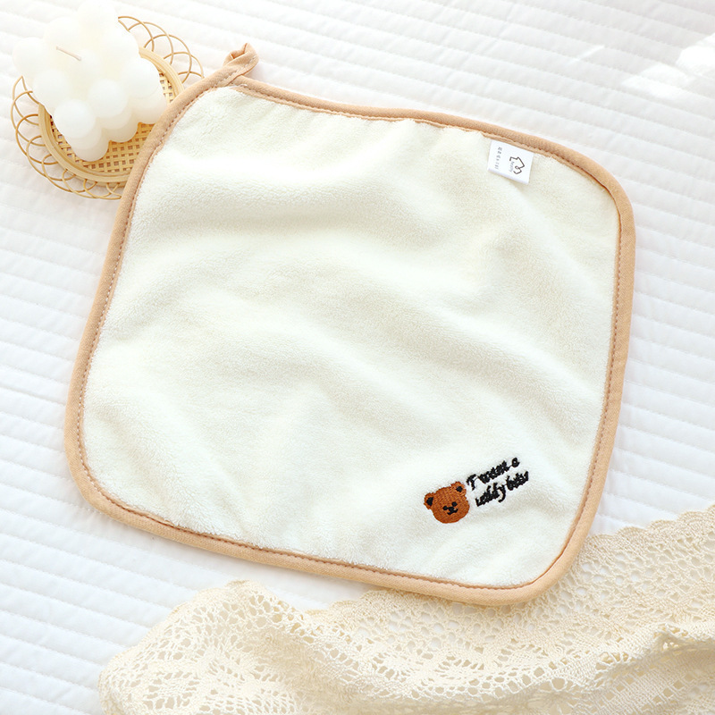 산호 양털 귀여운 재미 자수 수건을 두껍게 빨 수있는 부드러운 흡수성 보풀 어린이 손수건 아기 작은 광장