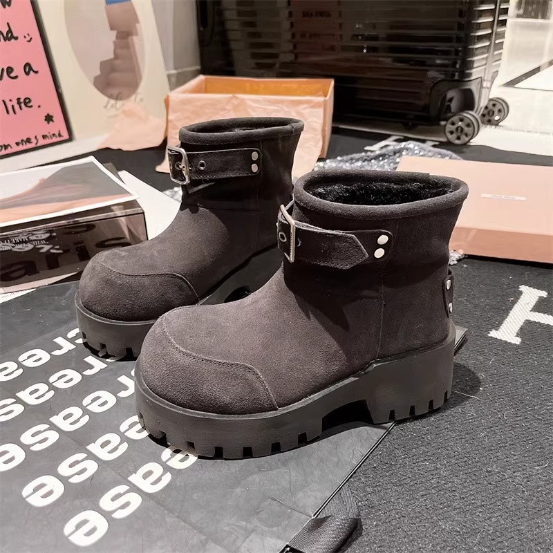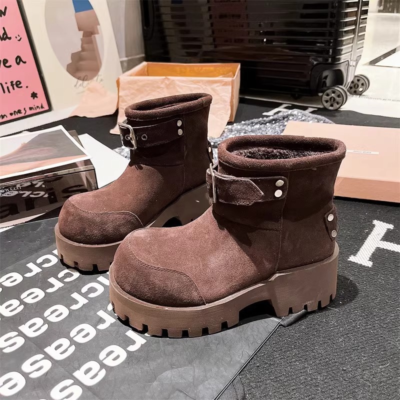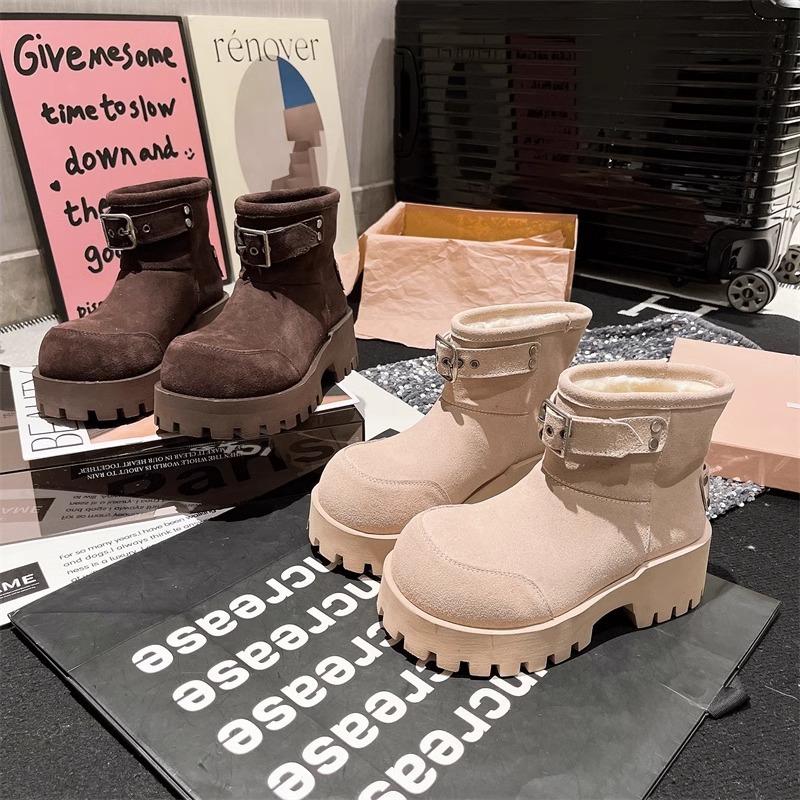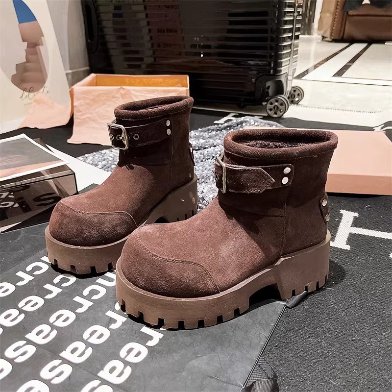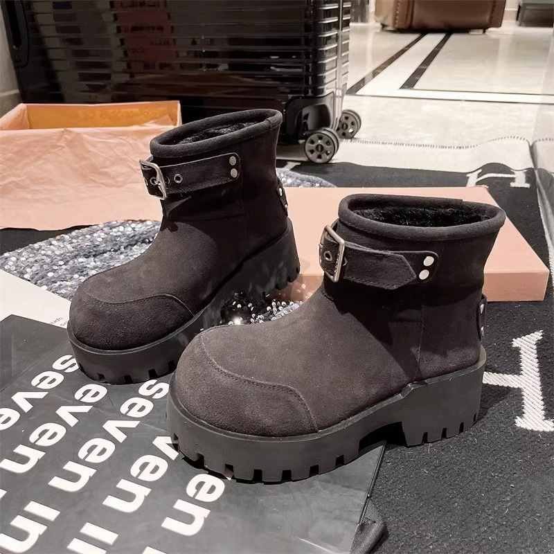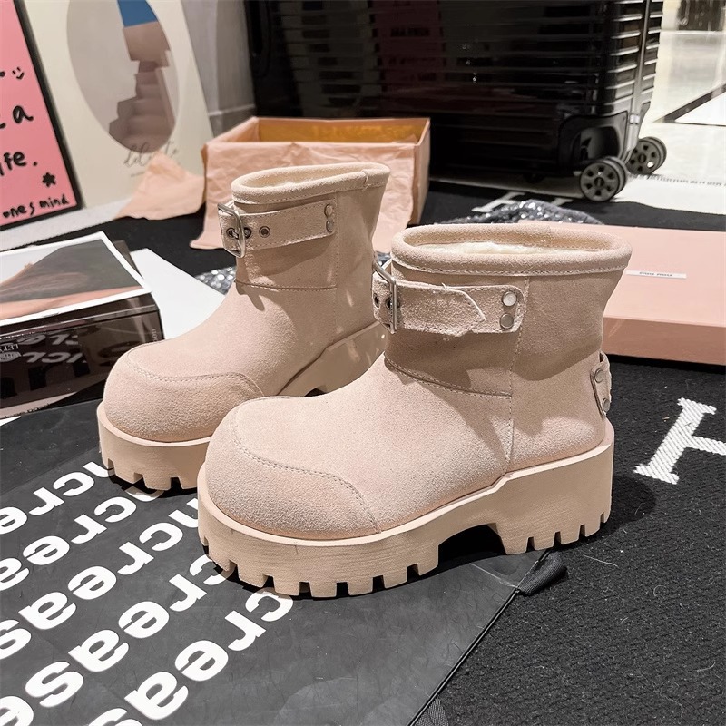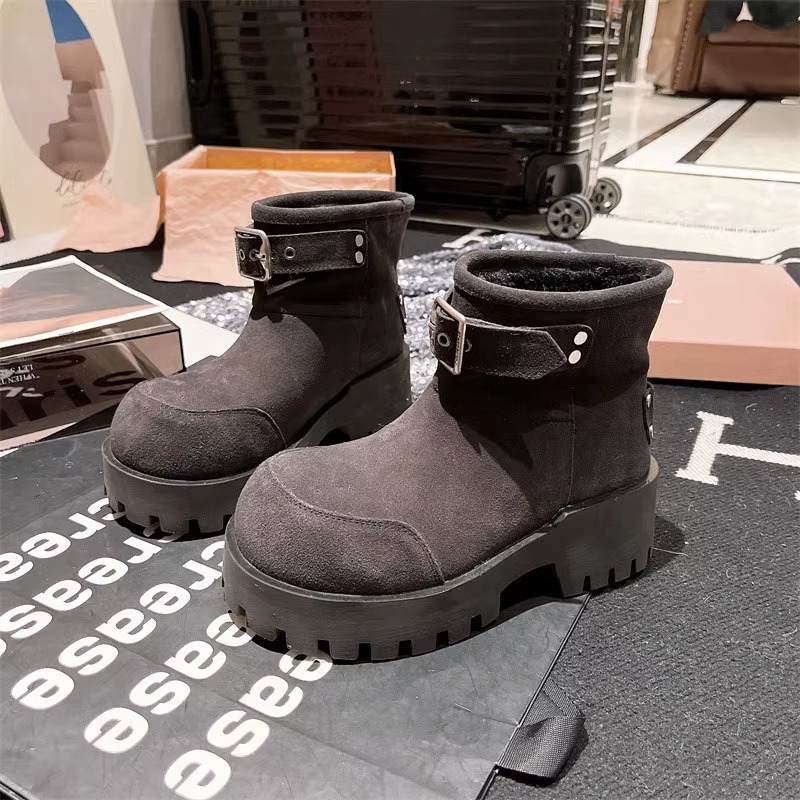 유럽 역 컬러 스크랩 오래 된 큰 머리 벨트 버클 큰 머리 눈 코튼 부츠는 두꺼운 바닥 캐주얼 짧은 부츠 빵 신발