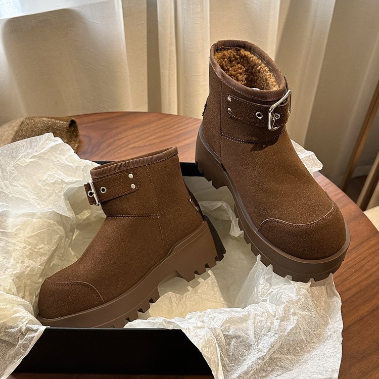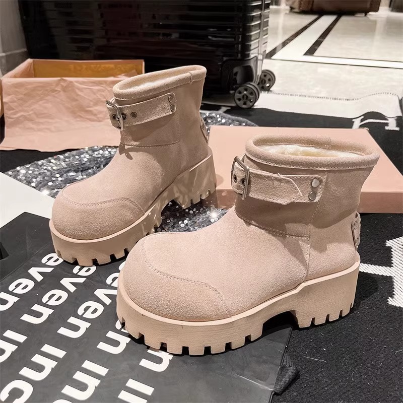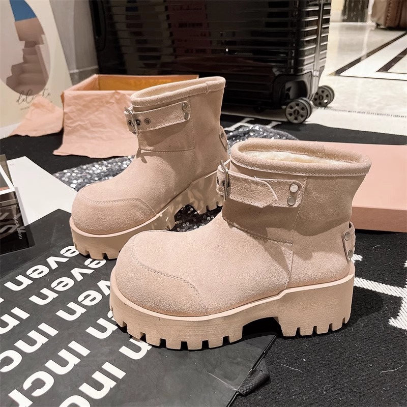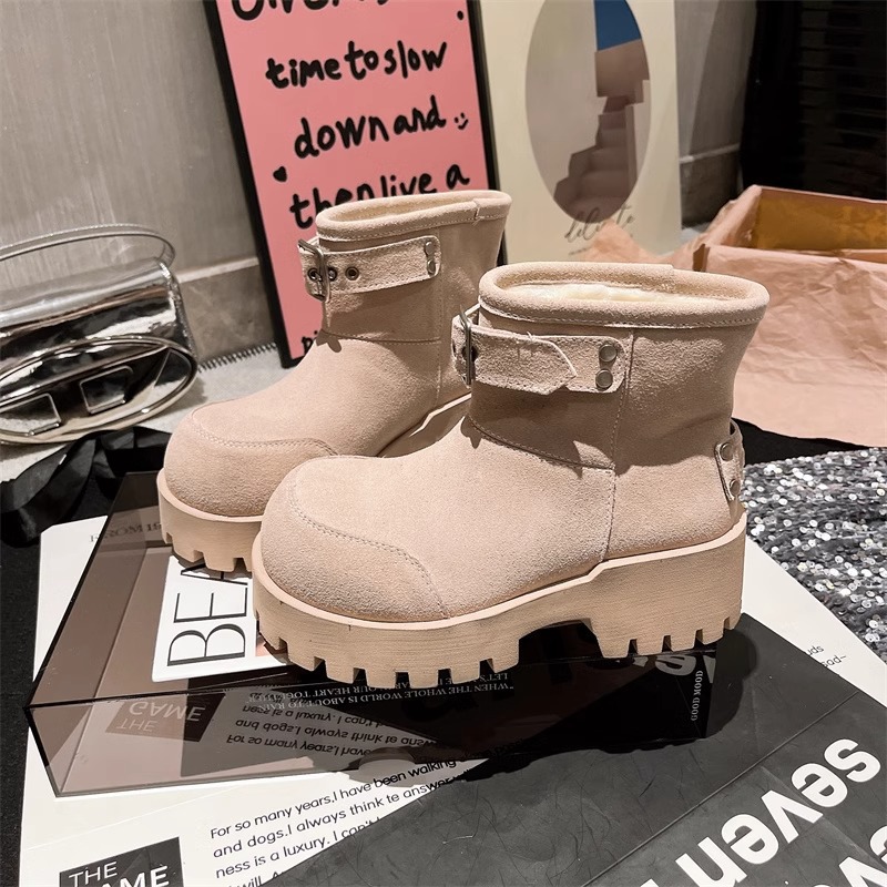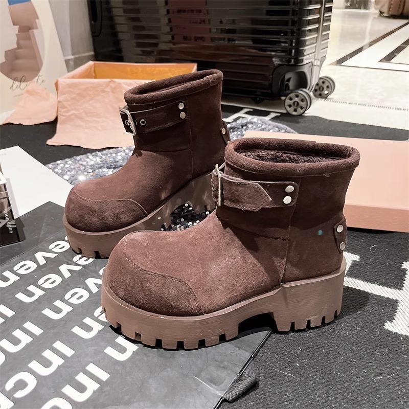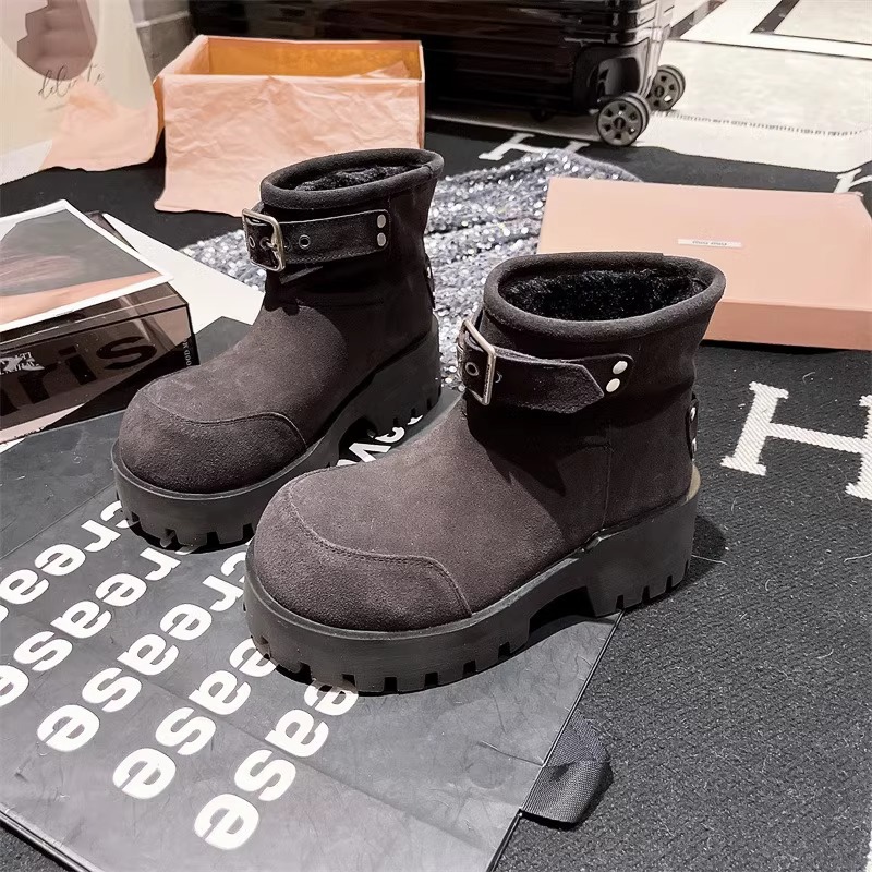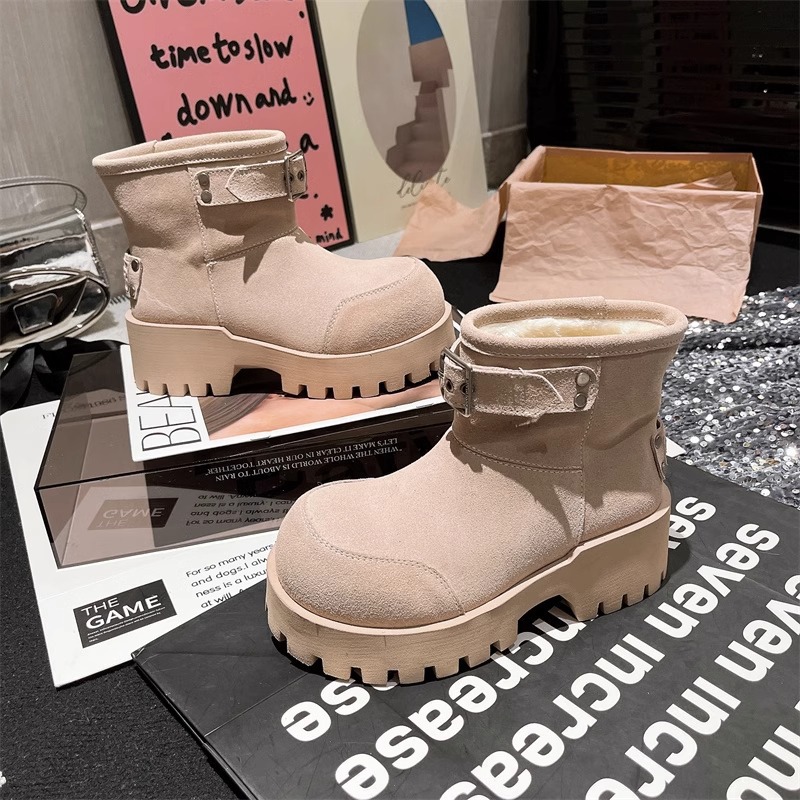 유럽 역 컬러 스크랩 오래 된 큰 머리 벨트 버클 큰 머리 눈 코튼 부츠는 두꺼운 바닥 캐주얼 짧은 부츠 빵 신발