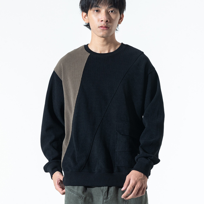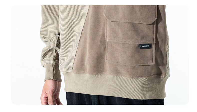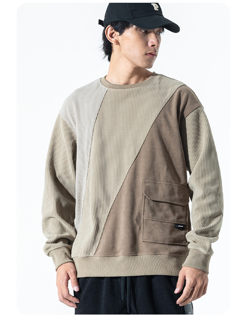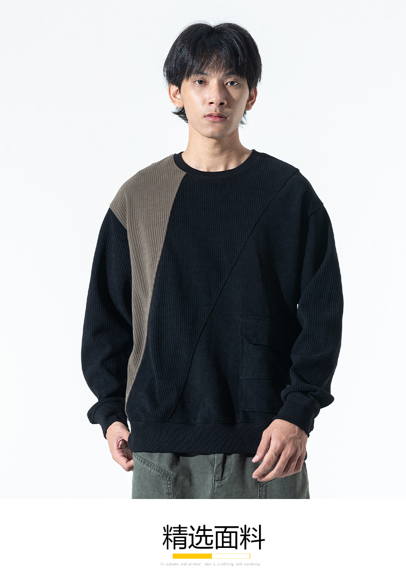 코듀로이 무거운 두꺼운 땀 남자의 가을과 겨울 미국 스타일 패션 브랜드 명암 색상 스티칭 탑 옷 느슨한 플러스 사이즈 남성 의류스토어 가기