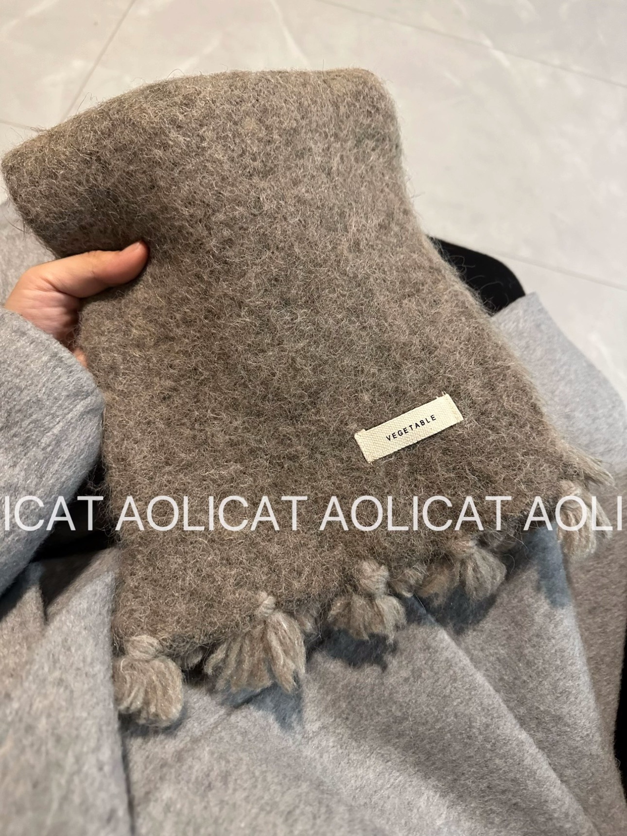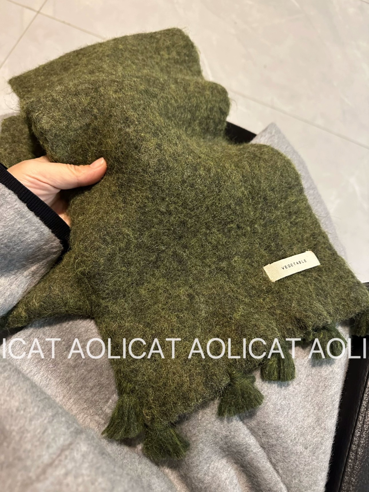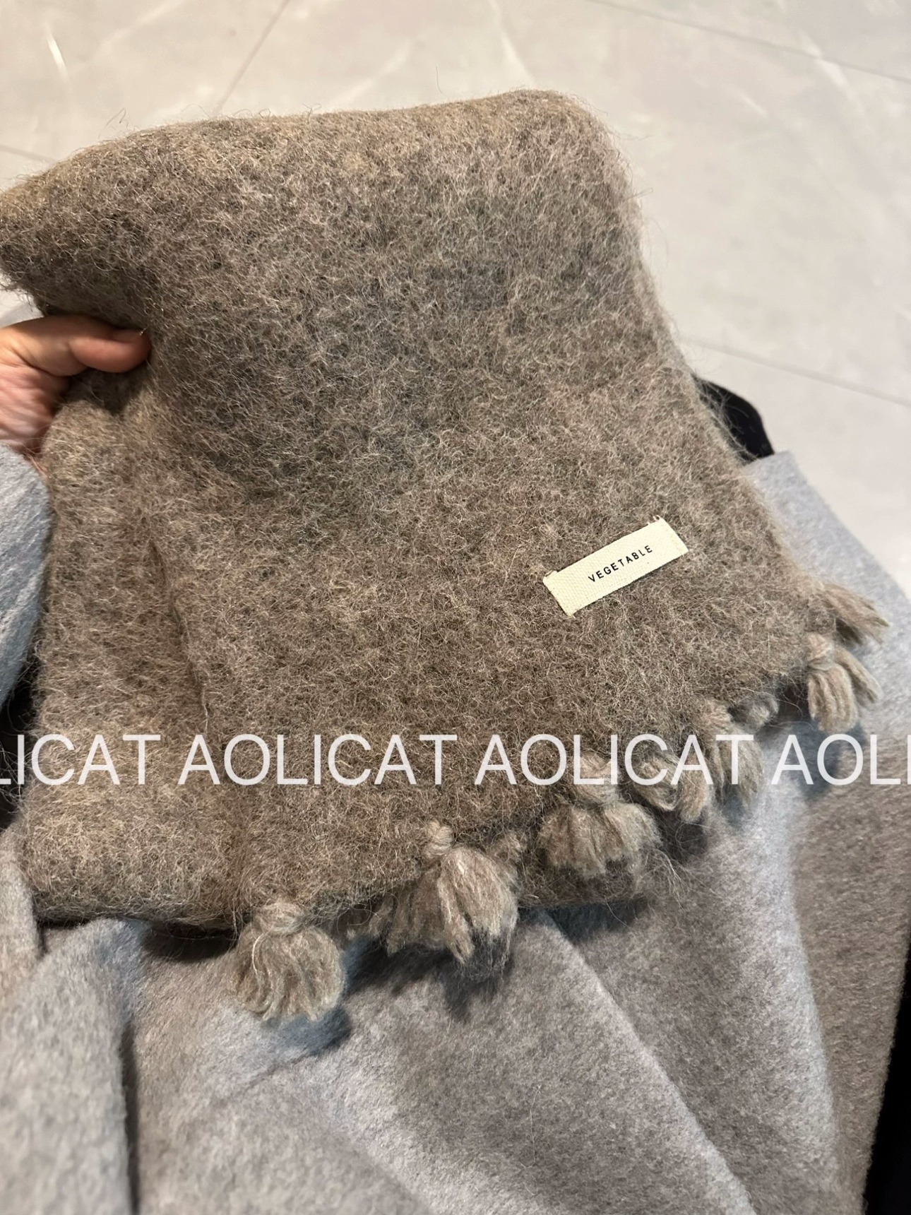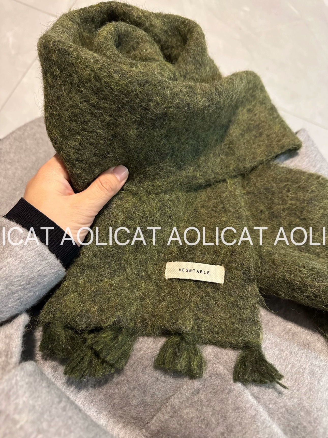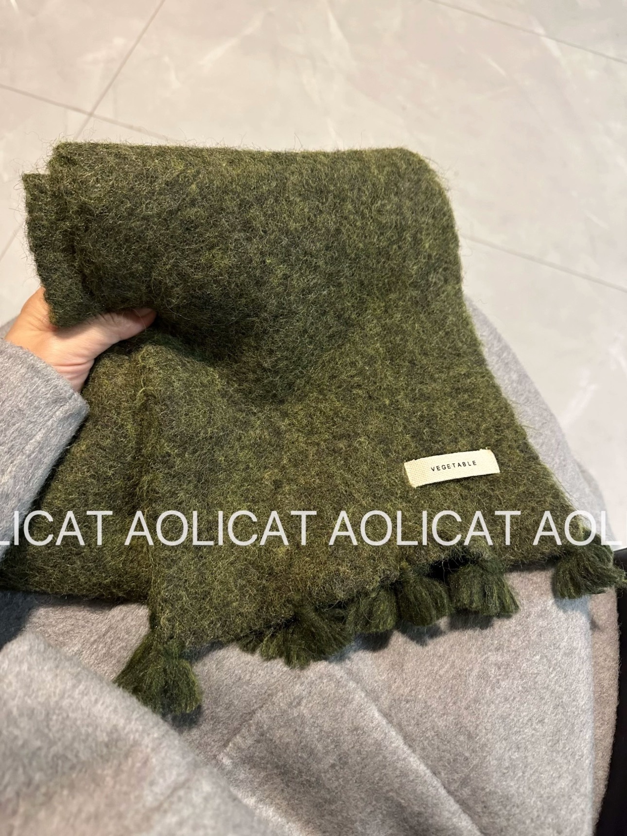 2024 가을 겨울 따뜻한 새 한국 양모 혼합 술 화이트 레트로 그린 스카프 여성의 부드러운 왁스 작은 스카프