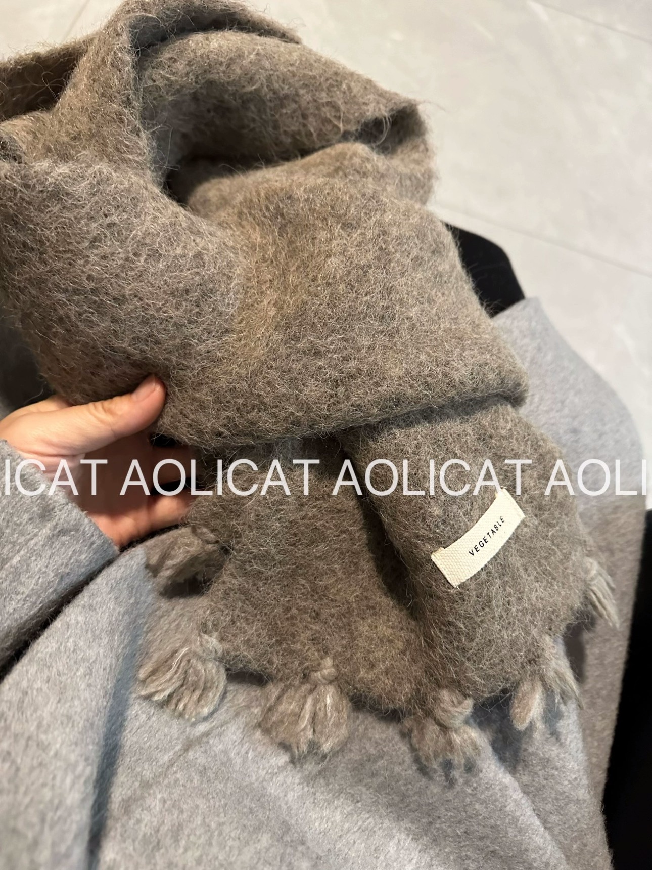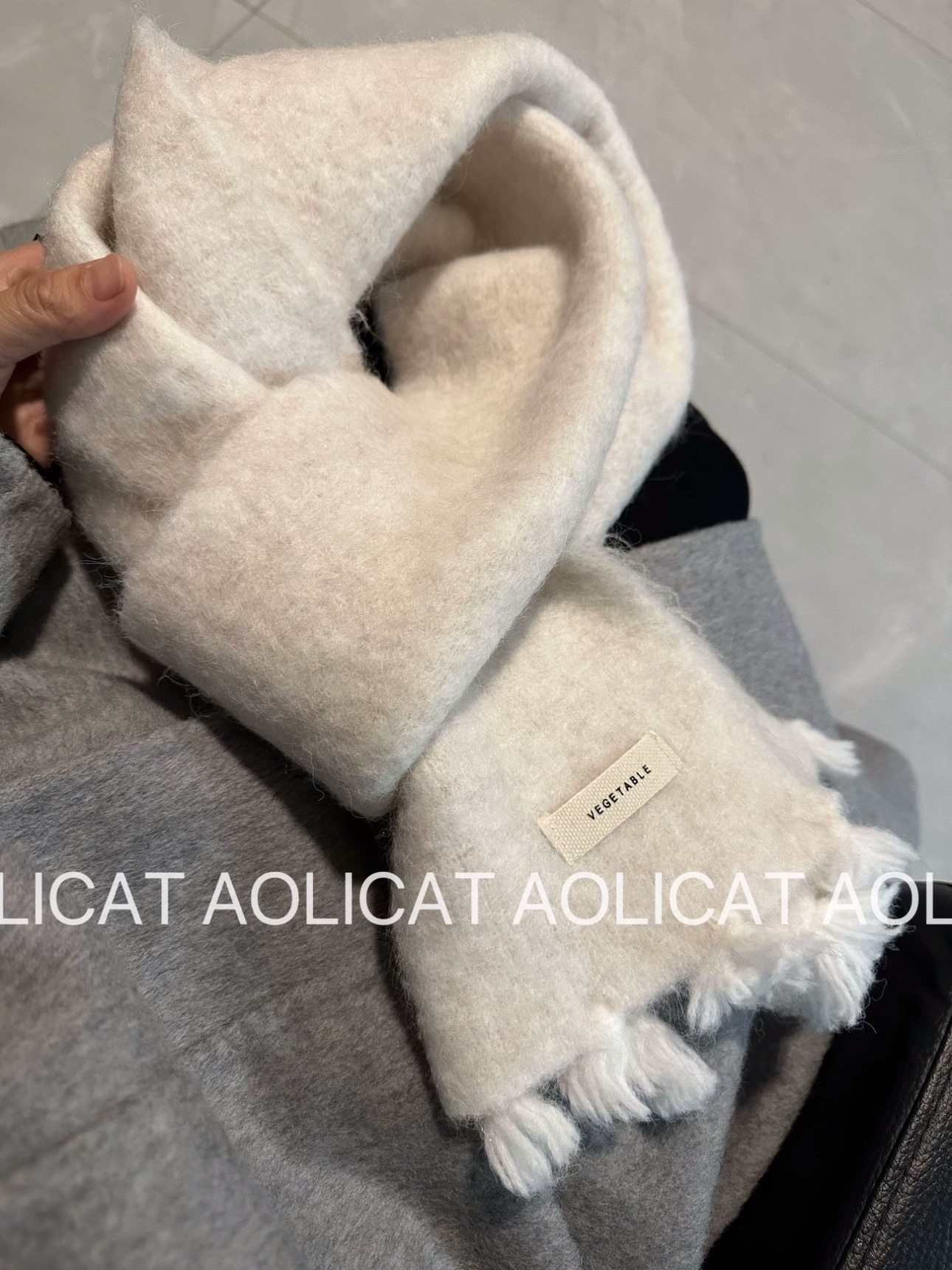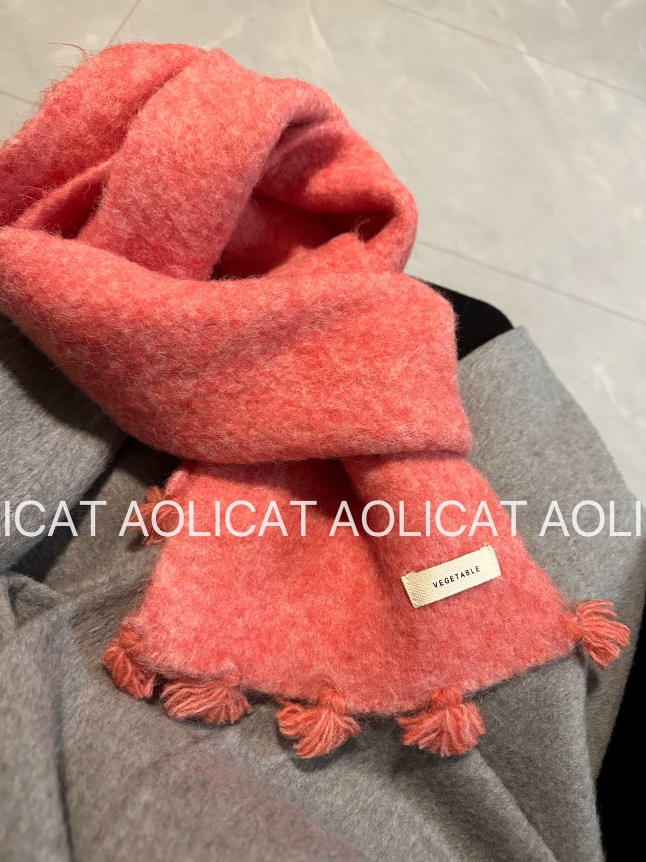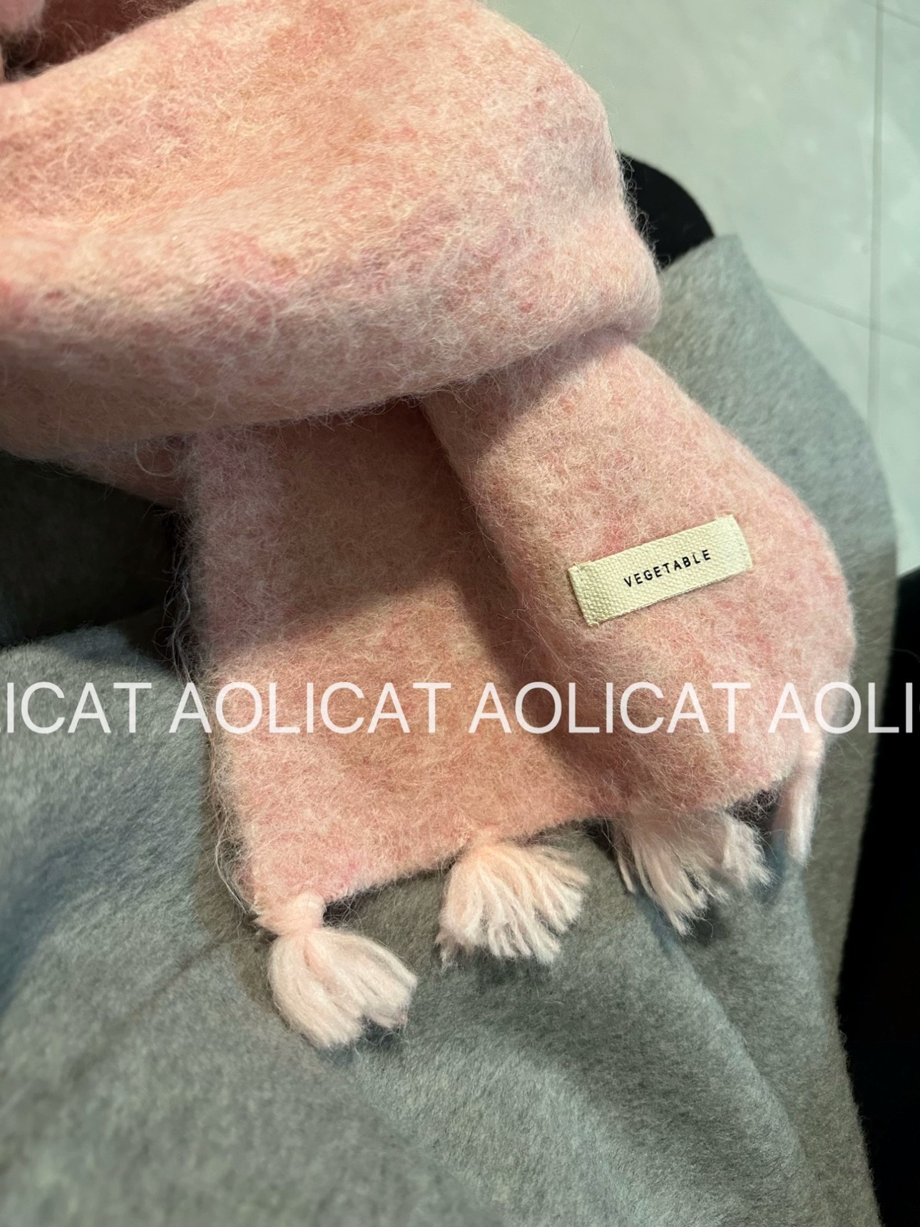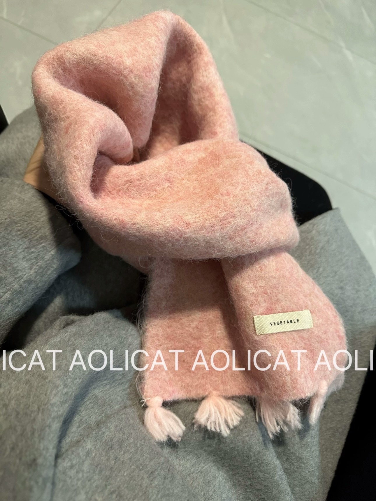 2024 가을 겨울 따뜻한 새 한국 양모 혼합 술 화이트 레트로 그린 스카프 여성의 부드러운 왁스 작은 스카프