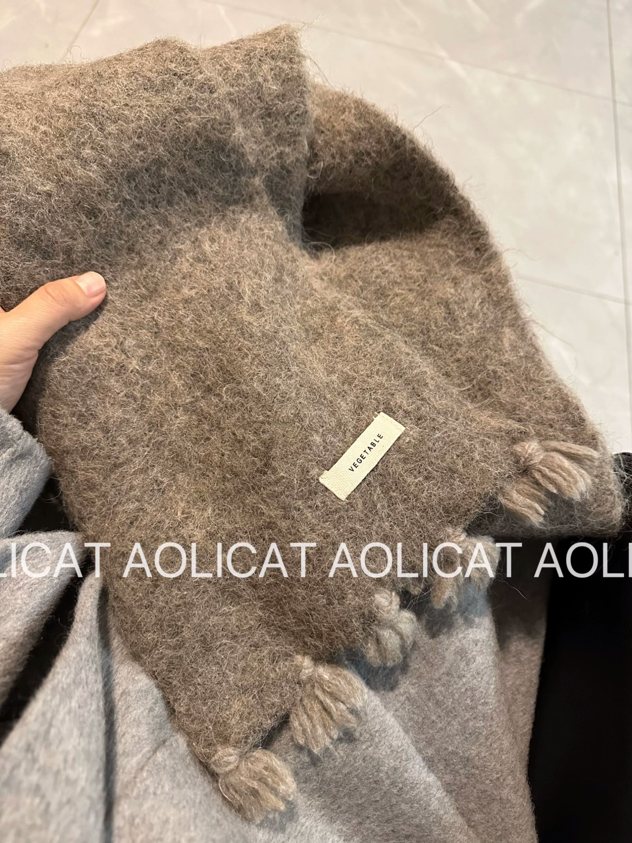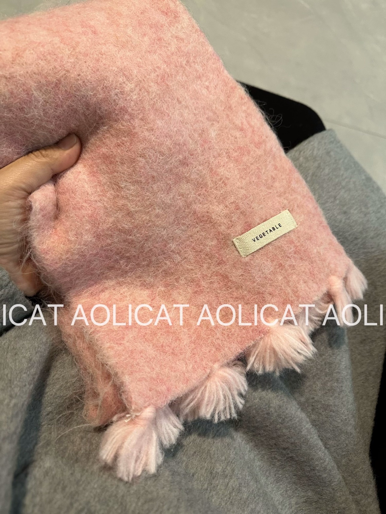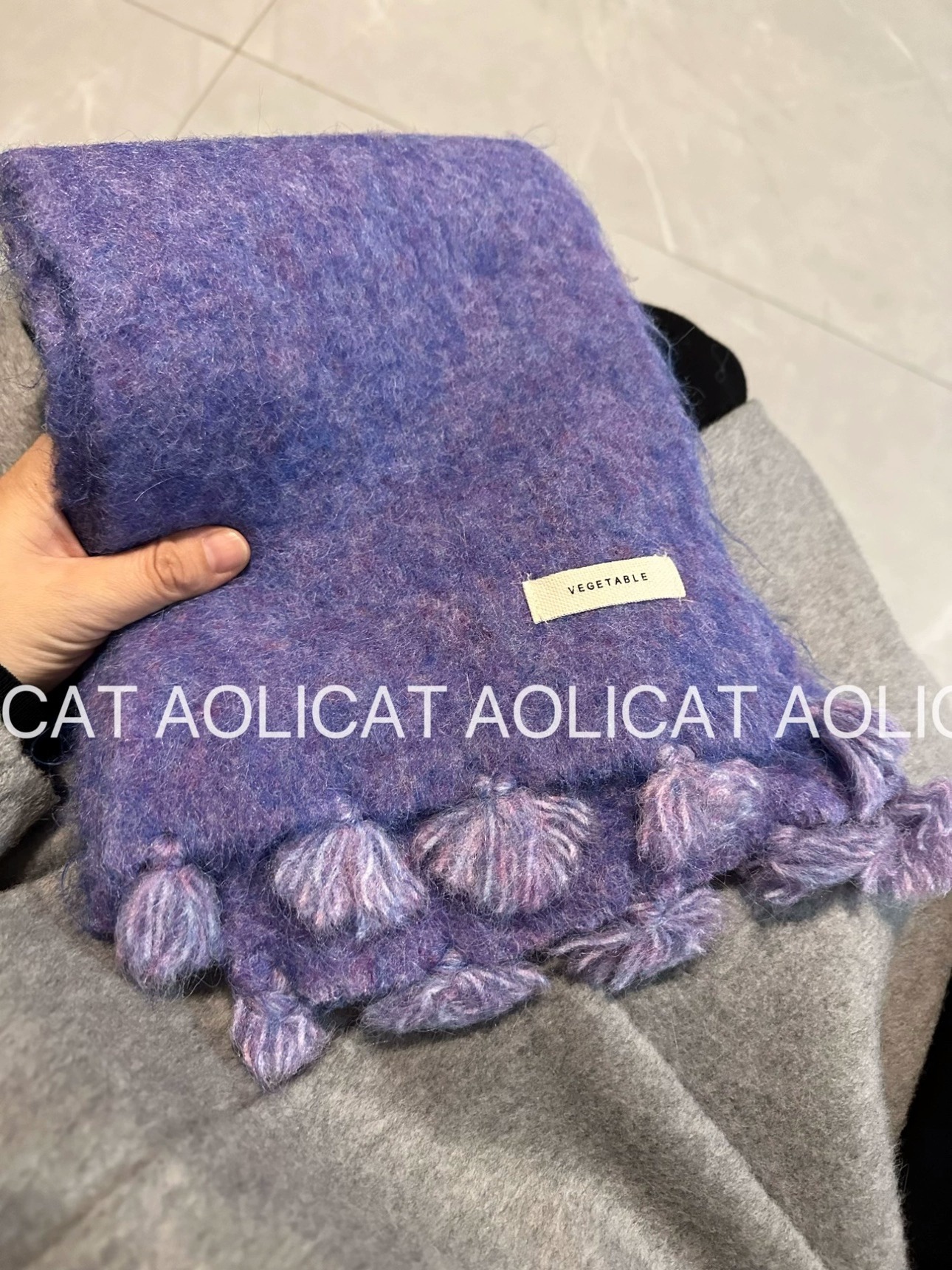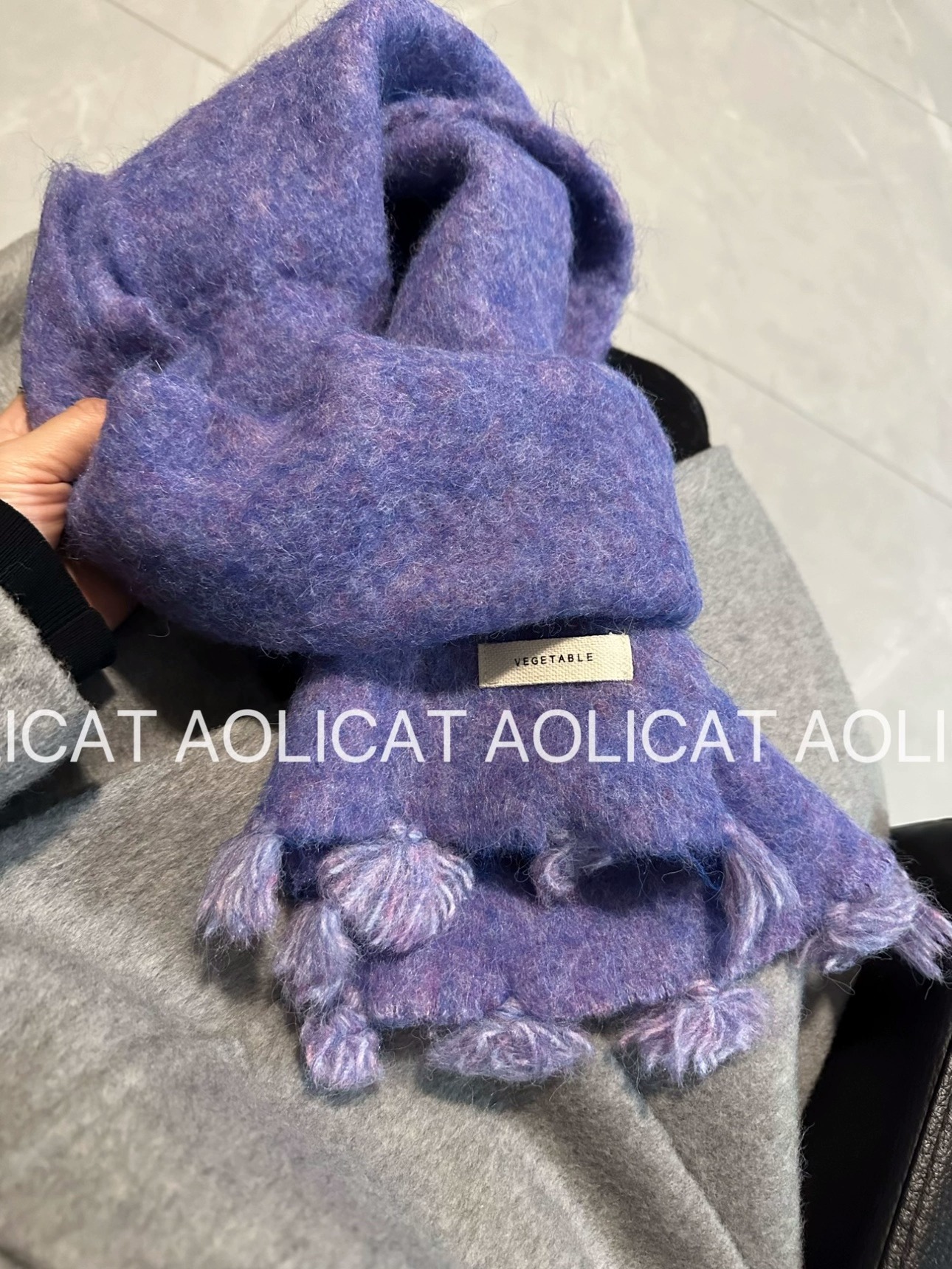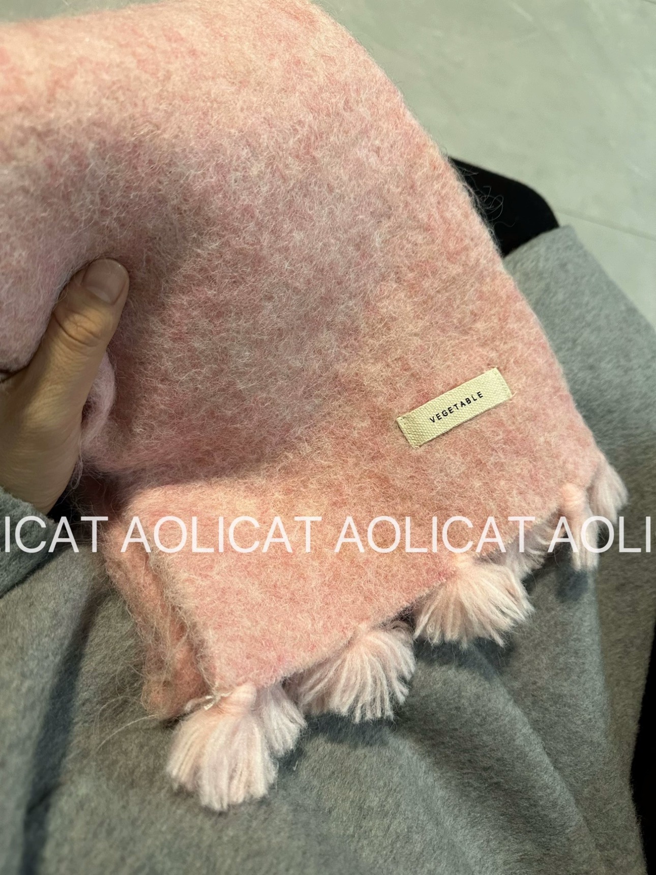 2024 가을 겨울 따뜻한 새 한국 양모 혼합 술 화이트 레트로 그린 스카프 여성의 부드러운 왁스 작은 스카프