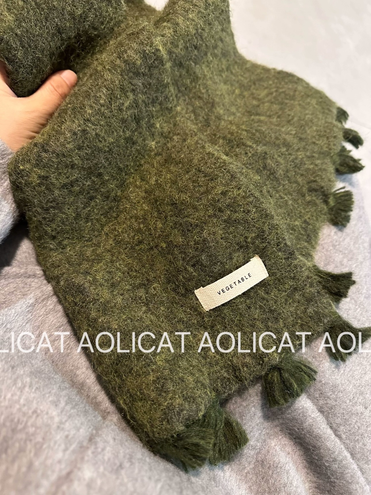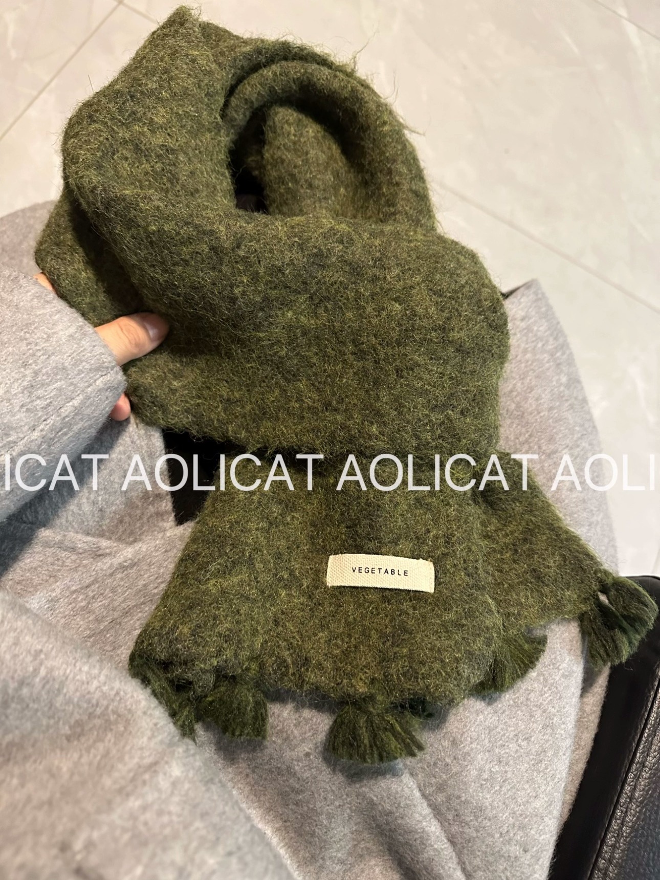 2024 가을 겨울 따뜻한 새 한국 양모 혼합 술 화이트 레트로 그린 스카프 여성의 부드러운 왁스 작은 스카프스토어 가기
