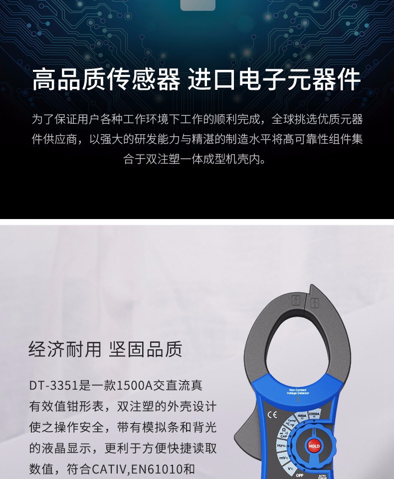 CEM Huashengchang 1500A 진정한 RMS 디지털 클램프 미터 서지 전류 측정 DT-3351/DT-3352