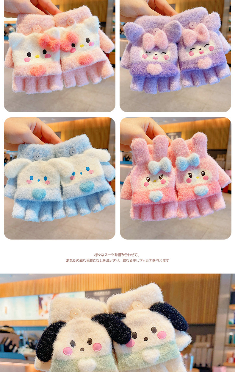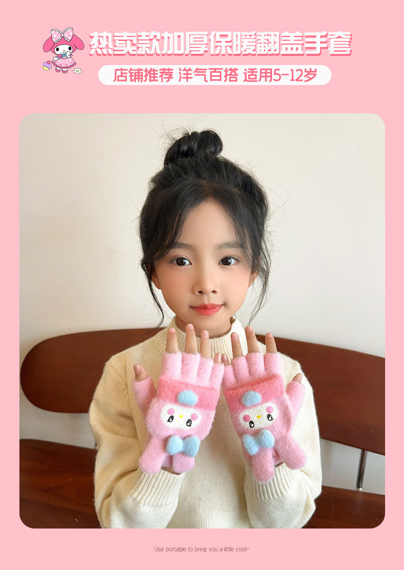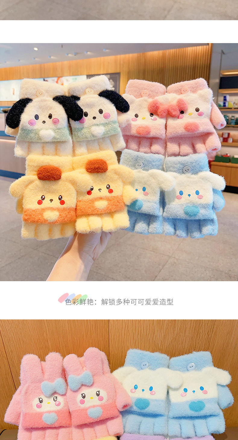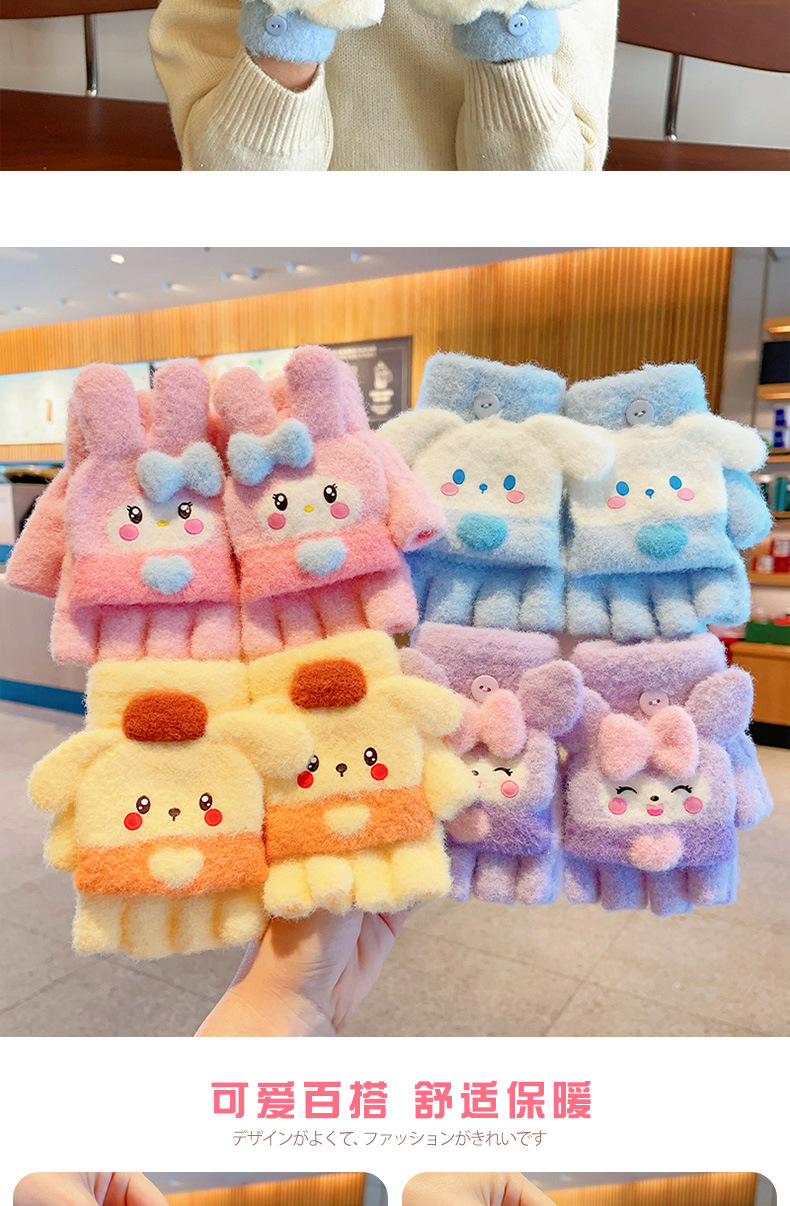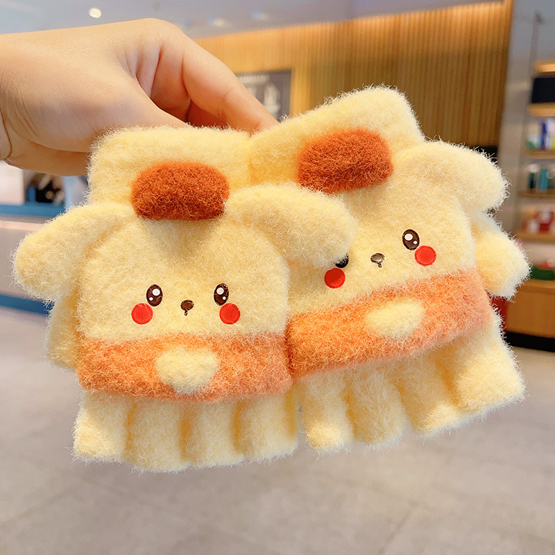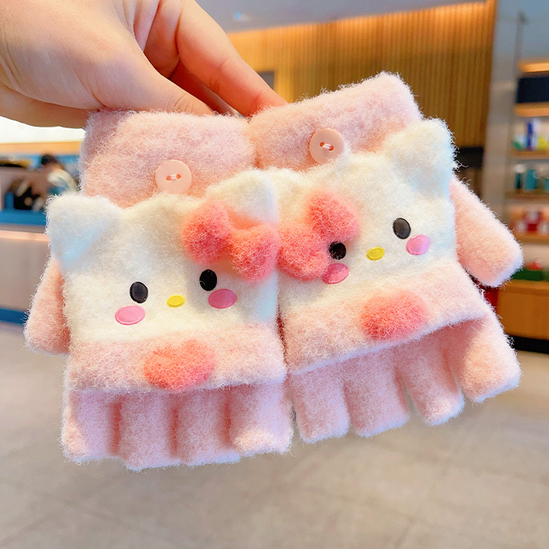 어린이 Kulomi 장갑 여성 씰 가을과 겨울 따뜻한 두꺼운 5 손가락 분할 플립 커버 여학생을위한 반 손가락 글쓰기스토어 가기