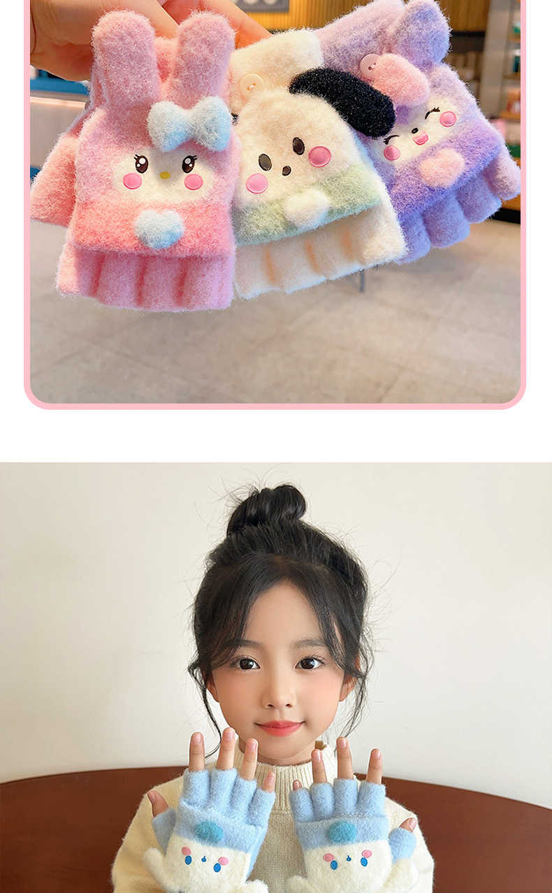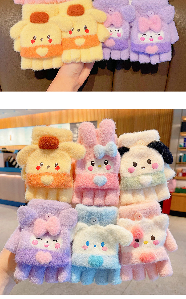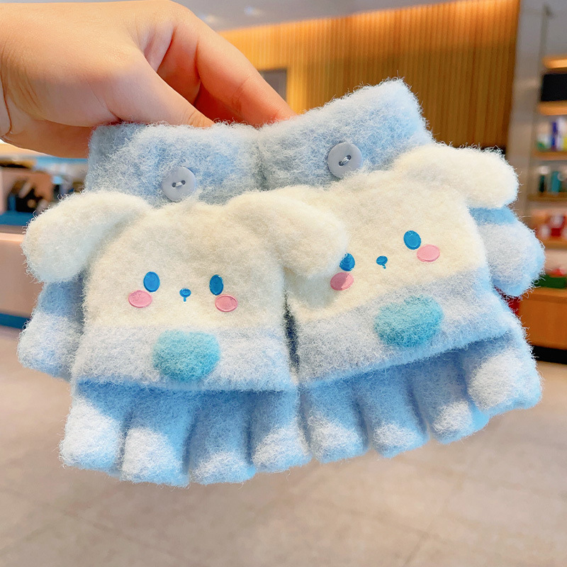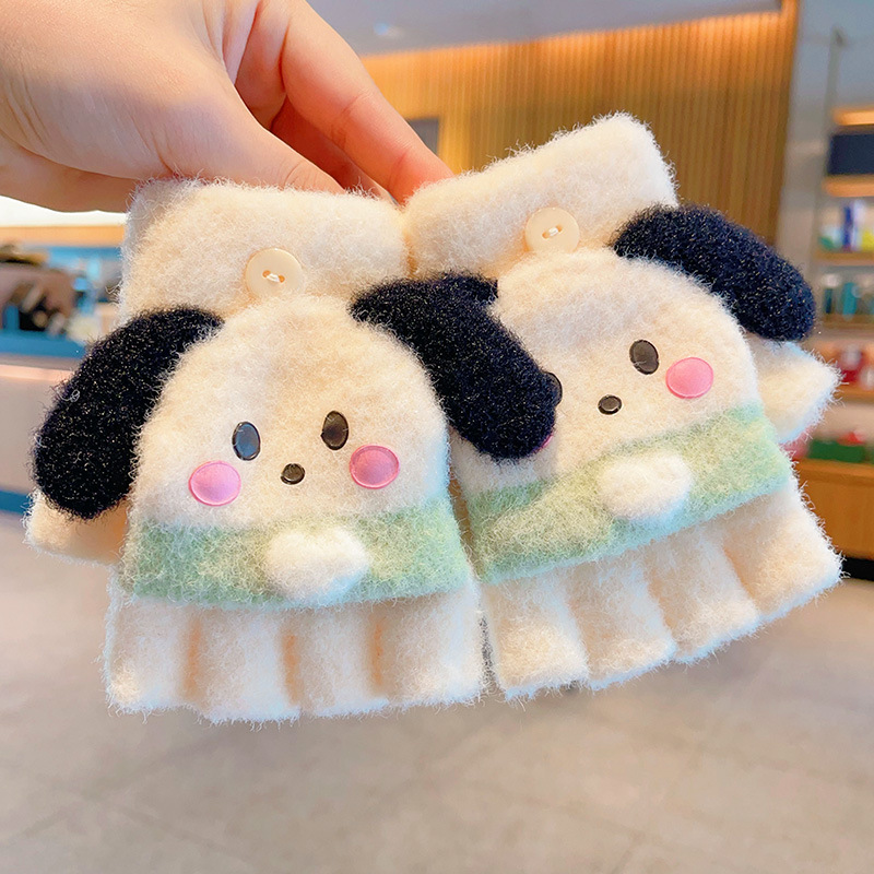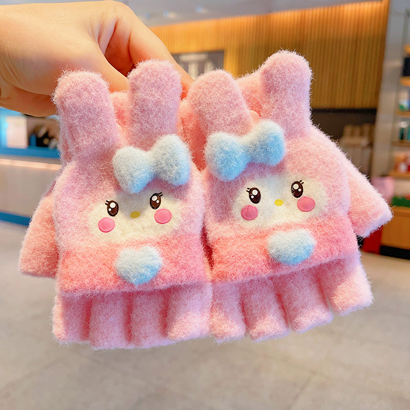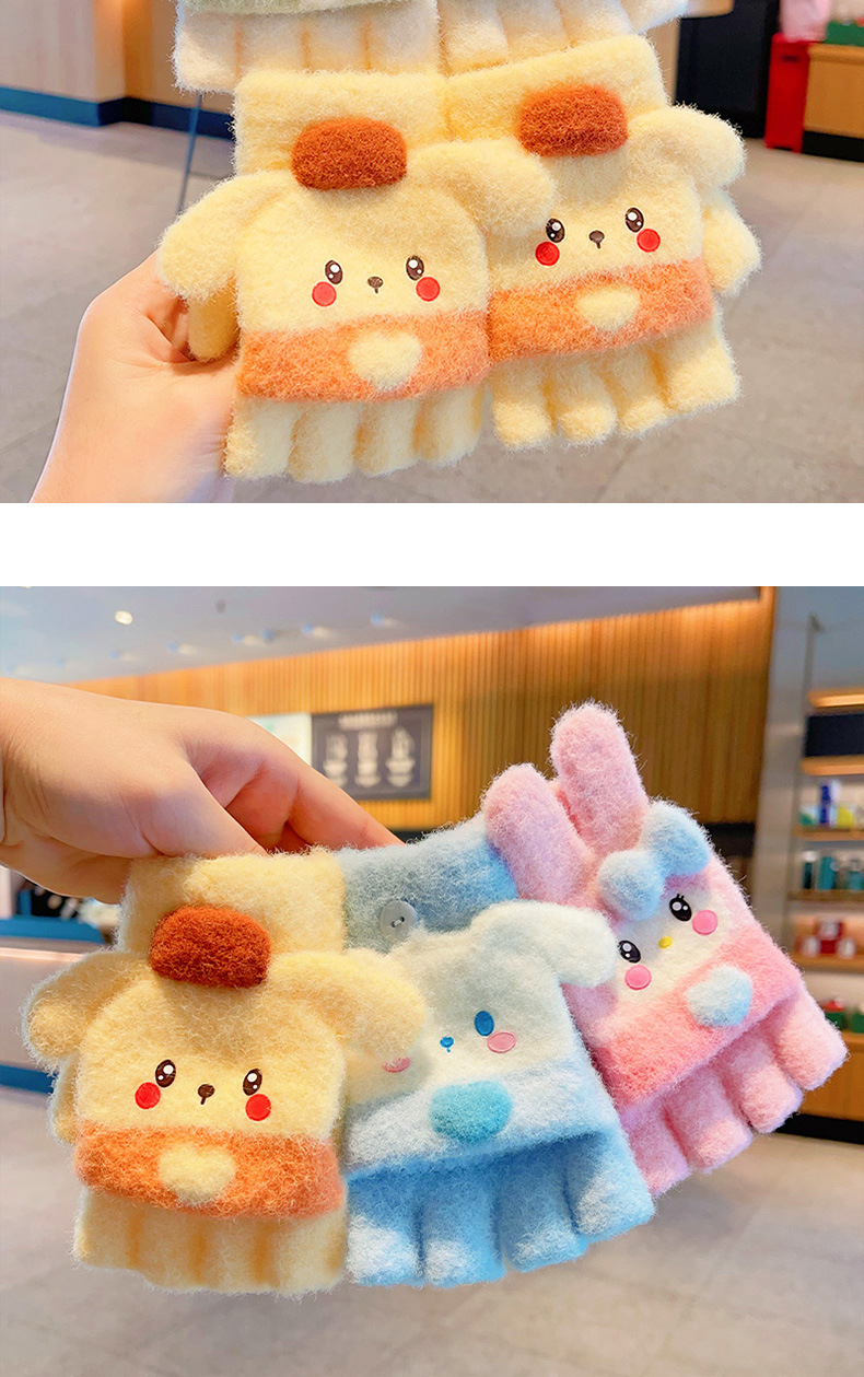 어린이 Kulomi 장갑 여성 씰 가을과 겨울 따뜻한 두꺼운 5 손가락 분할 플립 커버 여학생을위한 반 손가락 글쓰기스토어 가기