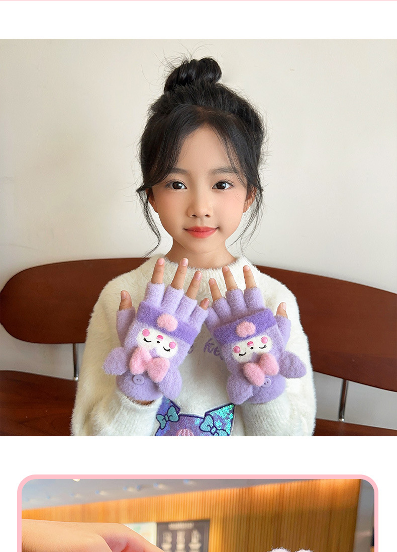 어린이 Kulomi 장갑 여성 씰 가을과 겨울 따뜻한 두꺼운 5 손가락 분할 플립 커버 여학생을위한 반 손가락 글쓰기